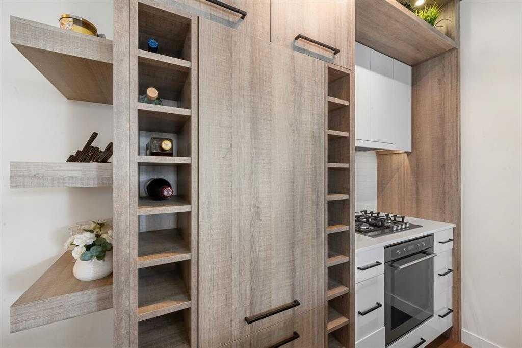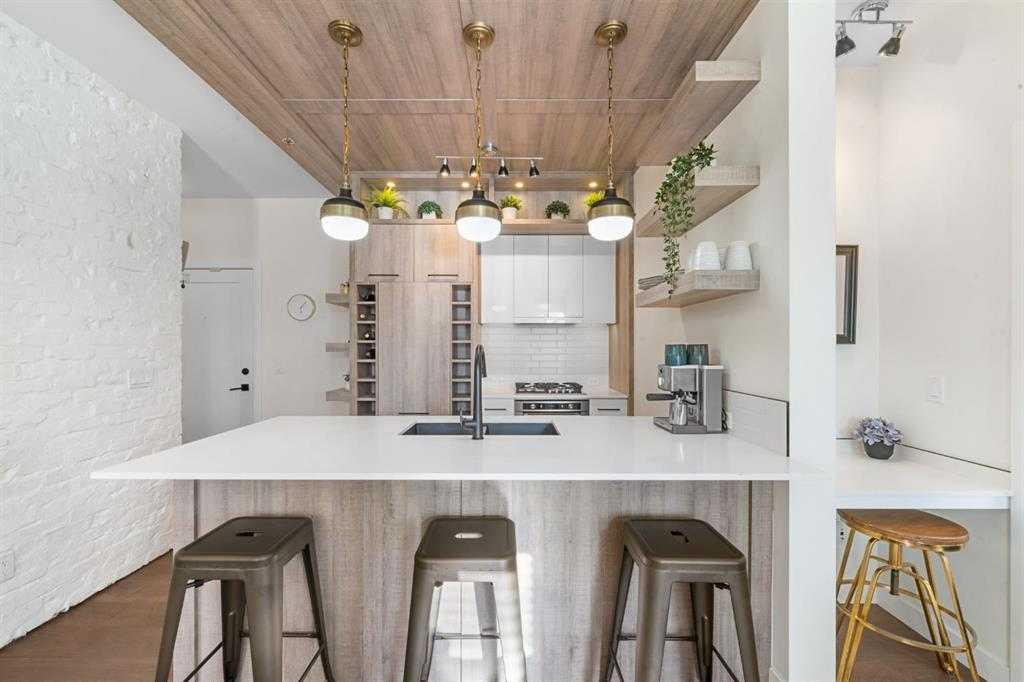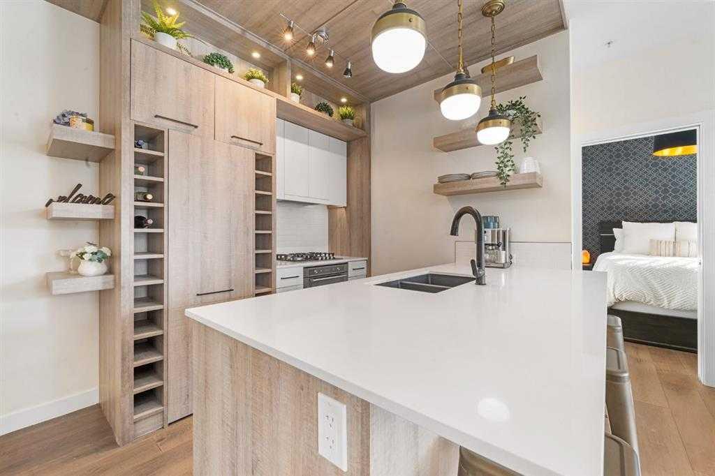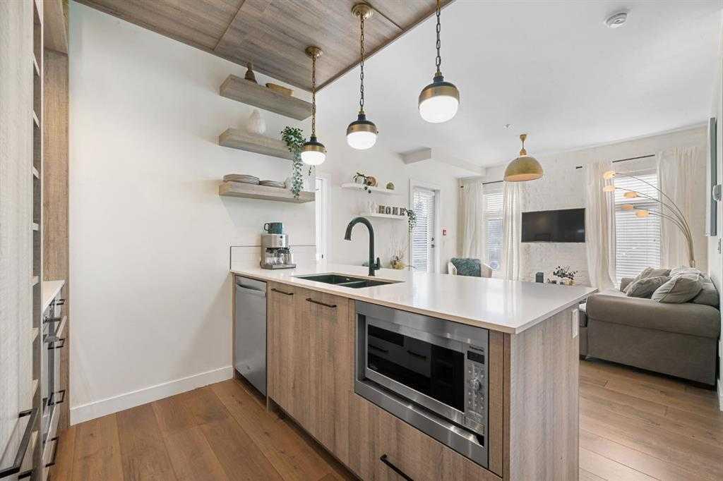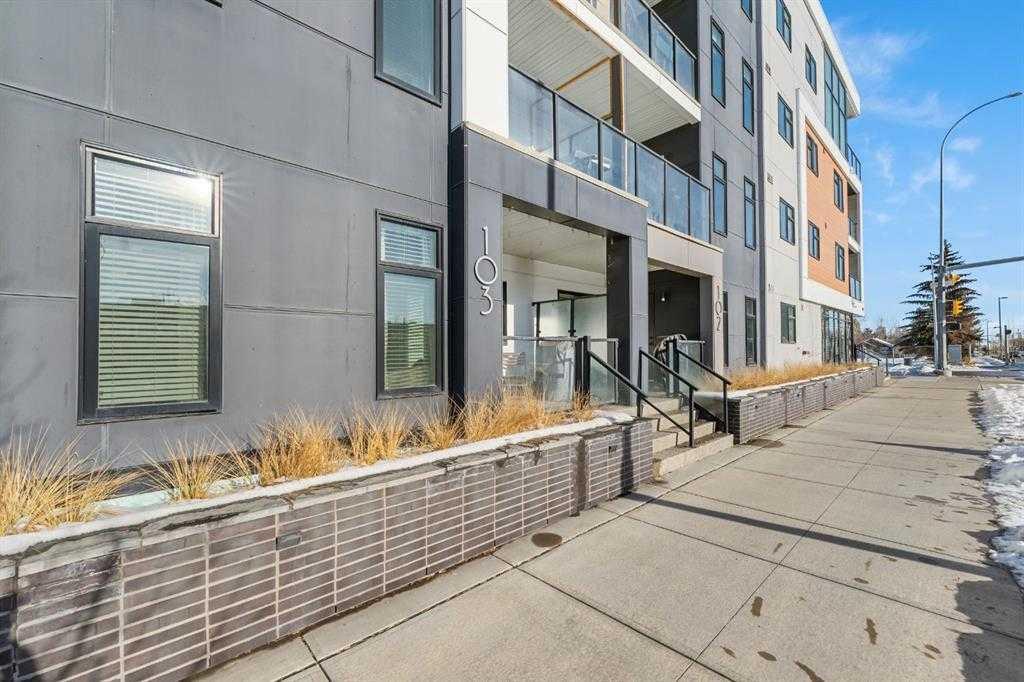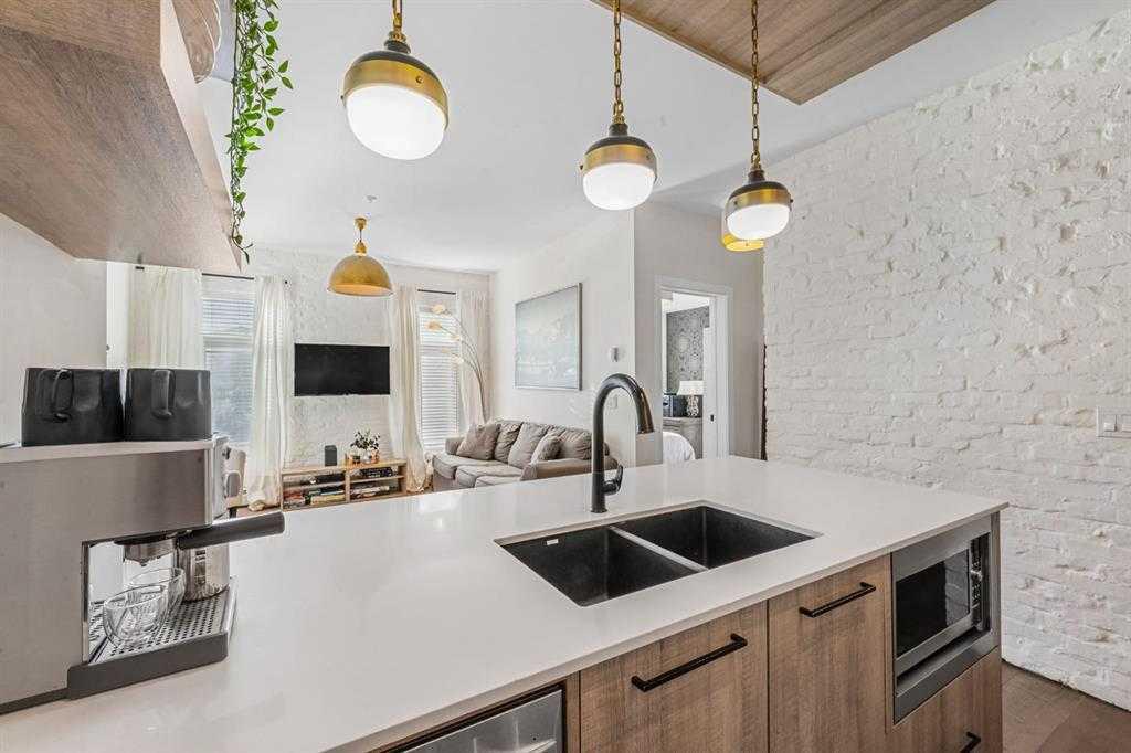 Step into luxury with this ground-floor 2-bedroom, 2-bathroom condo featuring titled underground parking, a storage locker, and low condo fees that include heat and water. Located in a secure, very well managed building next to a golf course, this home is ideal for pet owners, with a dog park and LRT station just a 2-minute walk away. Originally the show home for the building, this condo offers an open-concept layout designed for modern living. The upgraded kitchen flows seamlessly into the living space, while brick accent walls and an enhanced lighting package add a refined, urban touch. The primary bedroom includes a walk-in closet and ensuite, and the second bedroom is generously sized and versatile. A full 4-piece second bathroom, in-suite laundry, and same-floor storage add everyday convenience. Complete with a south-facing patio and close proximity to downtown Calgary, shopping, restaurants, and transit, this move-in-ready home offers the perfect balance of comfort, style, and location.
