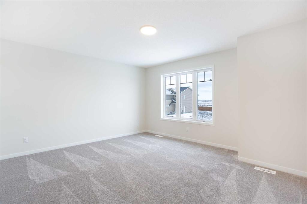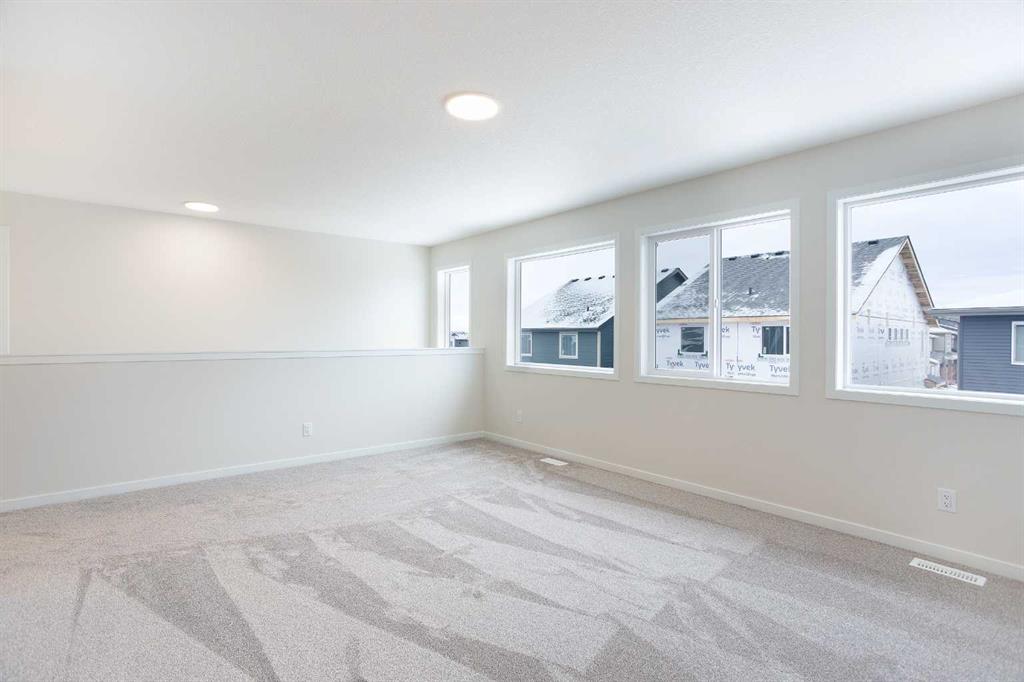 Welcome to this exceptional Morrison Homes Franklin I model, a beautifully designed two-storey semi-attached home is ideally situated in the sought-after and rapidly growing community of Sirocco at Pine Creek. Boasting 1,976 sq. ft. of thoughtfully developed living space above grade, this home offers an intelligent layout that balances modern elegance with functional design, complemented by a front-attached double garage and a side entry, providing both convenience and everyday practicality for families of all sizes. The main floor showcases a bright, open-concept layout that flows seamlessly, with durable and stylish finishes designed to impress. The kitchen is a standout feature, with a contemporary two-tone design featuring grey lower cabinetry and white upper cabinets, accented with black hardware, full-length cabinetry, and quartz countertops throughout, offering an ideal space for meal preparation, entertaining, or casual family gatherings. A spacious island adds prep space and seating, while stainless steel appliances and a gas range rough-in make this kitchen fully equipped for modern culinary needs. The adjacent dining and living areas are anchored by a grey tile feature wall, creating a sophisticated focal point that enhances the home’s welcoming atmosphere. A thoughtfully designed mudroom with built-in cabinetry connects seamlessly to the garage and side entry, providing excellent storage for outerwear, footwear, and everyday essentials. A conveniently located powder room completes the main level, combining style with practicality. Upstairs, the home offers three generously sized bedrooms and a large rear-facing bonus room, perfect for a family media area, playroom, or additional living space. The private primary suite features a walk-in closet and a spa-inspired ensuite with tiled flooring and a glass shower enclosure, providing a tranquil retreat. Two additional bedrooms share a full bath, also finished with high-quality tiled flooring, while top-floor laundry adds convenience to daily routines, and soft carpeting throughout enhances comfort and warmth. The unfinished basement presents a versatile space ready for future development, allowing homeowners to create additional bedrooms, recreational areas, or a custom home office, tailored to meet their family’s needs and lifestyle. Situated in a vibrant community with easy access to parks, walking and cycling pathways, schools, and future amenities, this home combines functional living, high-end finishes, and long-term flexibility. The Franklin I model at 53 Creekside Passage is an exceptional opportunity for buyers seeking a stylish, thoughtfully designed home that offers both immediate comfort and the potential to expand in the years to come.