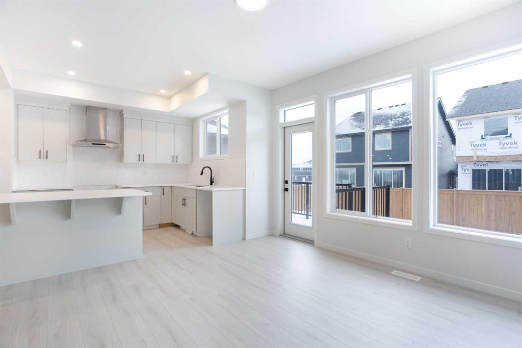 Welcome to this beautifully designed Morrison Homes Dillon I model, a striking two-storey semi-attached home is situated in the highly desirable and rapidly growing community of Sirocco at Pine Creek. Offering over 1,600 sq. ft. of thoughtfully finished living space above grade, this home combines modern elegance with practical design, complemented by a front-attached double garage and an intelligently planned layout that effortlessly balances style, comfort, and everyday functionality for families of all sizes. The main floor is designed for both entertaining and everyday living, featuring an open-concept layout bathed in natural light, highlighted by light grey luxury vinyl plank flooring that flows seamlessly throughout. The contemporary kitchen is a true centerpiece, equipped with sleek grey cabinetry accented with black hardware, quartz countertops, and a generous central island—perfect for meal preparation, casual dining, or social gatherings. Stainless steel appliances complete the kitchen, while the adjacent dining and living areas are enhanced by a striking grey tile feature wall with an electric fireplace, creating a warm, inviting, and modern focal point that effortlessly blends style and function. A thoughtfully designed mudroom with built-in cabinetry and storage provides a seamless transition from the garage, keeping everyday essentials organized and accessible. The main floor is completed with a convenient powder room, offering both practicality and style for family life and entertaining. Upstairs, the home continues to impress with three well-appointed bedrooms, including a private primary suite designed for comfort and relaxation. This retreat features a spacious walk-in closet and a beautifully finished ensuite bathroom with tiled flooring and a contemporary glass shower enclosure, offering a spa-like experience in the comfort of your own home. Two additional bedrooms are generously sized and share a full bathroom, also finished with high-quality modern tile. Top-floor laundry adds convenience to your daily routine, while soft carpeting throughout the upper level enhances comfort and warmth throughout the private spaces. The unfinished basement presents an exceptional opportunity for future development, providing a versatile blank canvas where additional living space, recreational areas, or extra bedrooms can be tailored to suit your family’s evolving needs and lifestyle preferences. Situated in a vibrant and growing southwest community with easy access to parks, walking and cycling pathways, local schools, and future amenities, this home combines thoughtful design, modern finishes, and long-term flexibility. From the stylish interiors to the functional layout and prime location, the Dillon I model at 49 Creekside Passage is a home that truly delivers a refined balance of comfort, elegance, and enduring value for discerning buyers seeking both quality and lifestyle in one of Calgary’s most sought-after neighbourhoods.