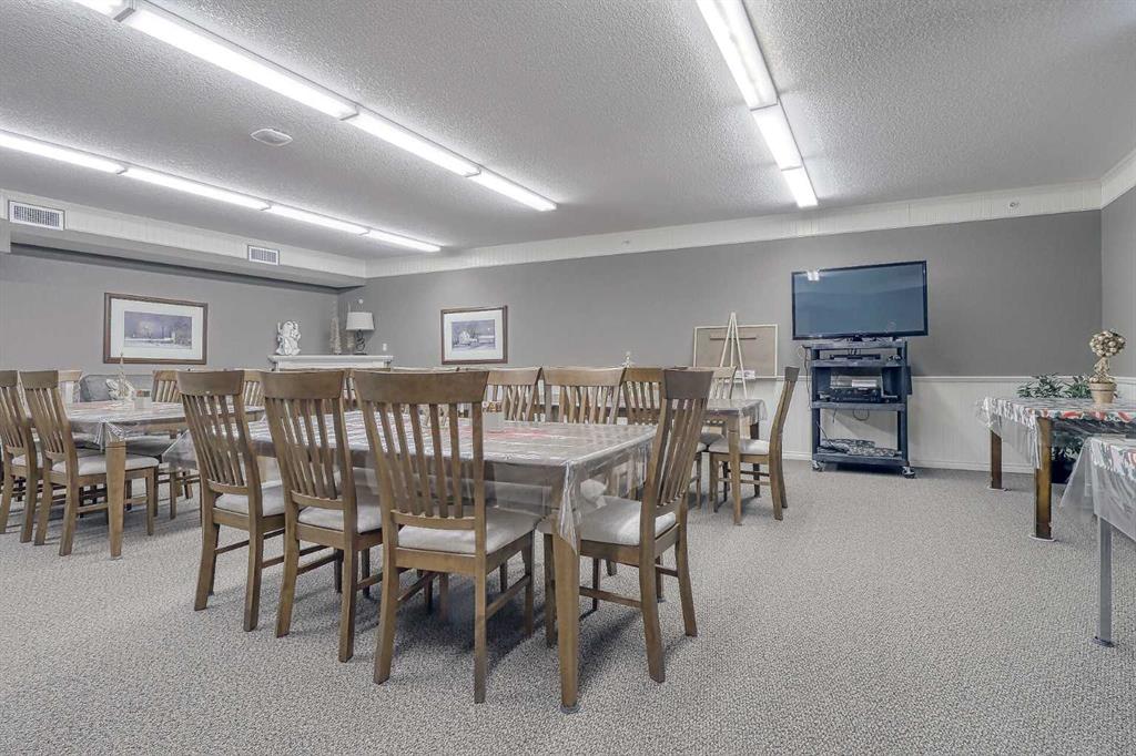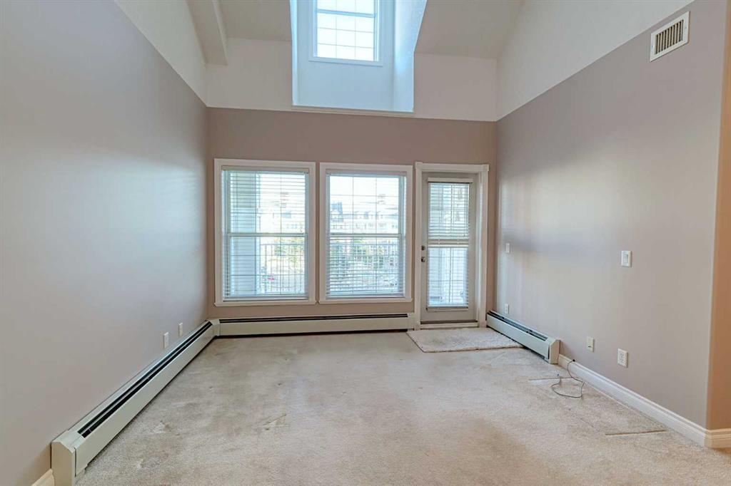 Welcome to this spacious 1,295 sq. ft. multi-level, top-floor condo in the sought-after Country Estates on the Cove, featuring TWO TITLED UNDERGROUND PARKING STALLS and air conditioning. This rare layout offers soaring two-storey ceilings in both the living room and primary bedroom, creating a bright, open feel with impressive natural light. Freshly painted throughout, the open-concept living and dining areas flow seamlessly into the kitchen with solid maple cabinetry. A combined laundry and pantry room adds excellent convenience and storage, while the balcony is accessed directly from the living room. The primary bedroom features a dramatic vaulted ceiling, walk-through closet, and private 4-piece ensuite with double vanity. A second bedroom, additional 4-piece bathroom, and an open loft overlooking the living room complete the layout. The loft includes a 2-piece bathroom and electric fireplace, ideal for a home office or flexible living space. This well-managed 40+ adult community offers exceptional amenities including a fitness centre, indoor pool, hot tub, recreation room with games and bowling alley, library, woodworking shop, guest suites, car wash bay, and assigned storage. Condo fees include all utilities. Conveniently located near shopping, parks, and walking paths, with easy access to Deerfoot Trail, Stoney Trail, transit, and the airport.