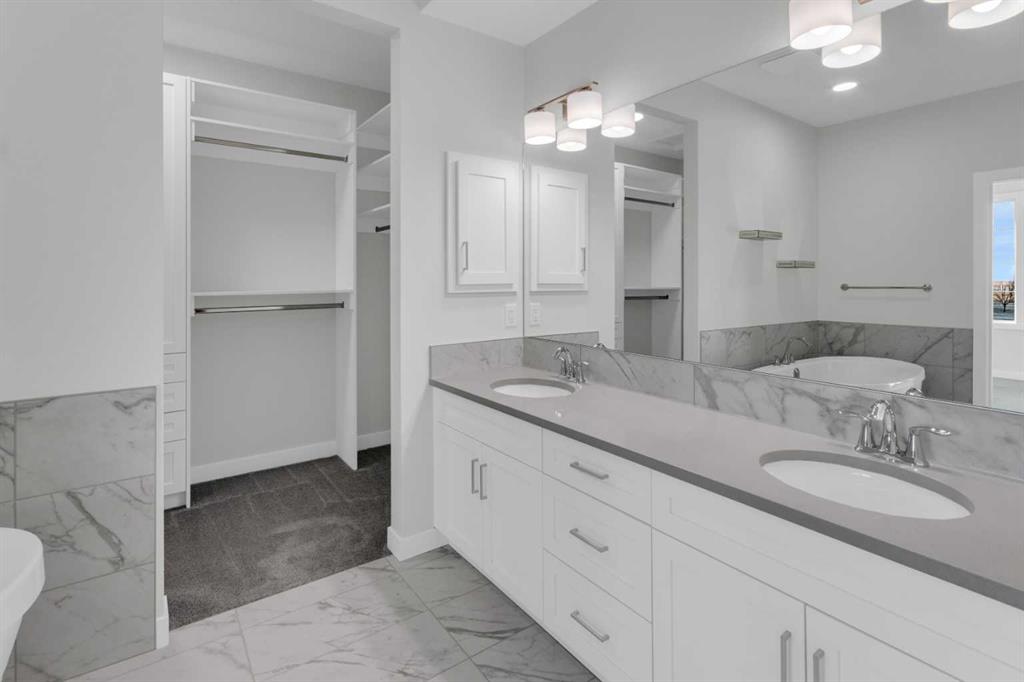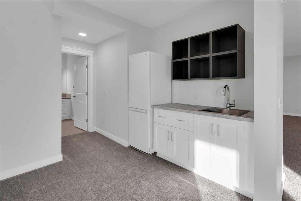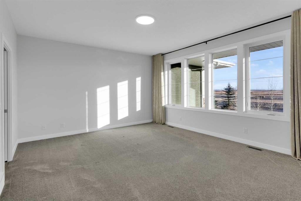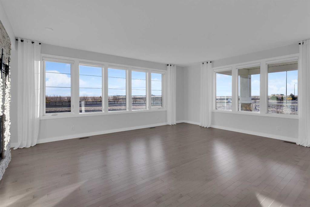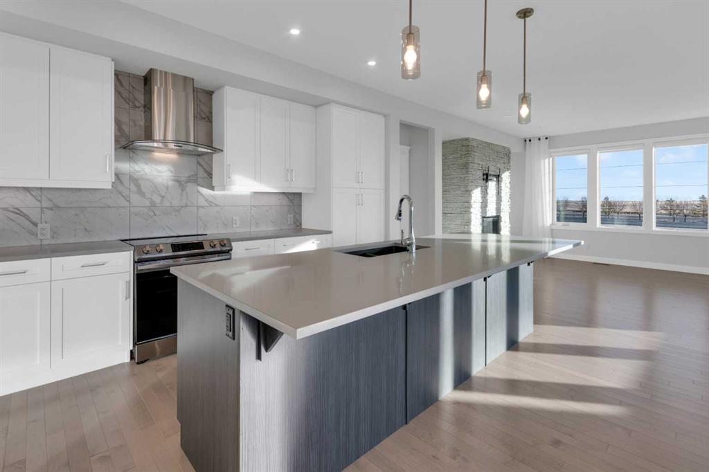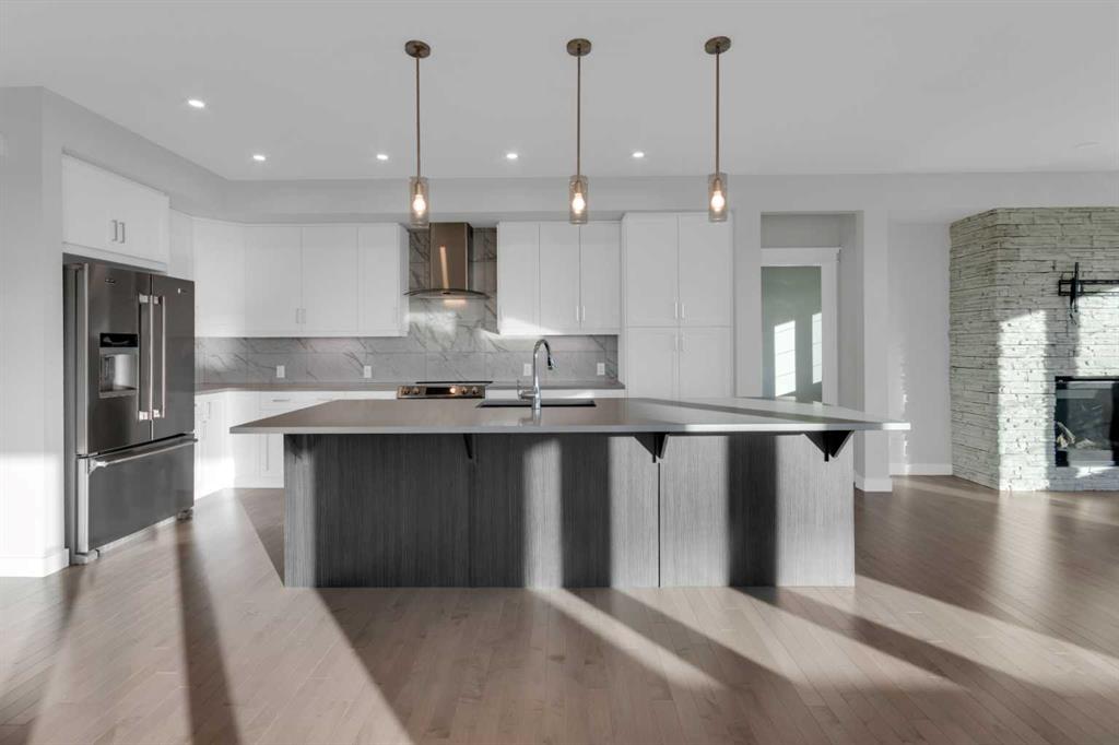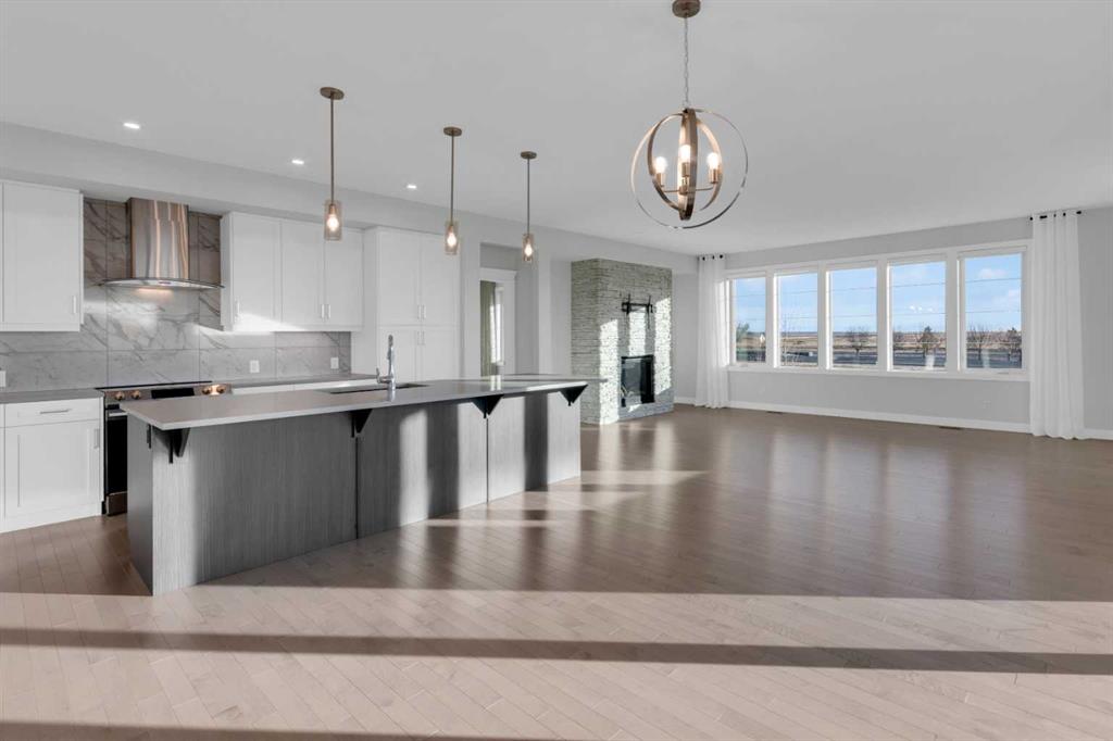 Welcome to this stunning, fully developed bungalow villa in the award-winning community of Harmony. Offering a true lock-and-leave lifestyle with no condo fees, This turn-key residence is beautifully designed with nothing to do but move in and enjoy the exceptional lifestyle Harmony has to offer. The main level features an inviting open-concept floor plan highlighted by 9’ ceilings, rich hardwood and ceramic tile flooring, and an impressive gourmet kitchen. The kitchen is a true culinary masterpiece with sleek white custom cabinetry, pristine quartz countertops, an extra-long island, high-end stainless-steel appliances including an induction cooktop and built-in oven, and a cabinet-style pantry, perfect for both everyday living and entertaining. Expansive windows and double sliding patio doors on the south side flood the home with natural light and lead to a covered deck, creating an exceptional outdoor living space. The primary retreat offers a large walk-in closet and a luxurious spa-inspired ensuite complete with a standalone soaker tub, oversized shower, and double vanity. The fully finished basement is equally impressive with 9’ ceilings, two generous bedrooms (both with walk-in closets), a full bathroom, spacious recreation room, a wet bar, and a large media room. A garden door opens to a covered aggregate patio, complemented by a circular stone seating area, ideal for relaxing or entertaining. Additional highlights include motorized, zebra blinds, an oversized garage, professionally landscaped yard with underground irrigation, and a prime location backing onto a walking path. As a resident of Harmony, enjoy unparalleled community amenities including a pristine lake with swimming, fishing, and paddle-boarding, extensive walking and biking paths, parks, playgrounds, dog park, and year-round community events. Golf enthusiasts will love proximity to the world-class Mickelson National Golf Club and LaunchPad. All of this, just minutes from Calgary, perfectly balancing mountain serenity with urban convenience. This exceptional home blends meticulous design, luxurious finishes, and an unbeatable location—offering a truly harmonious living experience.