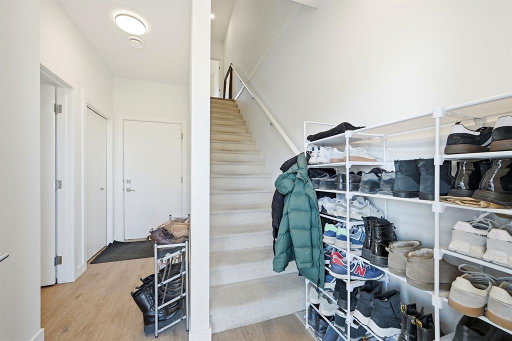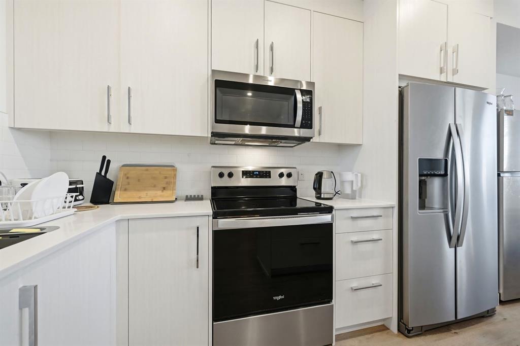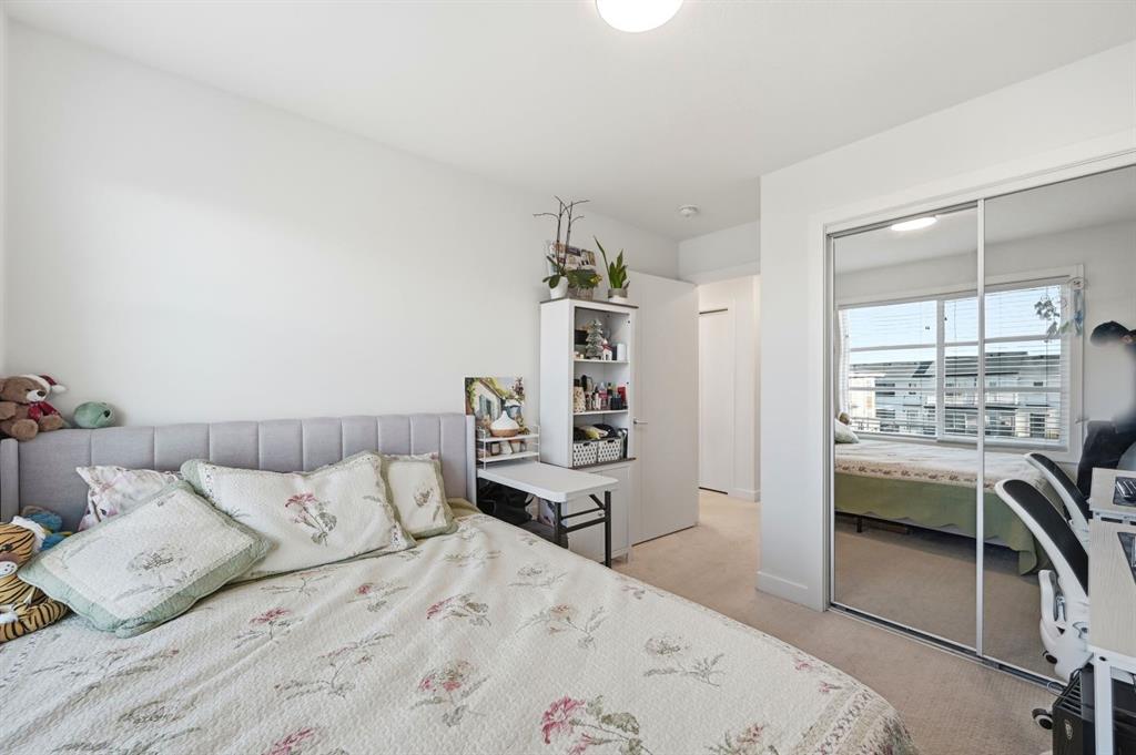 Beautifully upgraded townhome located in the family-friendly community of Carrington NW. Enjoy the convenience of nearby shops, walking paths, and easy access to downtown and the mountains. This modern 4-bedroom, 2.5-bath home offers 1,639 sq ft of thoughtfully designed living space. The main-floor bedroom is extremely versatile and works perfectly as a home office, gym, or guest room. The attached double garage provides secure parking and seasonal storage. The bright, open-concept second level is perfect for both daily living and entertaining. Large windows bring in plenty of natural light, while the upgraded kitchen features quartz countertops, stainless steel appliances, and ample storage. The living area opens onto a private balcony, great for morning coffee or relaxing in the evening. Upstairs offers three well-sized bedrooms, including a spacious primary suite with a walk-in closet and private 4-piece ensuite. Two additional bedrooms, a full bathroom, and upper-floor laundry add everyday convenience. The complex is well managed and features a landscaped courtyard with ample visitor and street parking. With growing amenities, future schools, and a planned LRT nearby, this is a fantastic option for families, professionals, or investors looking for a low-maintenance home in a growing community. Homes like this don’t last long in Carrington, book your private showing today and secure this one before it’s gone.