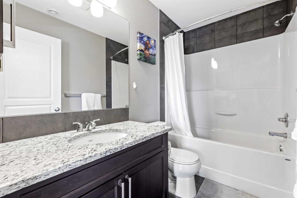 3 Bed, 2 Bath Stacked Townhome with Double Attached Garage. Welcome to this beautifully maintained and upgraded 3-bedroom, 2-bathroom stacked townhome in the vibrant and family-friendly community of Cranston in SE Calgary. With a private entrance at ground level and the entire living space located on the upper level, this home offers the rare benefit of no neighbours above you — ensuring quiet, comfortable living. Inside, you’ll find a bright, open-concept layout that flows seamlessly from the upgraded kitchen to the eating area and spacious living room. The kitchen features granite countertops, a large island, stainless steel appliances, and modern finishes — perfect for cooking and entertaining. The living room offers an inviting gas fireplace and access to your private balcony, ideal for relaxing or BBQing in the warmer months. The primary bedroom is generously sized and includes a stylish ensuite with tile flooring and an oversized shower. Two additional bedrooms provide space for kids, guests, or a home office, plus a second full bathroom and a convenient laundry area all on the same level. On the lower level, there’s a bonus flex room — perfect for storage, a gym, or a work-from-home space — and direct access to your double attached garage. Located just a block from local schools and walking distance to Cranston Market (featuring Sobeys, Good Earth Café, Berwick Public House, a vet, gas, and more), you’ll love the community feel and accessibility. You're also just minutes from Seton’s amenities, including the South Health Campus, YMCA, Cineplex, and restaurants. As a resident, you’ll enjoy access to the Cranston Residents Association, which offers a private recreation facility with a gym, tennis courts, a splash park, outdoor rink, and year-round programming for all ages. Whether you're a first-time buyer, a downsizer, or looking for low-maintenance living in a well-connected neighborhood — this is your opportunity to call Cranston home!