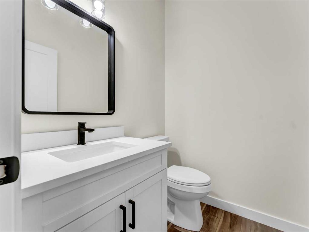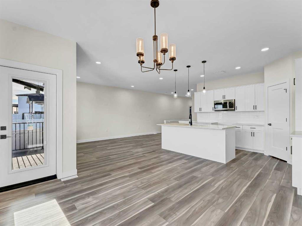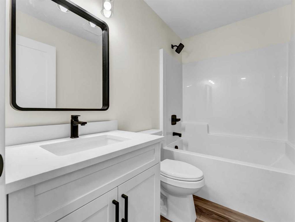 This beautiful new construction bungalow offers the perfect blend of style, comfort, and flexibility with over 1,100 sq. ft. of thoughtfully designed main floor living. Located in a growing community, this property is fully completed from top to bottom and move-in ready for a family to call it home. Step inside to a bright and open main level featuring luxury vinyl plank flooring throughout and a seamless flow between the spacious kitchen, dining, and living areas—ideal for both everyday living and entertaining. The kitchen showcases crisp white cabinetry, quartz countertops, a corner pantry, and a large central island offering ample prep and storage space. The adjacent dining and living areas open onto a 12' x 8' covered deck, perfect for relaxing or enjoying easy indoor-outdoor living. The main floor is anchored by a generous primary retreat with a walk-in closet and a sleek 4-piece ensuite, along with a convenient 2-piece powder room and main floor laundry. Downstairs, the fully finished basement expands your living space with two additional bedrooms, a full bathroom, and a large family room—ideal for movie nights, guests, or a kids’ hangout space. Completing the package is a double attached garage, providing plenty of room for vehicles, storage, and hobbies.