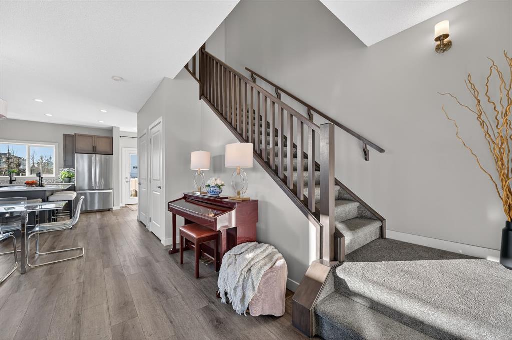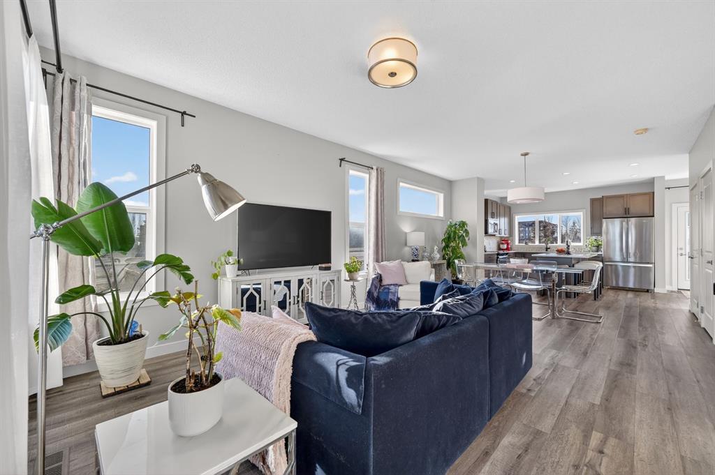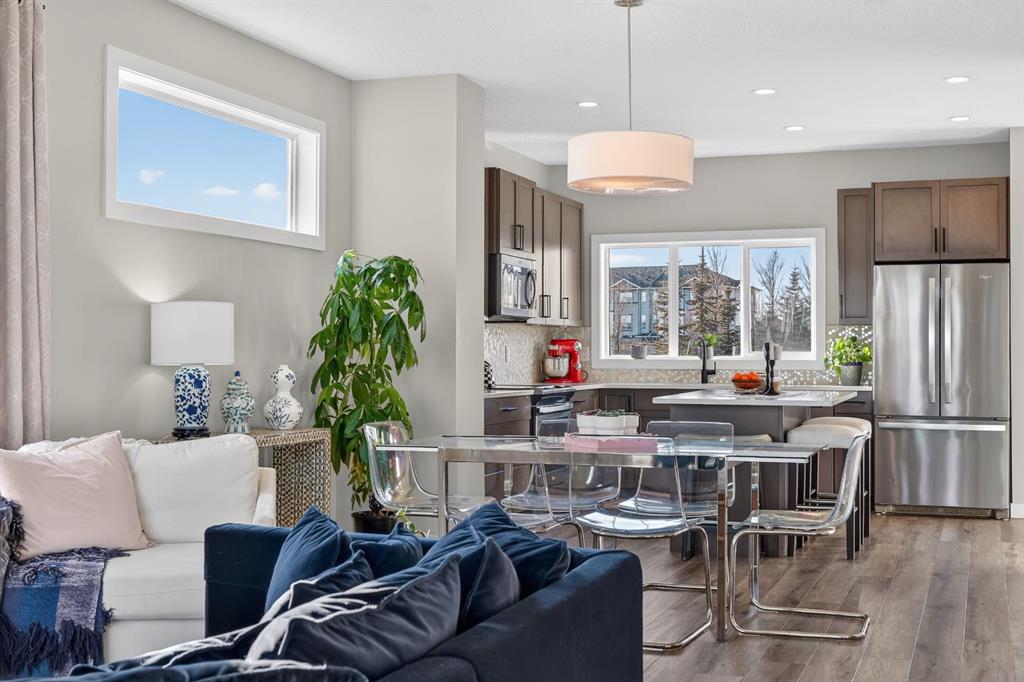 Proudly built by renowned builder Cardel Homes, this Indigo 1 model is an original-owner gem in the vibrant SE Calgary community of Walden. Enjoy the freedom of no condo fees and the advantage of one of the largest lots in the area, complete with a desirable west-facing backyard perfect for afternoon sun, evening barbecues, and year-round outdoor enjoyment. Spanning 1,550 sq. ft. above grade, this bright and open-concept home features 3 spacious bedrooms, 2.5 bathrooms plus the flexibility of a full unfinished basement ready for your personal touch—ideal for future development, extra storage, or a growing family. Flooded with plenty of windows and abundant natural light throughout, the home feels airy and inviting from the moment you step inside. Premium finishes elevate every space, including luxury vinyl plank flooring on the main level and in all bathrooms for easy maintenance and a modern feel. The impressive kitchen is a true highlight, boasting loads of cupboards and countertop space, sleek quartz countertops, and a complete Whirlpool stainless steel appliance package. Thoughtful details continue with stylish stair railing, low-maintenance Hardiboard siding on the exterior, professional front yard landscaping that set this home apart. The primary bedroom comes complete with a spacious 5-piece ensuite bathroom and a generous walk-in closet—perfect for unwinding and staying organized. Located in family-friendly community —known for its tranquil parks, pathways, natural wetlands, and proximity to shopping, amenities, and Fish Creek Provincial Park—this property offers the perfect blend of peaceful suburban living with convenient access to everything Calgary has to offer. Don't miss this rare opportunity to own a well-maintained, move-in-ready home, in one of Calgary's most desirable communities. Schedule your private viewing today!
