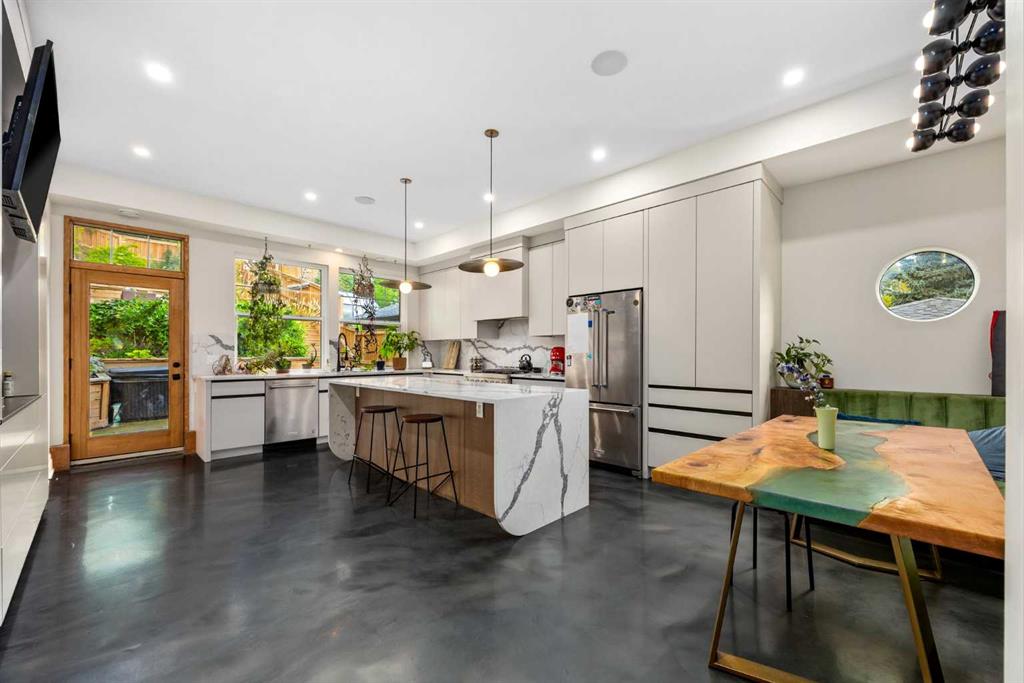 This is Ramsay living at its finest. Perched on one of the most coveted streets in the neighbourhood, this custom brownstone by boutique builder Icon Design and Development, with architecture by John Trinh & Associates and interiors by Studio Felix, gives you unbeatable views over the community and skyline. Plus, you’re just minutes from Inglewood, the Elbow and Bow River pathways, and quick access to Blackfoot Trail, Macleod Trail, and Deerfoot Trail to get anywhere in the city fast. Inside, every detail is dialed in. The main floor has heated polished concrete floors (yes, warm concrete), a showpiece fireplace, and distinctive custom millwork you won’t find in a builder-grade home. The kitchen is built for people who love to cook and host, with a massive island, high-end gas range, and loads of storage. There’s even a home bar with beer taps for when friends drop by. Upstairs you’ll find three big bedrooms, including a primary suite with a spa-style ensuite and walk-in closet. In the lower level, you will find an excellent flex space! The west-facing backyard is private and tiered to make the most of the views. It’s low-maintenance, has plenty of space to relax, and yes — there’s already a hot tub waiting for you. The heated attached garage (rare for Ramsay) is oversized and tandem, perfect for your gear, hobbies, and Calgary winters. Homes like this don’t come up often here. Ramsay gives you that small-town feel in the middle of the city, and Maggie Street is as good as it gets. For more info and photos, click the links below!
