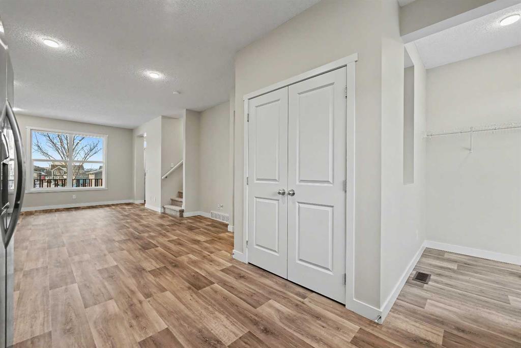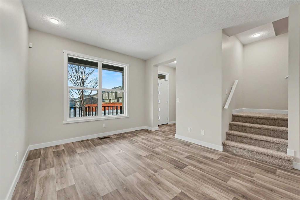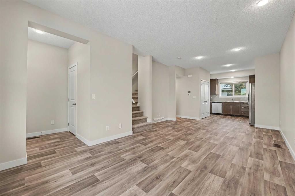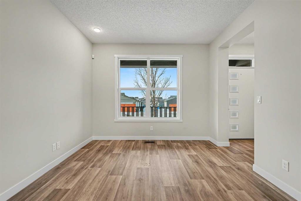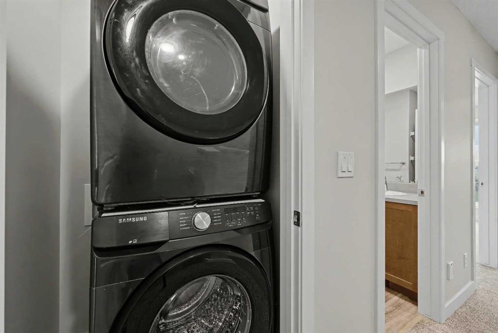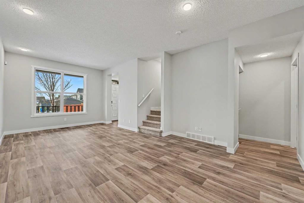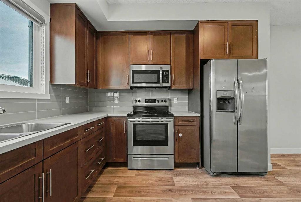 Welcome to this thoughtfully designed and functional 2-storey townhouse in the vibrant NW community of Carrington, offering over 1,800 sq ft of developed living space including a fully finished basement with an additional bedroom and full bathroom, perfect for guests, extended family, or a private home office. The open-concept main floor is bright and inviting, featuring durable luxury vinyl plank flooring and a well-designed layout perfect for everyday living and entertaining. The kitchen is thoughtfully laid out with ample cabinetry, modern tile backsplash, and stainless steel appliances, flowing seamlessly into the dining area for easy hosting. Large windows bring in abundant natural light to the living room, while a convenient 2-piece powder room completes the main level. Upstairs, the spacious primary bedroom offers a walk-in closet and a private ensuite, creating a comfortable retreat. Two additional well-sized bedrooms, a full main bathroom, and upper-level laundry provide excellent functionality for family living. The fully finished basement adds exceptional versatility with a large recreation area, fourth bedroom, and full bathroom, making it perfect for a media room, home office, or guest suite. The backyard is fully landscaped with access to the oversized single car garage accessed from the paved lane. Enjoy outdoor living with a private outdoor space ideal for summer BBQs and relaxation, along with convenient parking options. This home is surrounded by parks, playgrounds, pathways, ponds, and nearby shopping, with quick access to Stoney Trail, Deerfoot Trail, CrossIron Mills, and the airport. A fantastic opportunity to own a move-in-ready home in one of Calgary’s fastest-growing communities.