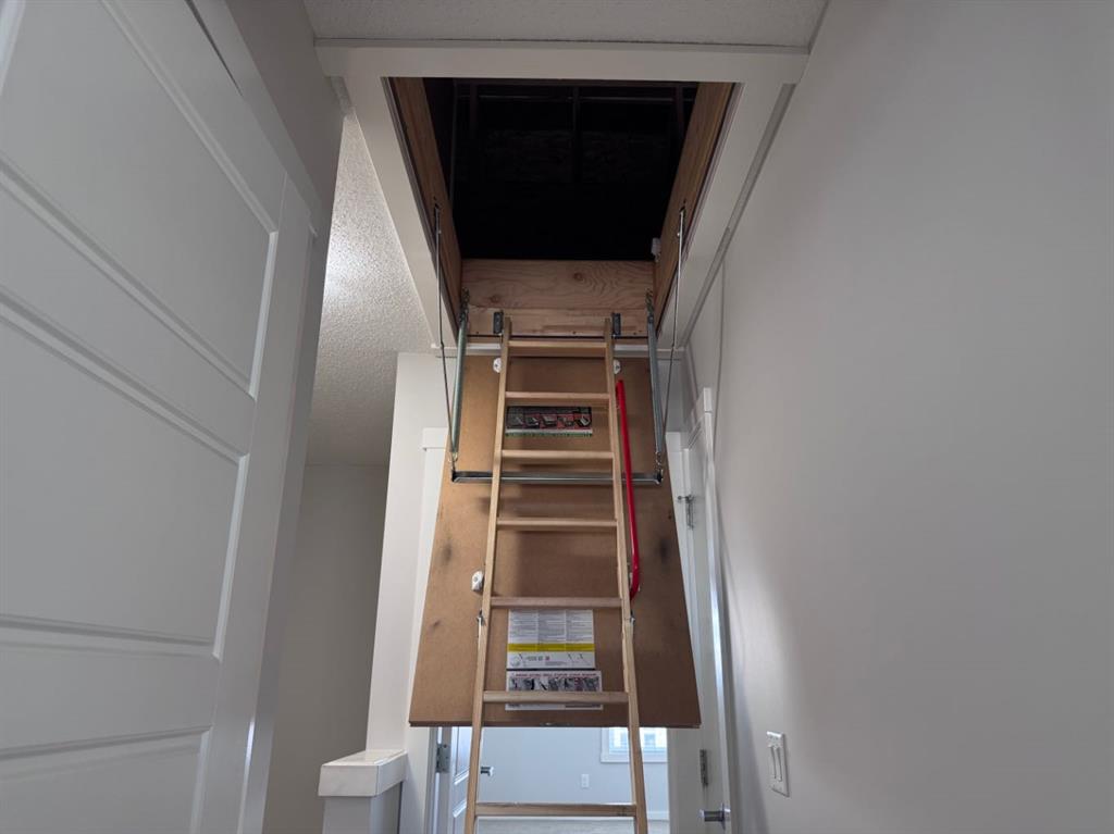 Located in the heart of Cranston, this beautifully maintained townhome offers a smart layout, thoughtful upgrades, and everyday convenience just minutes from schools, shopping, medical amenities, and major roadways including Deerfoot Trail and Stoney Trail. Freshly painted! The main floor, where a well designed kitchen with stainless steel appliances anchors the open living space. A generous dining area creates separation between the kitchen and living room, while a bathroom adds practicality and convenience for guests. The upper level is designed with privacy in mind, featuring double master bedrooms, each complete with its own full ensuite. Laundry is also located upstairs—keeping daily routines efficient and convenient. An added bonus is the builder-designed attic storage area, accessed by concealed stairs and offering a large, dedicated storage room rarely found in townhomes. Outside, the fully enclosed backyard provides a secured space for children and pets. Assigned parking is located directly in front of the home, with additional parking available along the quiet lane behind the property. Finished with durable Hardie Board siding and well cared for by its owners, this Cranston townhome delivers functionality, comfort, and location in one well-rounded package.