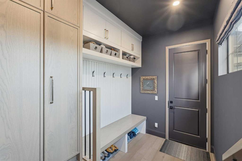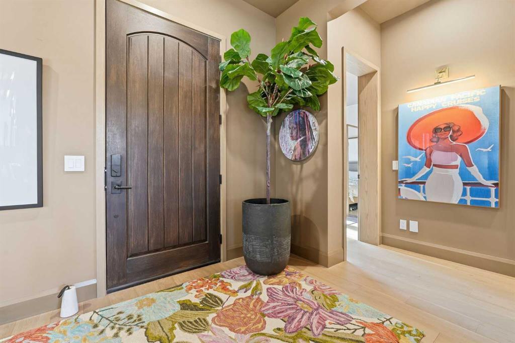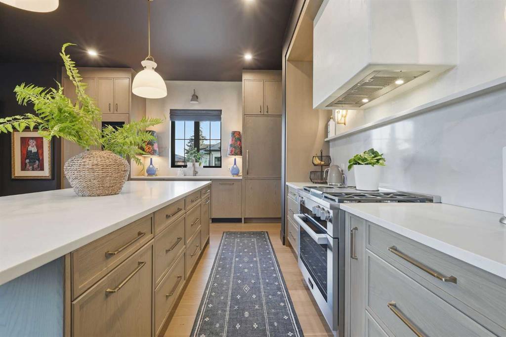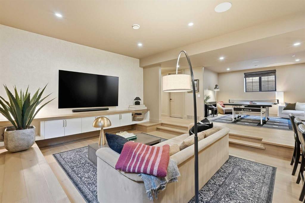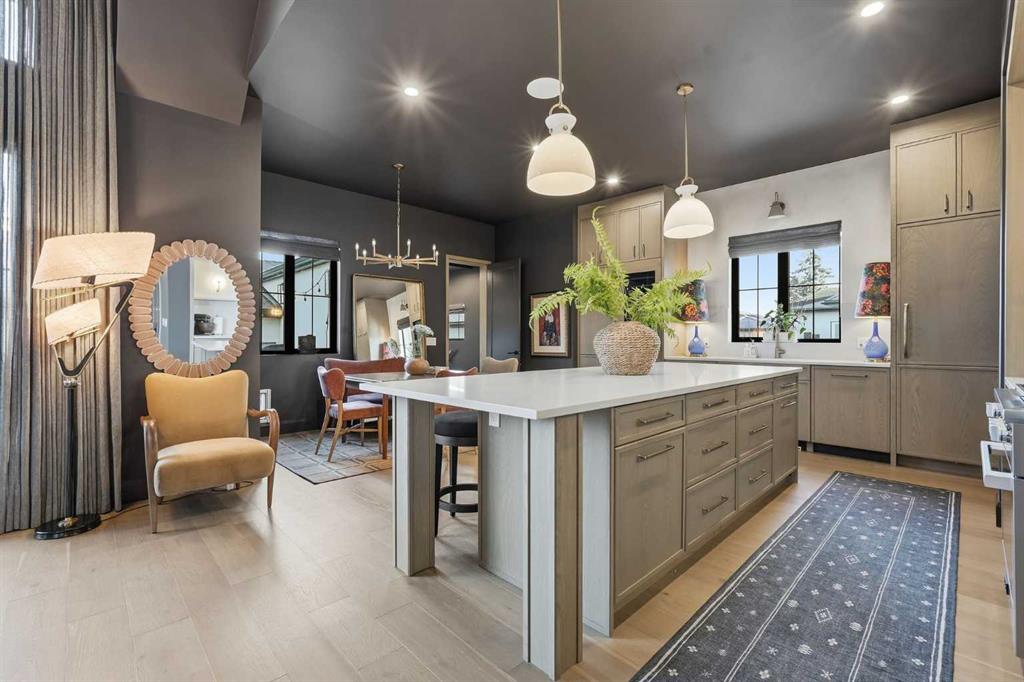 Enduring sophistication defines this beautifully crafted 2+2 bedroom residence in North Glenmore Park, offering more than 4,200 sq ft of refined living space with exceptional attention to detail throughout. The main level showcases wide-plank hardwood floors and soaring ceilings, setting the stage for an impressive living room highlighted by a dramatic vaulted ceiling with chandelier, a floor-to-ceiling window, and a stunning Venetian plaster fireplace. The thoughtfully designed kitchen is a chef’s delight, appointed with custom oak cabinetry, premium quartz countertops, a generous island with eating bar, high-end appliances, and a well-equipped butler’s pantry. Adjacent to the kitchen, the spacious dining area easily accommodates gatherings of family and friends. The main floor primary retreat provides a serene escape, complete with a walk-in closet and a luxurious 6 piece ensuite featuring in-floor heat, dual sinks, a freestanding soaker tub, and an oversized shower with heated bench and floor. A second bedroom with its own 4 piece ensuite offers ideal comfort for guests. A stylish 2 piece powder room, a practical mudroom with ample storage, and a dedicated laundry room with sink and cabinetry complete the main level. Upstairs, the loft area offers an inviting space to unwind, featuring a family room, games area, wet bar, 2 piece bath, and a charming library nook. The fully developed basement extends the home’s versatility with heated floors, a family/media room with bar and wine storage, and a separate games area—perfect for movie nights or entertaining. A glass door behind the bar leads to a room roughed in for a future sauna and shower. Two additional bedrooms, two 3 piece baths (including one ensuite & the other with a steam shower), and a second laundry room complete the lower level. Additional highlights include central air conditioning, custom draperies, two vacuum systems with attachments, and built in speakers. Outdoors, enjoy custom window well railings, an underground irrigation system, a sunny south-facing front patio, and a private back deck with natural gas BBQ hook-up and a beautiful wood-burning fireplace. Parking is effortless with a triple attached garage wired for 220 volt service. Ideally located within walking distance to Glenmore Athletic Park and close to two golf courses, top-rated schools, shopping, public transit, and major routes including Crowchild and Glenmore Trails, this exceptional home offers an unparalleled blend of luxury, comfort, and convenience.