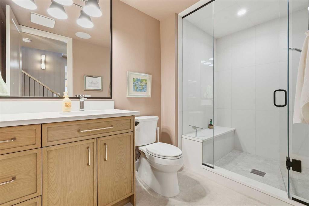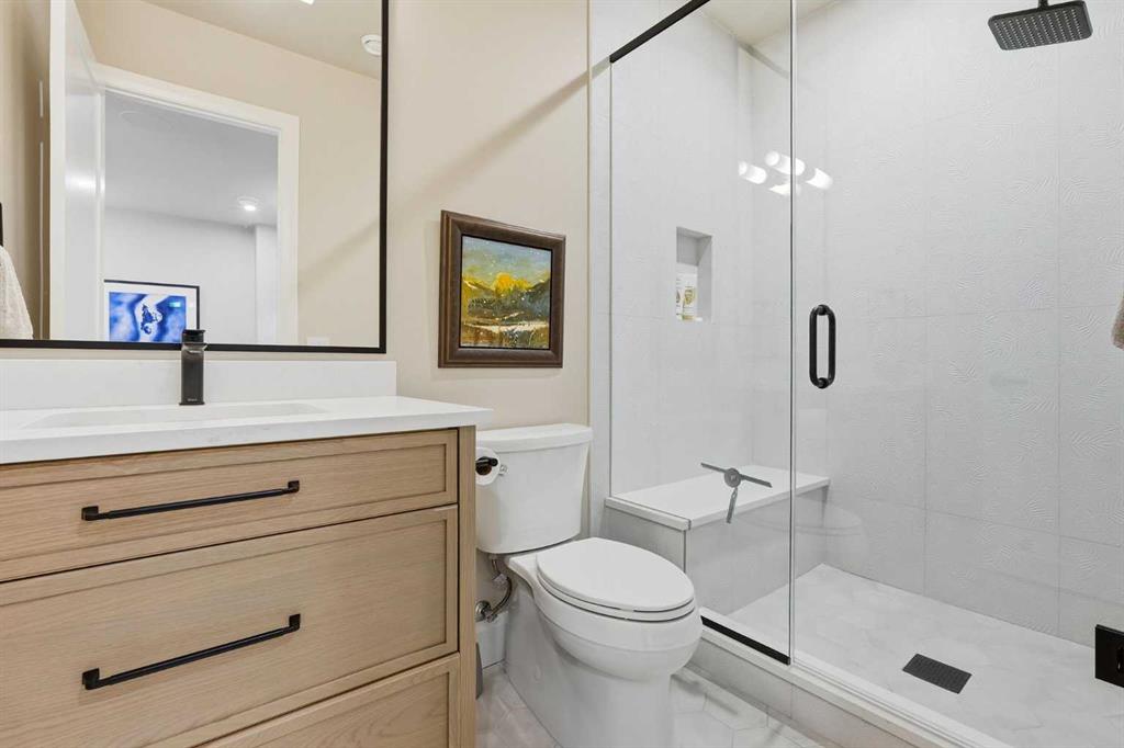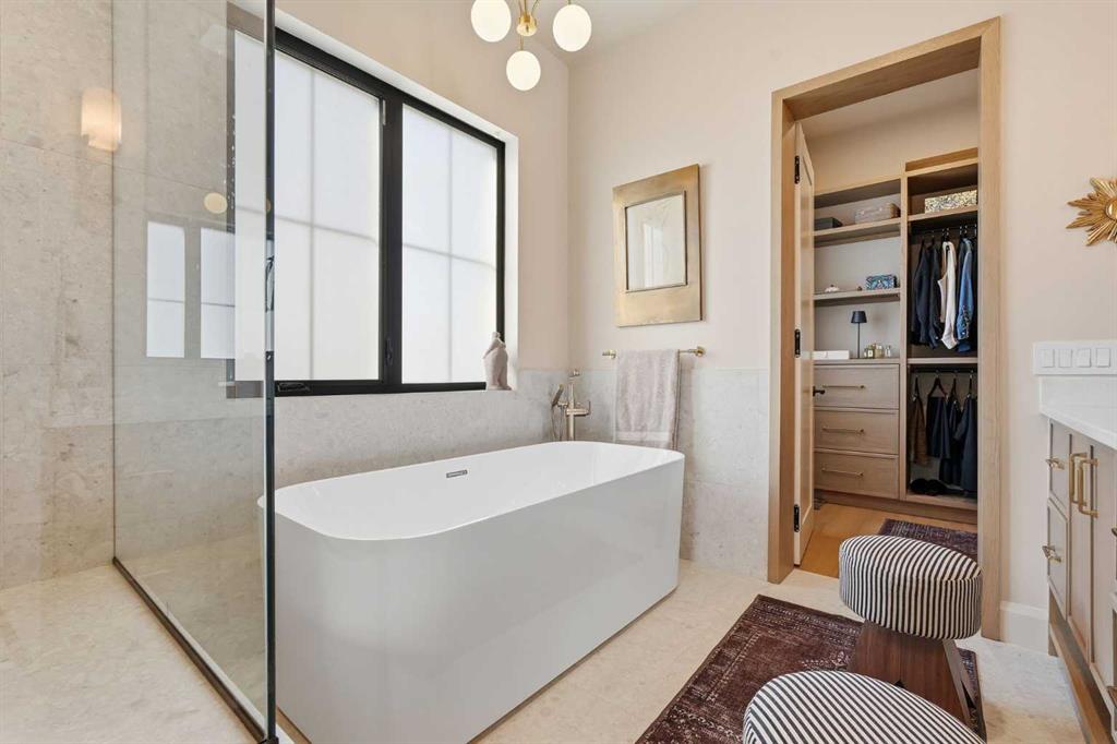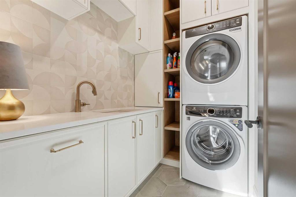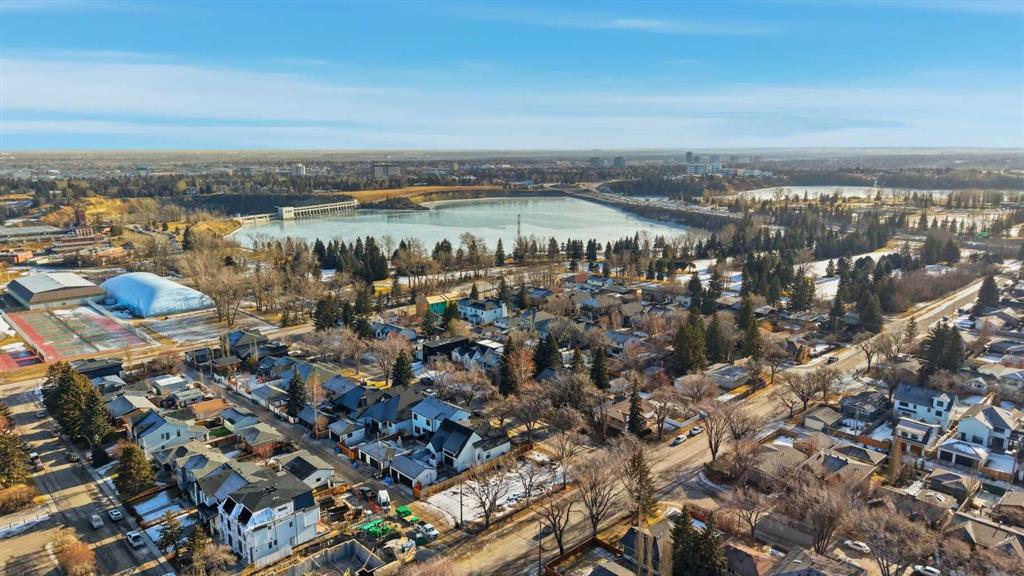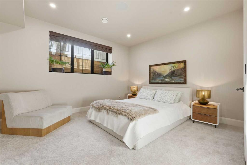 Enduring sophistication defines this beautifully crafted 2+2 bedroom residence in North Glenmore Park, offering more than 4,200 sq ft of refined living space with exceptional attention to detail throughout. The main level showcases wide-plank hardwood floors and soaring ceilings, setting the stage for an impressive living room highlighted by a dramatic vaulted ceiling with chandelier, a floor-to-ceiling window, and a stunning Venetian plaster fireplace. The thoughtfully designed kitchen is a chef’s delight, appointed with custom oak cabinetry, premium quartz countertops, a generous island with eating bar, high-end appliances, and a well-equipped butler’s pantry. Adjacent to the kitchen, the spacious dining area easily accommodates gatherings of family and friends. The main floor primary retreat provides a serene escape, complete with a walk-in closet and a luxurious 6 piece ensuite featuring in-floor heat, dual sinks, a freestanding soaker tub, and an oversized shower with heated bench and floor. A second bedroom with its own 4 piece ensuite offers ideal comfort for guests. A stylish 2 piece powder room, a practical mudroom with ample storage, and a dedicated laundry room with sink and cabinetry complete the main level. Upstairs, the loft area offers an inviting space to unwind, featuring a family room, games area, wet bar, 2 piece bath, and a charming library nook. The fully developed basement extends the home’s versatility with heated floors, a family/media room with bar and wine storage, and a separate games area—perfect for movie nights or entertaining. A glass door behind the bar leads to a room roughed in for a future sauna and shower. Two additional bedrooms, two 3 piece baths (including one ensuite & the other with a steam shower), and a second laundry room complete the lower level. Additional highlights include central air conditioning, custom draperies, two vacuum systems with attachments, and built in speakers. Outdoors, enjoy custom window well railings, an underground irrigation system, a sunny south-facing front patio, and a private back deck with natural gas BBQ hook-up and a beautiful wood-burning fireplace. Parking is effortless with a triple attached garage wired for 220 volt service. Ideally located within walking distance to Glenmore Athletic Park and close to two golf courses, top-rated schools, shopping, public transit, and major routes including Crowchild and Glenmore Trails, this exceptional home offers an unparalleled blend of luxury, comfort, and convenience.