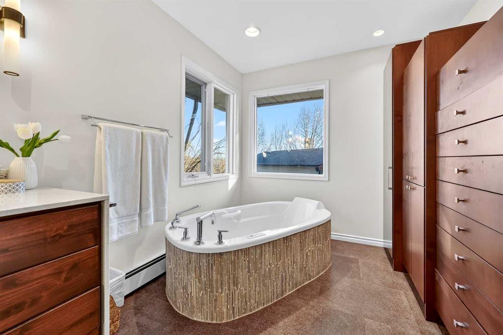 OPEN HOUSE SATURDAY FEBRUARY 7TH 11 AM - 1 PM. Perched proudly atop a quiet hill on one of the most desirable streets in St. Andrews Heights, 1659 St. Andrew’s Place NW presents a truly exceptional real estate offering. This expansive bungalow spans nearly 1800 square feet, includes a fully finished basement and features stunning views of downtown Calgary right from the front window. The kitchen is a true centerpiece, featuring granite countertops, heated floors, and abundant cabinetry and storage, making it as practical as it is inviting. The thoughtfully designed layout includes a total of five bedrooms and three and a half bathrooms, highlighted by a spacious primary retreat with a large ensuite featuring a luxurious soaker tub—the perfect place to unwind at the end of the day. The second large bedroom on the main floor features a convenient half bathroom en-suite, while another full bathroom completes the main floor. A gas fireplace anchors the main living area upstairs, creating a warm and welcoming focal point with large windows throughout the home that flood the interior with natural light and frame the impressive city skyline. A second gas fireplace in the basement living space adds comfort and versatility for relaxed evenings, entertaining, or extended family use. New carpet in the basement gives the space a fresh feel with 3 large bedrooms and another full bathroom complete the home. The home also features a single car heated attached garage. Updated throughout, this home blends classic bungalow charm with modern comfort and functionality. Recent upgrades include a new roof (2024), new hot water tank (2024), and a new back deck (2023)—ideal for outdoor entertaining or quiet relaxation. The main floor features hardwood, tile and cork flooring, while the basement has been refreshed with new carpet, offering comfort and durability across both levels. Whether you choose to enjoy the home as it is, further customize it to your personal taste, or take advantage of the premium elevated lot to build your dream home, the possibilities here are exceptional. The location is equally compelling—peaceful and private, yet just minutes from downtown, steps from the Foothills Hospital, the University of Calgary, the University District shopping and entertainment district, top schools, parks, and river pathways. Call your favourite Realtor today to book your showing!