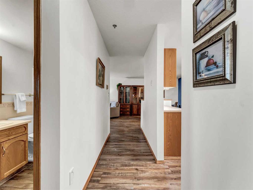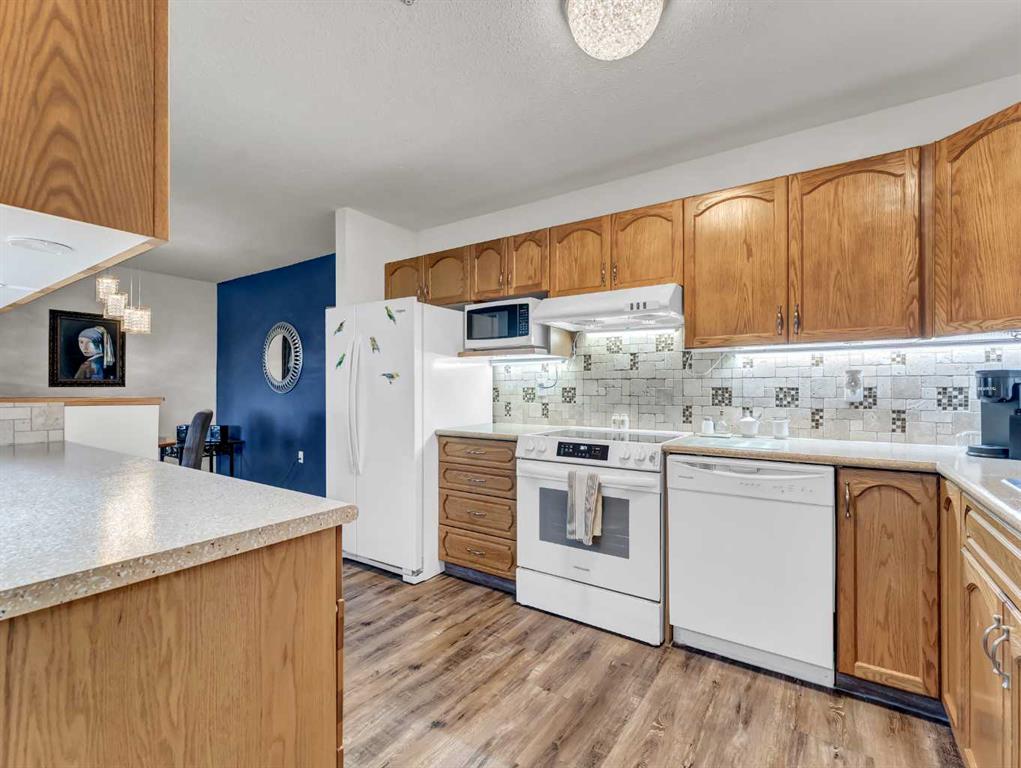 Beautiful 1204 square foot 2 bed, 2 bath condo, located in the popular SOUTHVIEW/PARK MEADOWS area! Everything you’ll want is within walking distance! From shopping to restaurants, coffee shops, pharmacy, doctors offices, banks and more! As you enter the home you’ll appreciate the nice size foyer with your laundry to the immediate left with room for the freezer or an extra fridge. There are 2 bedrooms and the large master bedroom has a renovated 3 PCE ensuite with LARGE walk in shower, new toilet and hardware as well. There’s also a built in area in your primary bedroom to get ready for the day! The 2nd bedroom is a nice size as well. The open kitchen with large dining area has TONS of cabinets and an awesome WALK IN PANTRY! There’s also lots of counter space as well and they have been professionally redone with a EPOXY finish! The home comes with a full appliance package and the fridge and stove are less than a year old. If you’re entertaining family or friends there’s no shortage of space for dining or catching up with them in the large living room or sitting in the enclosed sun room looking off your deck and having a morning coffee or an evening glass of wine! There’s NEW VINYL PLANK FLOORING THROUGHOUT and all NEW LIGHTING! This is a great complex with wonderful neighbours and is a turn key condo that comes with a games room, fitness room, rec room, underground parking and storage unit. The condo fees are $631.00 a month and include EVERYTHING except cable and phone. Call your favourite REALTOR® today to see this gem!