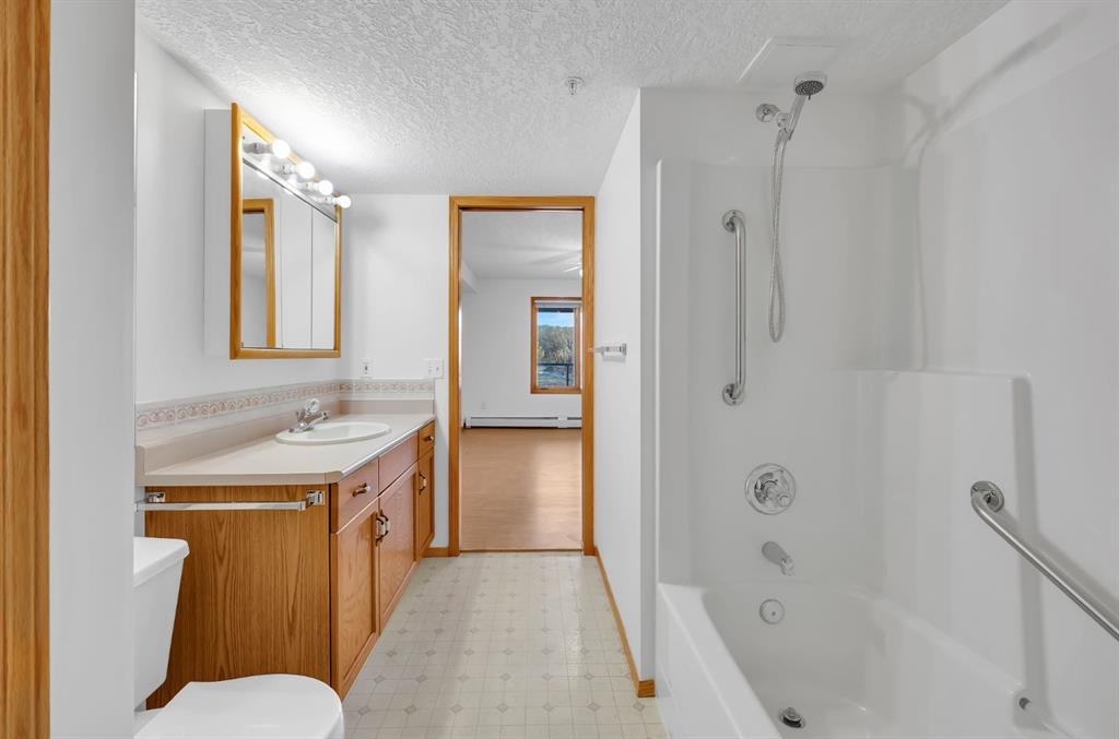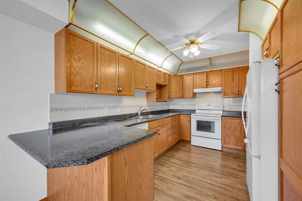 Welcome to Unit 311 at the Sierras of Richmond Hill, a well-maintained 55+ adult living community in Calgary’s southwest. This spacious 2 bedroom, 2 bathroom condo offers 1,183.73 sq ft of thoughtfully designed living space with hardwood flooring throughout the main living areas. The open living and dining areas are bright and inviting, offering plenty of room for everyday living or entertaining, with access to a private balcony with additional storage. The kitchen connects seamlessly to the main living space, while bedroom one provides excellent flexibility as a bedroom, office, or den. The main bathroom is a 3-piece, and the primary bedroom features a walk-in closet and a 4-piece ensuite. Additional highlights include in-suite laundry, wall-mounted air conditioning, ample in-unit storage, one titled underground parking stall, and a separate storage locker. Condo fees include electricity, heat, water, sewer, recycling, trash removal, and all common area maintenance, offering excellent value and predictable monthly costs. Residents of the Sierras of Richmond Hill enjoy a vibrant, community-focused lifestyle with outstanding amenities, including a fitness centre, large social/party room with kitchen, games room, craft room, workshop, coffee room, library, post office, car wash bay, and four guest suites available for visiting family and friends. Ideally located close to shopping, dining, and services at Westhills Shopping Centre and Signal Hill Centre, with easy access to Stoney Trail and transit. A fantastic opportunity for comfortable, low-maintenance living in a welcoming and well-established adult community. Call to book your private showing today!
