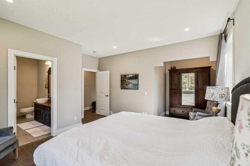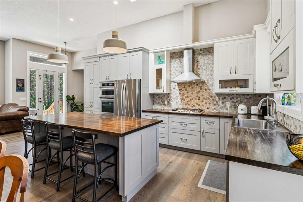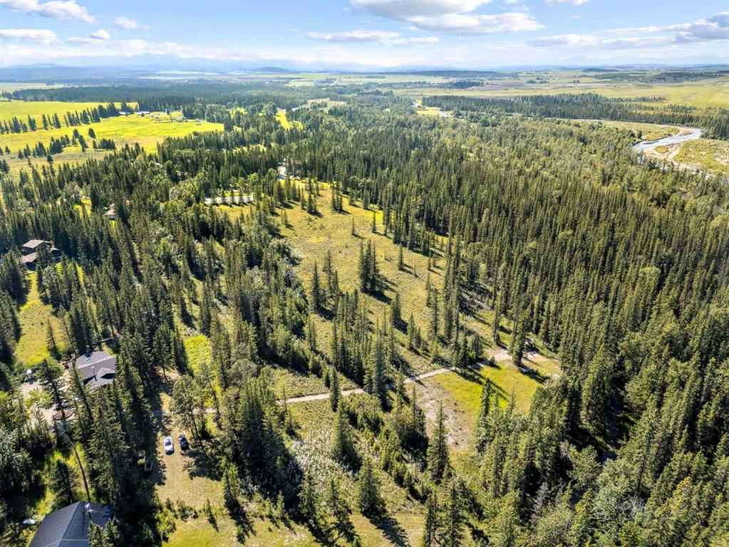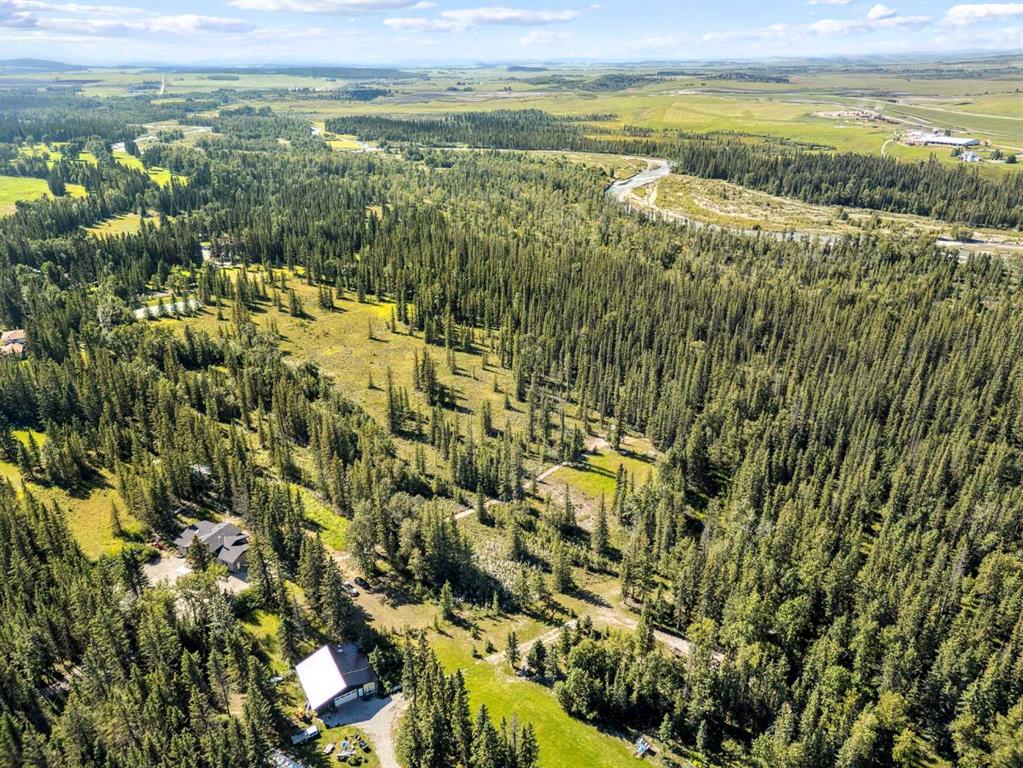 Welcome to your countryside DREAM HOUSE nestled on 19.99 acres of pristine, tree-covered land with only a couple of years old custom-built bungalow(2023) offers a rare blend of convenience, comfort, modern elegance and timeless country charm. Here, the days begin with the gentle sounds of nature, wake up by birds singing, the soft shimmer of sunlight through the treetops, and enjoy morning walk with coffee in your hand up to the little stream, and having brunch on your private deck surrounded by trees. Afternoon, focus on your habit in a workshop, and then walk even further cross your own handcrafted bridge and wander to the Elbow River, where the beauty of Alberta unfolds in every season. Invite your guests to a BBQ festivity under a wooden gazebo and sit around a fire pit for stargazing. 1,807 sqft residence is thoughtfully designed for both comfort and style. Open-concept with 12-ft ceilings, anchored by a wood-burning fireplace, the chef’s kitchen showcases custom wooden countertop, ample cabinetry, and a skylight to capture the midday sun. Expansive windows bring in abundance of natural light all day long, and the engineered hardwood floors enhance the country living. The primary bedroom with an 5pc ensuite bathroom, accompanied by a spacious second bedroom, an additional full bathroom, and a laundry room to complete the main level. The undeveloped lower level holds unlimited potential, but is already roughed-in for in-floor heating and a bathroom. The double attached garage is currently serving as a workshop, but it can easily transition back to vehicle storage. Outside, you will find a built-in deck for RV or trailer to accommodate overnight guests, and there are open spaces to store all your leisure vehicles, or unlimited opportunities to build tennis court, basketball court, hockey rink, swimming pool, hot tub, workshop, green house or you name it! This is more than just a home — it’s a lifestyle home that you have been dreaming of. Despite the peaceful seclusion, you’re only 10 minutes from Calgary’s west end, 15 minutes to Bragg Creek, and just 30–40 minutes to the mountains. Whether you dream of a private retreat, a hobby farm, or just a peaceful land you can rest, this property delivers the very best of Alberta acreage living. Schedule your private viewing today!