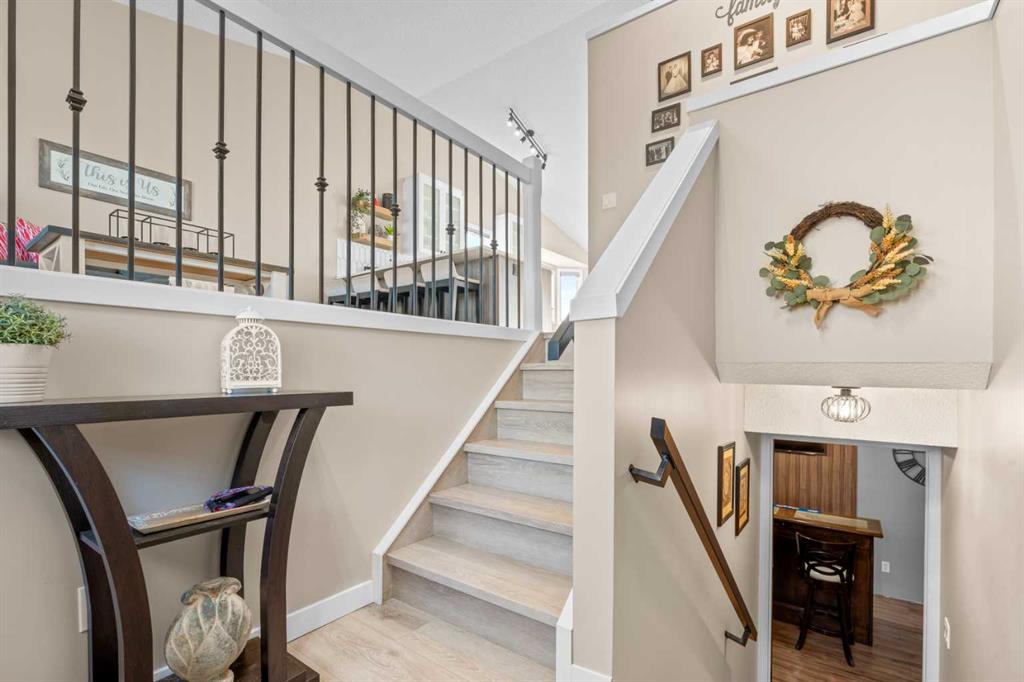 Discover a stunning family home in a peaceful cul-de-sac of Edgewater, Airdrie—a perfect blend of comfort and sophistication, enhanced by ample upgrades and sublime finishes throughout. This exquisite residence features five spacious bedrooms and three bathrooms. Upon entry, a welcoming foyer leads to a bright living area with soaring vaulted ceilings, bathed in abundant natural light. The gourmet kitchen, adorned with high-end cabinetry and elegant countertops, seamlessly connects to the dining area, making it ideal for both casual meals and entertaining. The outdoor space boasts a beautifully landscaped yard and deck perfect for relaxation and recreation, while a double detached garage provides added convenience and storage. Situated close to schools, parks, and shopping, this home offers the best of community living. Don’t miss your opportunity to make this remarkable residence your new home—schedule a viewing today! A “Schedule A” must accompany all offers to purchase.