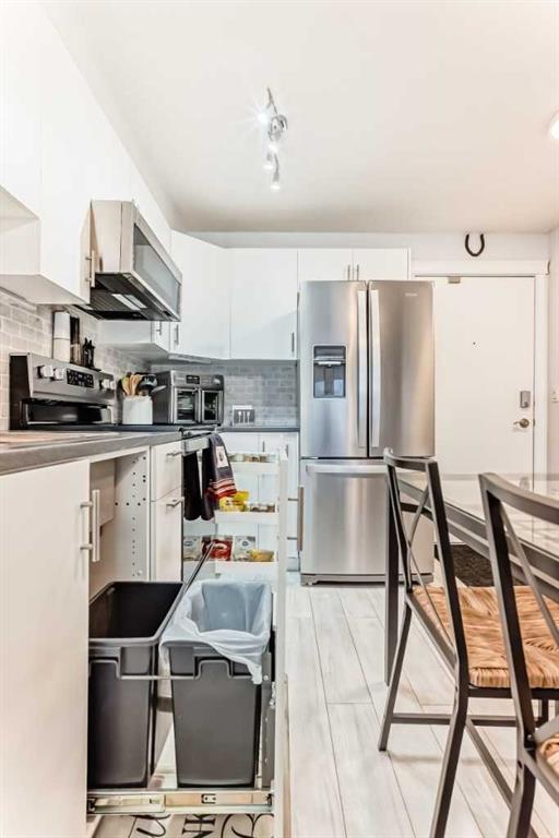 Welcome to this beautifully renovated 1 bedroom plus den unit in the desirable community of Evergreen. Bright and inviting this home is filled with natural light and finished in clean, neutral colours throughout. The spacious living room features patio doors that open to a sunny west-facing balcony, perfect for relaxing in the evening with a beverage as the sun goes down. The large open kitchen has plenty of space for a dining table or even a future kitchen island, and is equipped with newer, modern stainless steel appliances, an upgraded 3-rack dishwasher, and built-in cupboard organizers for excellent storage and functionality. The showhome-like bathroom is finished with luxurious marble tile, a dimmable anti-fog mirror, and contemporary fixtures. The generous den provides flexible space for a home office, guest area, or additional storage. This unit is clean, bright, and truly move-in ready with very flexible possession available. The parking stall is conveniently located near the front door, with ample additional street parking available. Ideally located, this home is walkable to everyday shopping, cafes and restaurants nearby, offers easy access to the ring road, and is just a short walk to Fish Creek Park. An excellent opportunity to own a stylish, well-located home in a smaller, more intimate building with 2 elevators. Just move right in!
