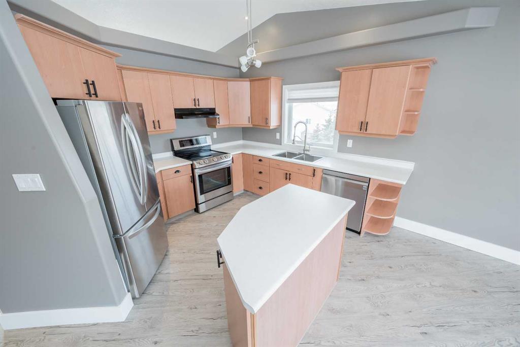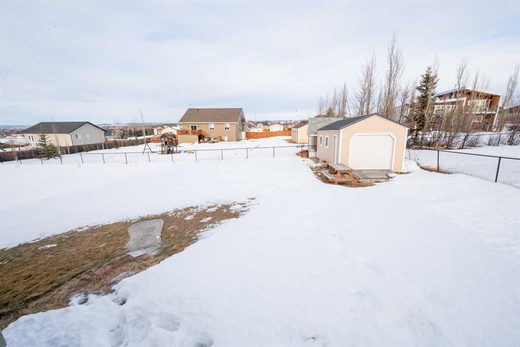 Stunning fully developed home situated on massive 0.61 acre lot that boasts mountain views from your living room! As you pull up to your new home you will appreciate the large driveway allowing for ample parking + true RV Parking. Spacious entry way welcomes you with open arms. Making our way up a few stairs into your living room with large window allowing natural sun light in all day long. Kitchen hosts ample cabinet + counter space with updated stainless steel appliances, kitchen island and must have pantry. Dining allows for a table of any shape or size for all occasions, with back deck access great for entertaining and BBQing. Remainder of main level is completed with the master bedroom with walk in closet and updated stunning en-suite with grande walk in tiled shower. Plus two more bedrooms and full bathroom. Let's make our way to the finished basement that has huge family room, fourth bedroom, underneath the stairs storage, and laundry/utility/storage room with plumbing for a third bathroom. Heated attached 22.1x25 double car garage with epoxy flooring is wonderful for our long winters. Back yard is fully fenced with no lack of space for activities or future detached garage/shop and is complimented nicely with large 12x20 shed and raised garden boxes. Extra insulation blown into attic with added vapour barrier 1.5 years ago, updated flooring upstairs, paint are just some of the renos completed by the sellers that show the pride of ownership of this lovely home. Book your viewing today!