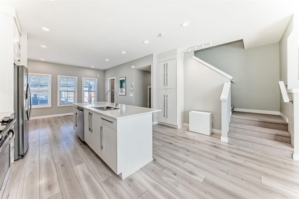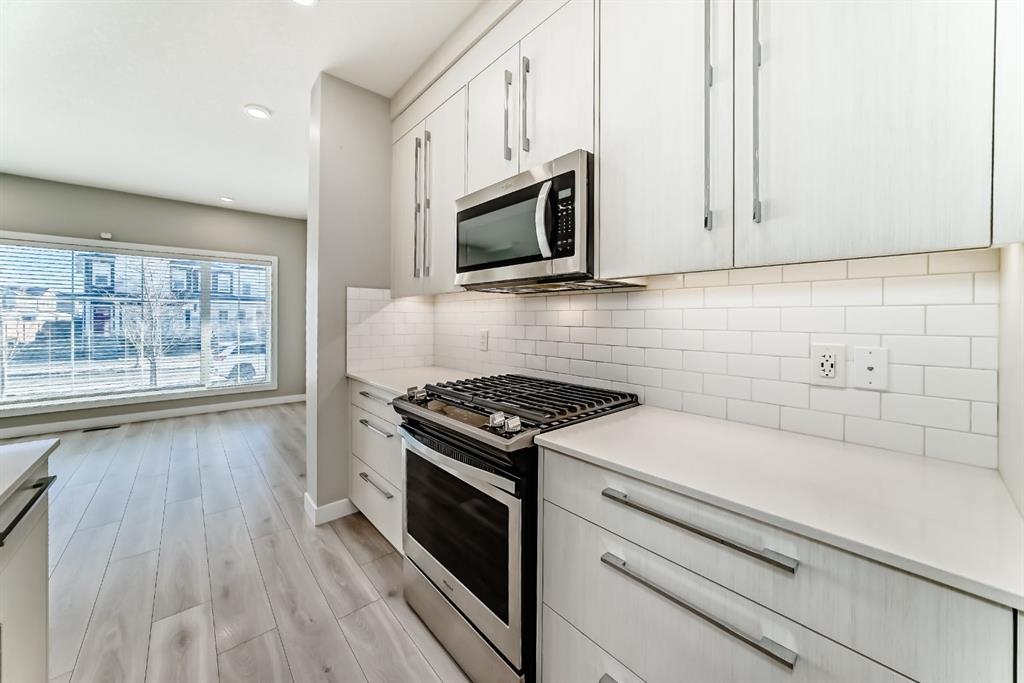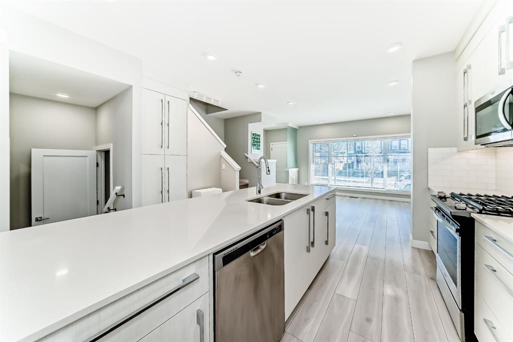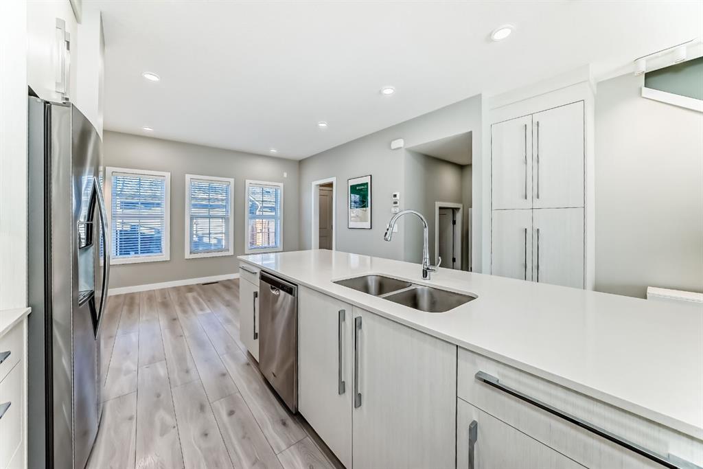 Experience comfortable and stylish living in this beautifully built fourplex by award-winning Truman Homes, with over 2,161 sq. ft. of well-planned space and no condo fees. This home offers the perfect balance of quality, function, and value for a growing family. Step inside to enjoy bright 9-foot ceilings, modern LED lighting, and durable wide plank Maestro Oak flooring that is both elegant and family-friendly. The open-concept layout makes everyday living and entertaining easy. The kitchen is designed for busy family life, featuring quartz countertops, full-height cabinetry, under-cabinet lighting, and a stainless steel appliance package with a gas range. It offers plenty of storage and workspace for cooking and gathering together. Upstairs, the primary bedroom provides a peaceful retreat with a boxed ceiling and a spa-inspired ensuite that includes a custom-tiled shower, dual sinks, and quality TRUspace cabinetry. Additional bedrooms offer flexible space for kids, a home office, or guests. Thoughtful upgrades include Kohler fixtures, oversized windows for natural light, smart USB outlets, and quality finishes throughout. The home is built for efficiency and comfort with a high-efficiency furnace, R-50 insulation, and an energy-saving hot water tank. A detached double garage, private outdoor spaces, and professional landscaping complete the package. Conveniently located close to parks, schools, shopping, and major routes, this home is an excellent opportunity for first-time buyers looking for long-term value and a great place to raise a family.