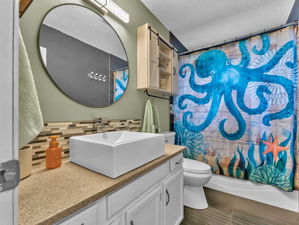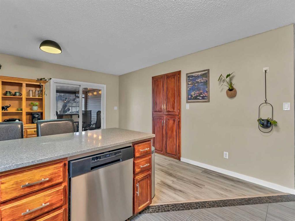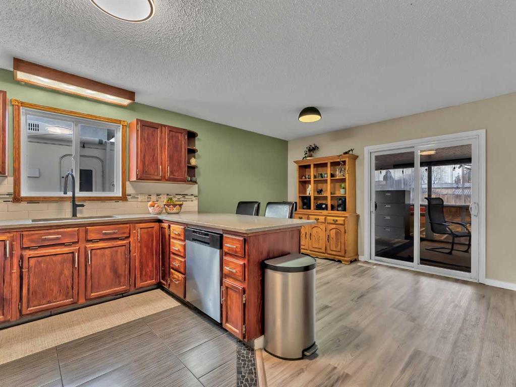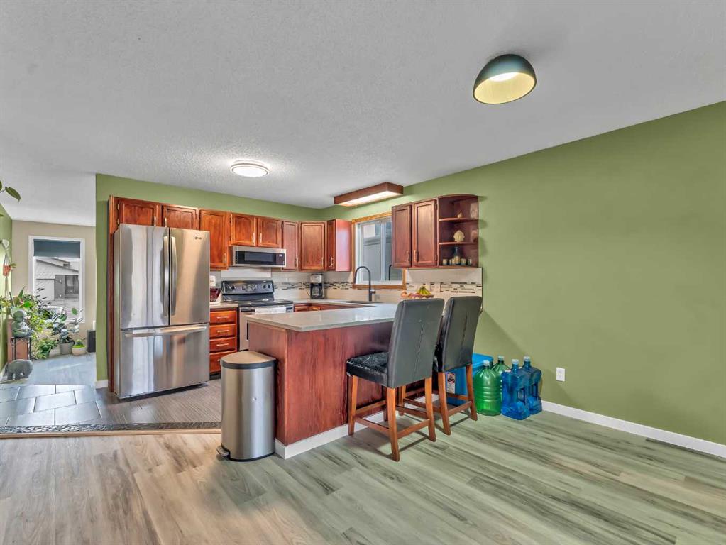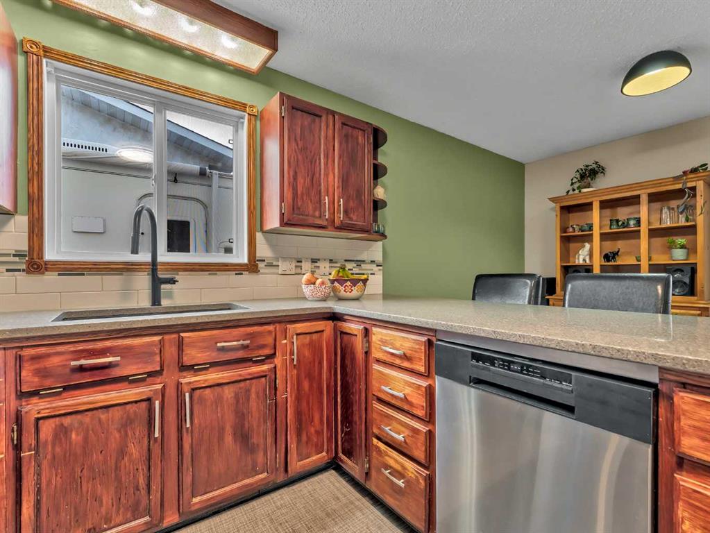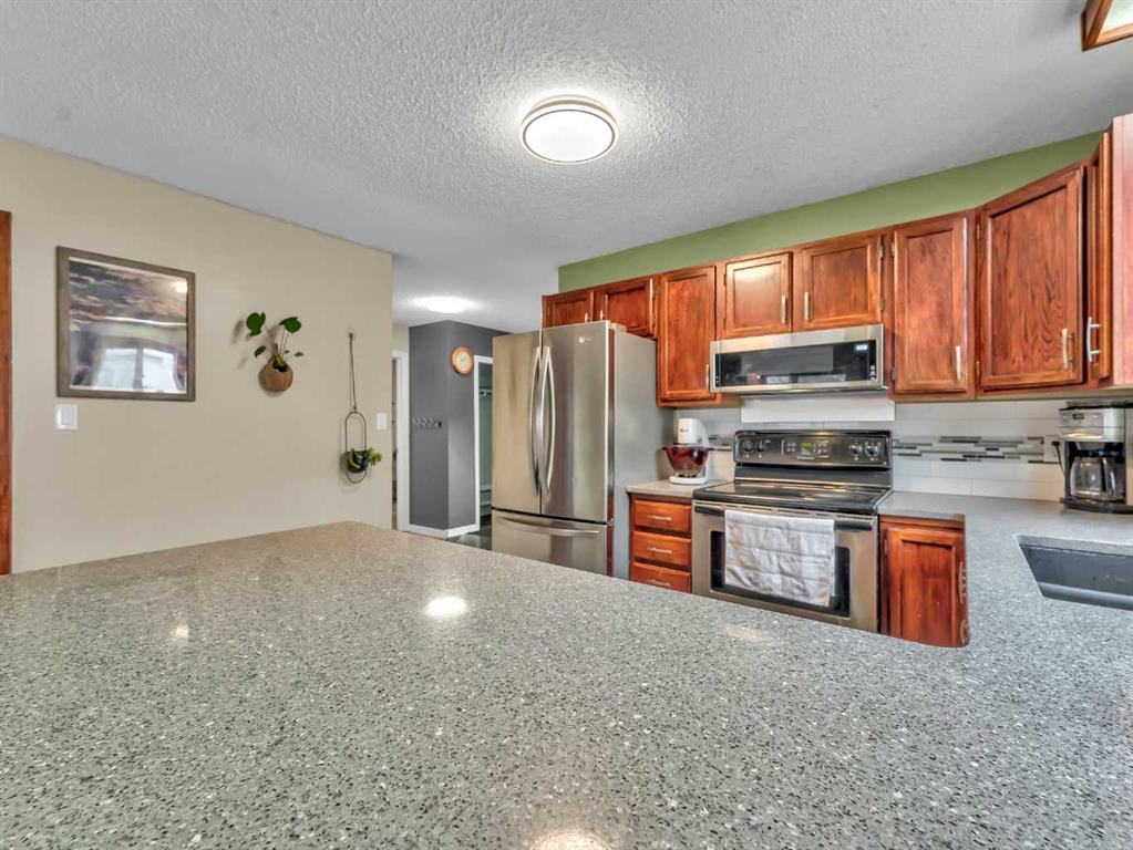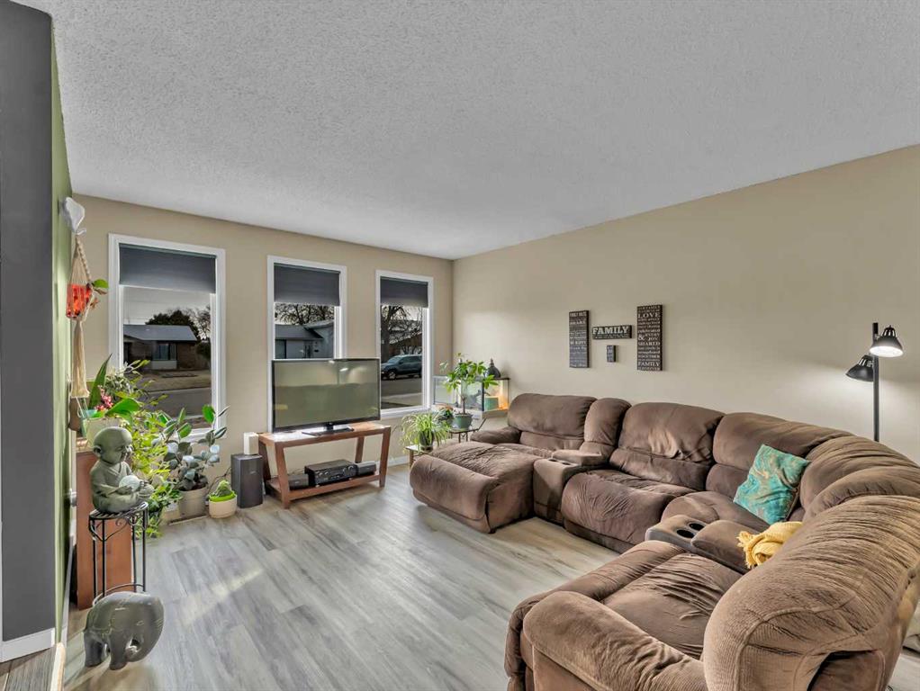 This lovely Redcliff bungalow is truly move-in ready and offers a warm, family-friendly layout you’re sure to love. The main floor features a bright, sunken living room with three large windows and updated laminate flooring. The entry leads into the kitchen and dining area, where you’ll find stainless steel appliances, quartz countertops, modern backsplash and fixtures, plus an eating bar and pantry. This space is perfect for entertaining and opens to a large covered deck and patio. The main level also offers three bedrooms, convenient main-floor laundry, and an updated bathroom. Downstairs, the fully developed basement includes a spacious family room with new laminate flooring and built-in cabinetry, two additional bedrooms, and a 3-piece bath with a tiled shower. Outside, enjoy a large fully fenced yard, RV parking pad, and a heated detached garage. Located within walking distance to parks, schools, and bike paths, this home is ready for you to move in and enjoy. Contact your friendly local neighbourhood REALTOR® today!