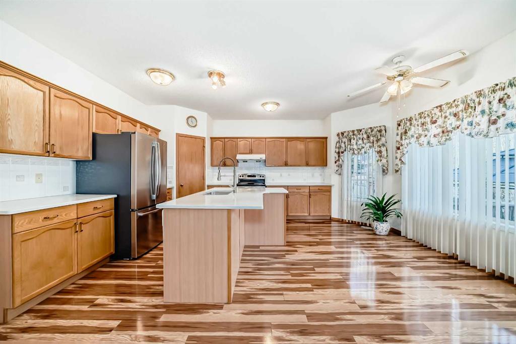 PRICE REDUCED! QUICK POSSESSION IS POSSIBLE! LOCATED ACROSS FROM THE LAKE!! 120 Cove Road – Lakeside Living in The Cove! Nestled directly across from the lake, this spacious and beautifully appointed home offers the perfect blend of comfort, convenience, and lifestyle. With just a short stroll or bike ride to Cove Beach and the Dog Park, this location is ideal for nature lovers and active families alike! Property highlights include a generous sized lot with the potential for RV parking! Main Floor Den, perfect for a home office or quiet retreat! Open concept living room & dining room combination with soaring ceilings! Cozy Family Room featuring a gas fireplace! Chef’s Kitchen with island, quartz countertops, stainless steel appliances & rich oak cabinetry! There is also convenient main floor laundry and a two piece powder room for your guests! Upper level comfort include three spacious bedrooms, including a primary suite that will easily fit your king sized bed! Luxurious ensuite with dual sinks, a separate tub, a separate shower and large walk in closet. There is an additional 4-piece bathroom on this level for family or guests! The finished basement includes an expansive Rec Room, ideal for movie nights, games, a home gym or perhaps construct another bedroom or two. There is an additional 4-piece bathroom for added convenience! There is a total over 3000 sq ft of living space and the garage is oversized, measuring 23'7 x 20'5"! Whether you're entertaining, relaxing, or exploring the nearby amenities, 120 Cove Road delivers the lifestyle you've been dreaming of. Click on the 3D virtual tour link for additional information!