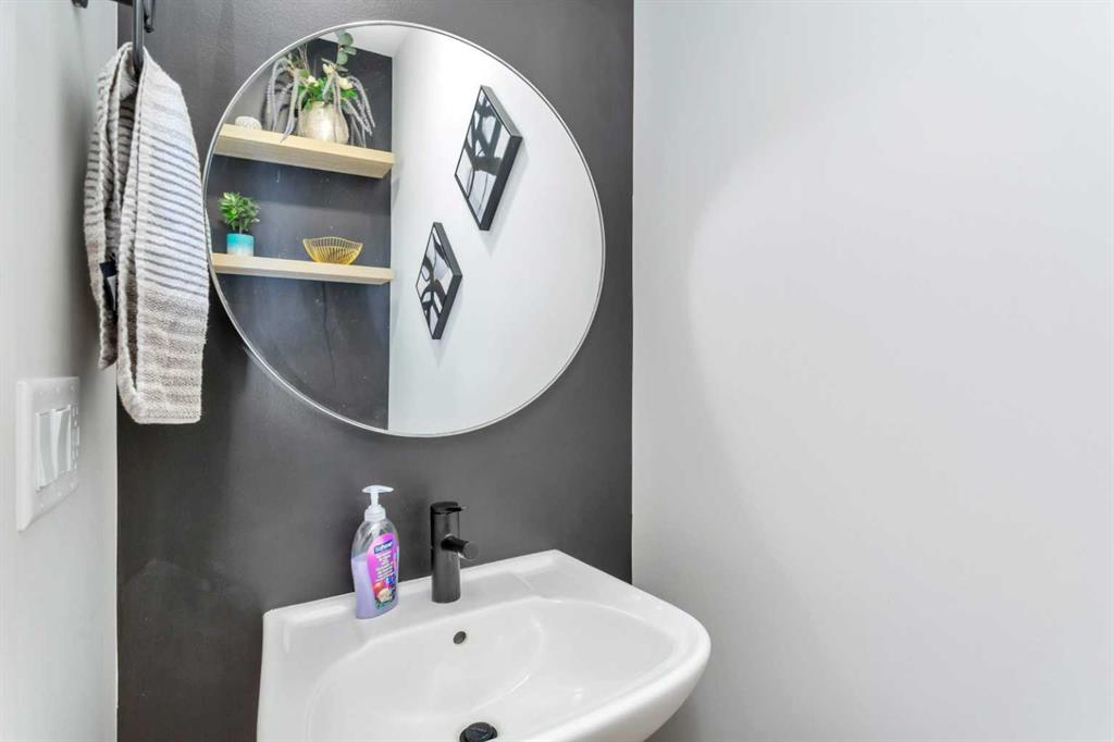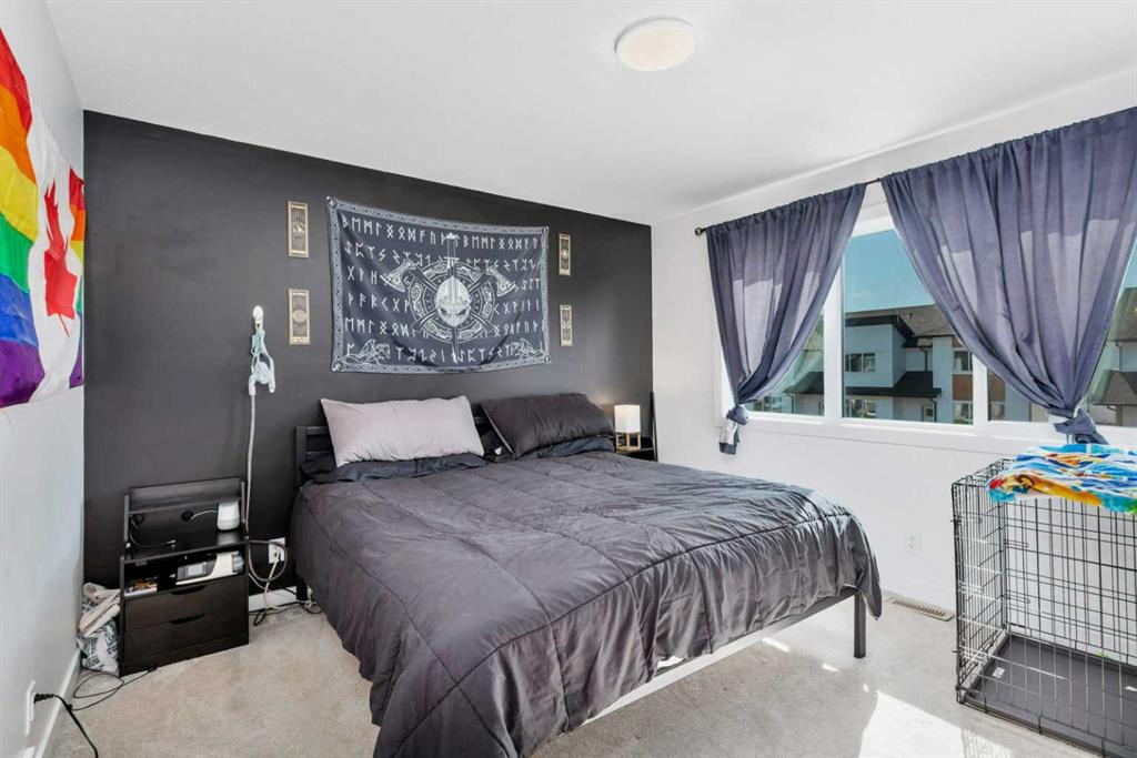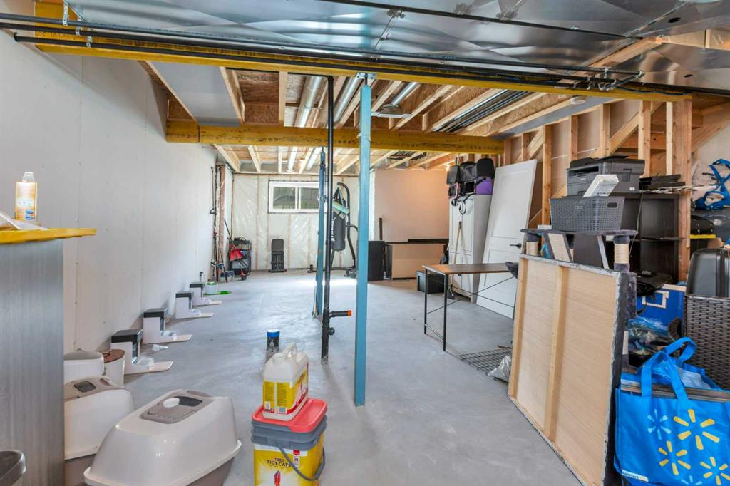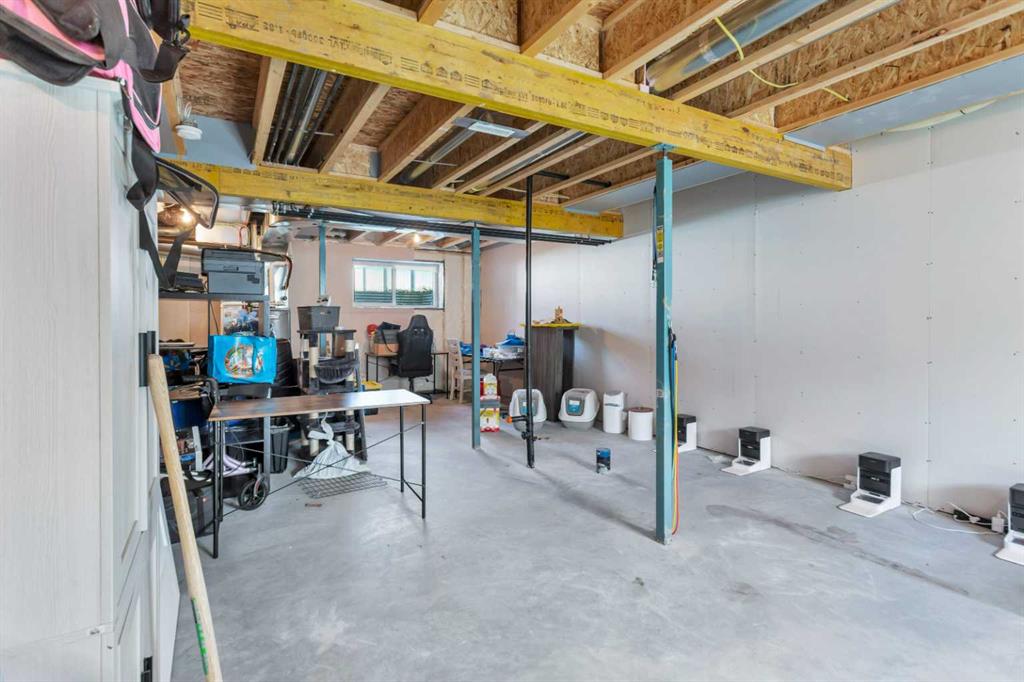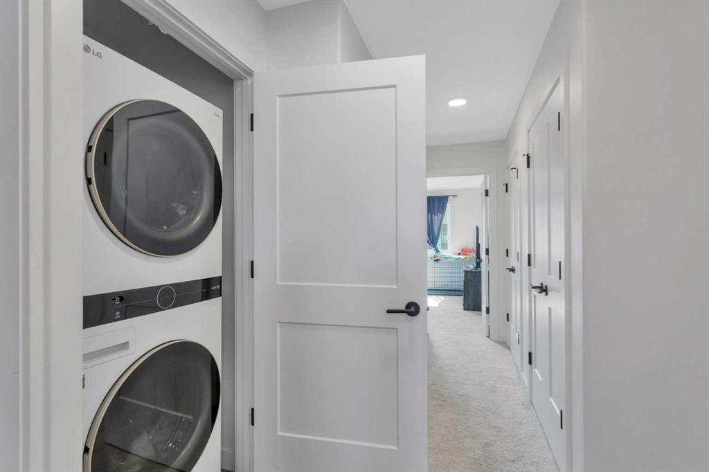 END UNIT with A/C and March 1 possession available. Stylish, spacious, and modern 2-storey townhome in the new community of Iron Gate, offering low-maintenance living and peace of mind with Alberta New Home Warranty still in place. Enjoy your charming 7' x 7' front deck before entering a bright, open-concept main floor filled with natural light from large energy-efficient triple-pane windows. Durable vinyl plank flooring runs throughout the main level, while plush carpet upstairs adds warmth and comfort. The kitchen truly anchors the home with a massive island featuring extended quartz countertops, perfect for stools, homework time, or late-night chats, plus a built-in pantry and four stainless steel appliances. The expansive dining area easily accommodates a full-size table with room to host, and the separate mudroom with a half bath offers practical family functionality with direct access to the east-facing back deck. Outside, enjoy a fully fenced backyard with rear lane access, two parking stalls, and space for a future single detached garage. Upstairs includes a convenient laundry room, two generously sized bedrooms, a full main bathroom, and a primary suite complete with a walk-in closet and 4-piece ensuite. Extra-large hallway closets provide excellent additional storage. The basement is unfinished and ready for your ideas, already plumbed and framed for a future bedroom, bathroom, and rec room, with large windows bringing in great natural light. Central A/C keeps the interior comfortable year-round. Located close to shopping, restaurants, and Highway 20 for quick access in and out of town, this move-in-ready home checks all the boxes for comfort, convenience, and long-term value.