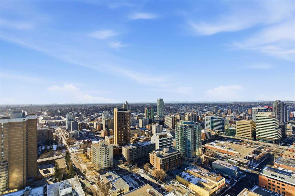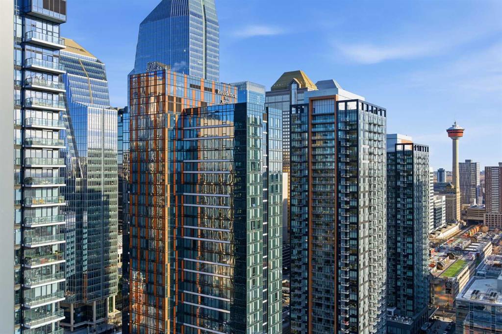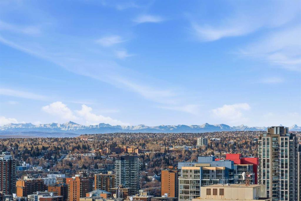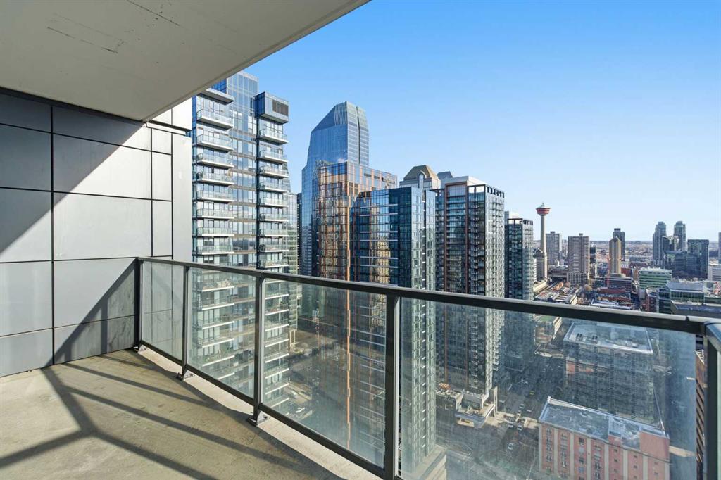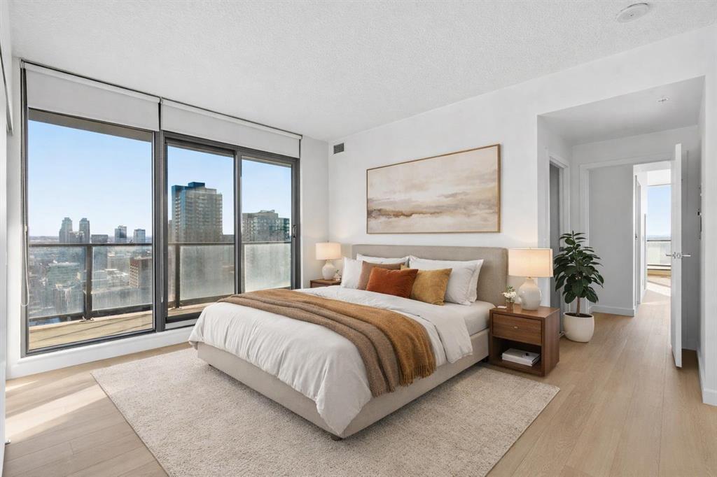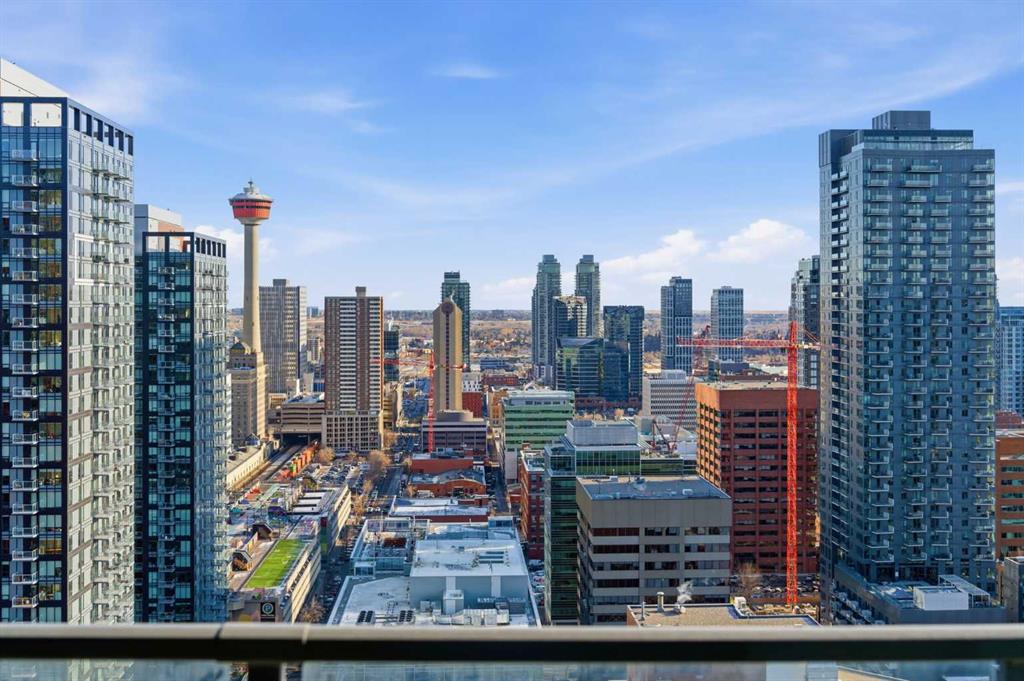 First time on the market and move-in ready! Welcome to this unbelievable sub-penthouse featuring 2 bedrooms, 2 bathrooms, brand new LVP flooring and fresh paint throughout. Perched on the 28th floor in the heart of downtown Calgary, the unobstructed views of the city skyline and of the mountains on the horizon are sure to take your breath away. As soon as you enter, you’ll notice the functional layout and how beautiful, bright and inviting the space feels. The open concept kitchen showcases quartz countertops, GE stainless steel appliances, a top of the line gas range and gas oven, and a stylish breakfast bar. Showered with plenty of natural light, the living and dining areas are complemented by high ceilings, a light colour palette, and south-facing floor-to-ceiling windows. It’s the perfect place to work, relax or host a sophisticated evening with friends and family. Step out onto the first of two balconies to enjoy the amazing cityscape. You’ll find the second balcony tucked away in the spacious primary bedroom, which is complete with California Closet built-ins and a luxurious 4-piece ensuite. Take a moment to contemplate a different perspective of the Calgary Tower from both the primary and second bedrooms. A second 3-piece bathroom, in-suite laundry and a generous coat closet complete the space. Elevate your lifestyle with central A/C, titled underground parking, titled storage, 24/7 fitness centre, an outdoor pool, and a fabulous social room. 6th and Tenth is a well-managed, Airbnb-friendly and pet-friendly building with a welcoming concierge. Amazing opportunity for first-time home buyers, young professionals, or investors! Book your private viewing today!