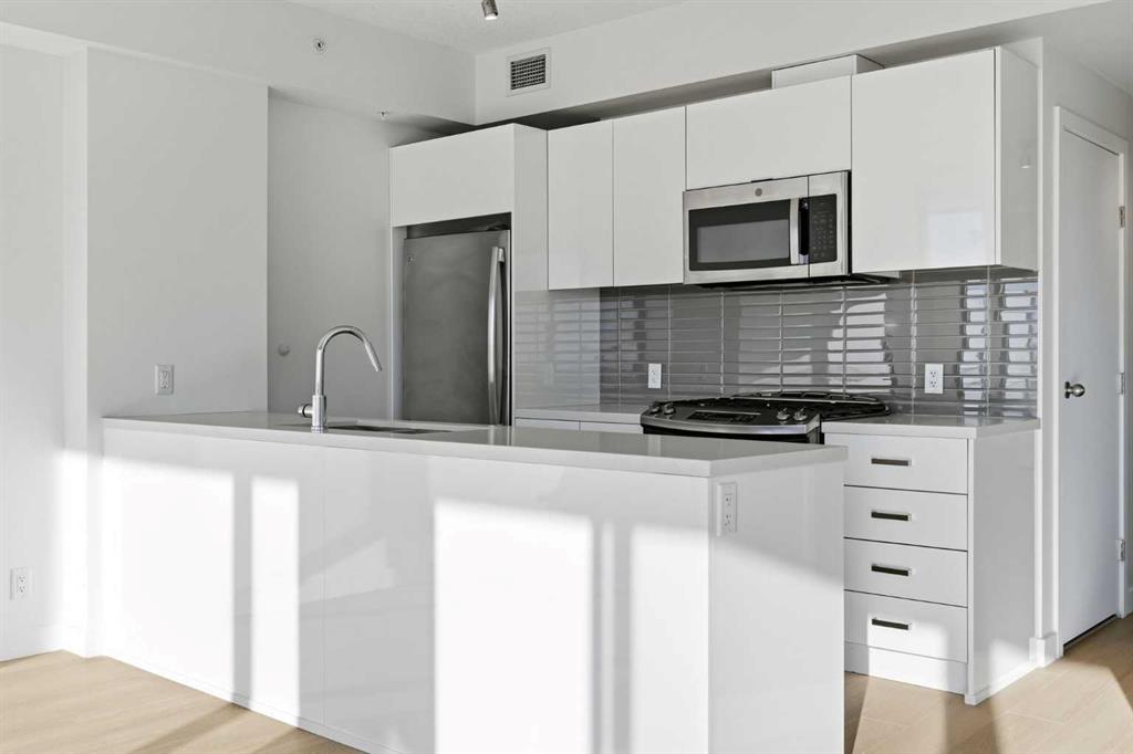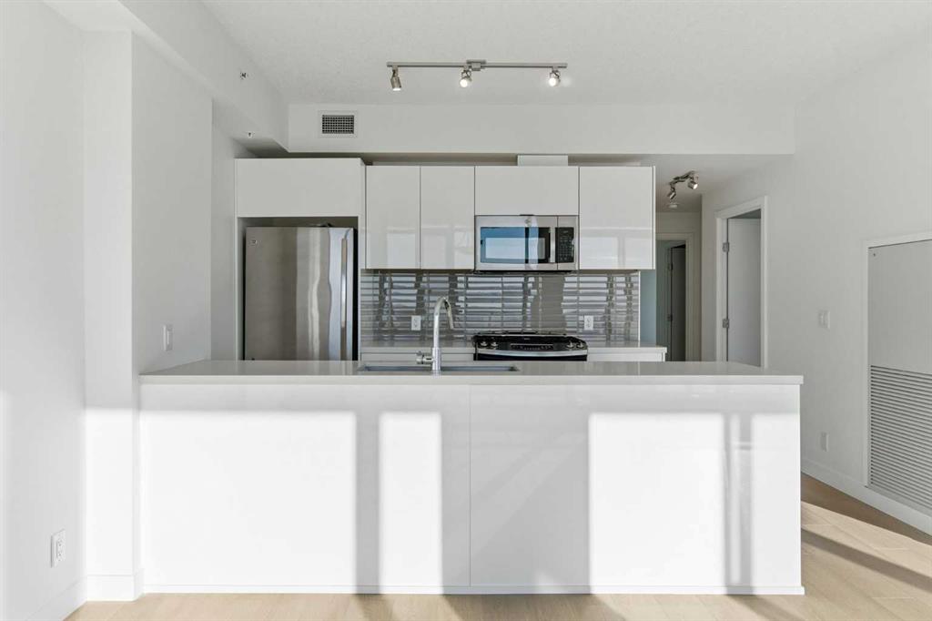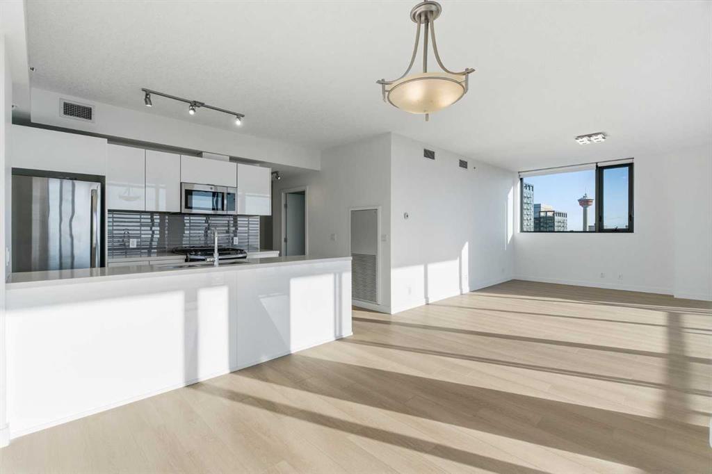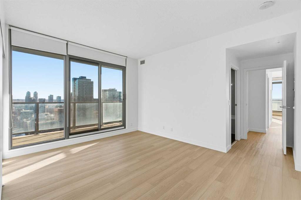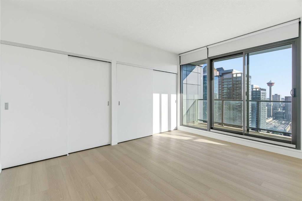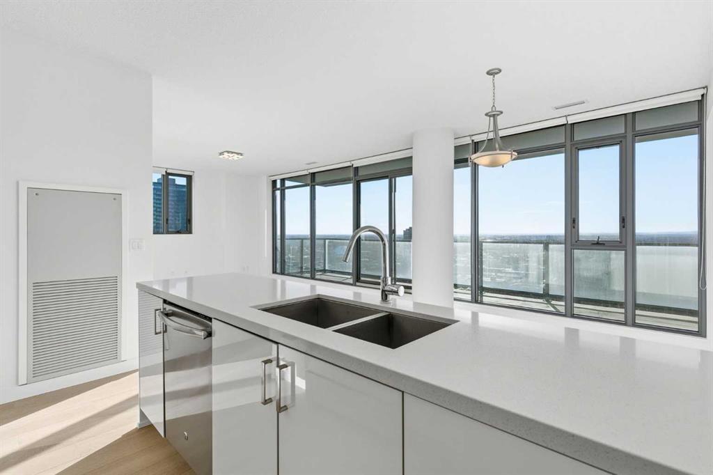 First time on the market and move-in ready! Welcome to this unbelievable sub-penthouse featuring 2 bedrooms, 2 bathrooms, brand new LVP flooring and fresh paint throughout. Perched on the 28th floor in the heart of downtown Calgary, the unobstructed views of the city skyline and of the mountains on the horizon are sure to take your breath away. As soon as you enter, you’ll notice the functional layout and how beautiful, bright and inviting the space feels. The open concept kitchen showcases quartz countertops, GE stainless steel appliances, a top of the line gas range and gas oven, and a stylish breakfast bar. Showered with plenty of natural light, the living and dining areas are complemented by high ceilings, a light colour palette, and south-facing floor-to-ceiling windows. It’s the perfect place to work, relax or host a sophisticated evening with friends and family. Step out onto the first of two balconies to enjoy the amazing cityscape. You’ll find the second balcony tucked away in the spacious primary bedroom, which is complete with California Closet built-ins and a luxurious 4-piece ensuite. Take a moment to contemplate a different perspective of the Calgary Tower from both the primary and second bedrooms. A second 3-piece bathroom, in-suite laundry and a generous coat closet complete the space. Elevate your lifestyle with central A/C, titled underground parking, titled storage, 24/7 fitness centre, an outdoor pool, and a fabulous social room. 6th and Tenth is a well-managed, Airbnb-friendly and pet-friendly building with a welcoming concierge. Amazing opportunity for first-time home buyers, young professionals, or investors! Book your private viewing today!