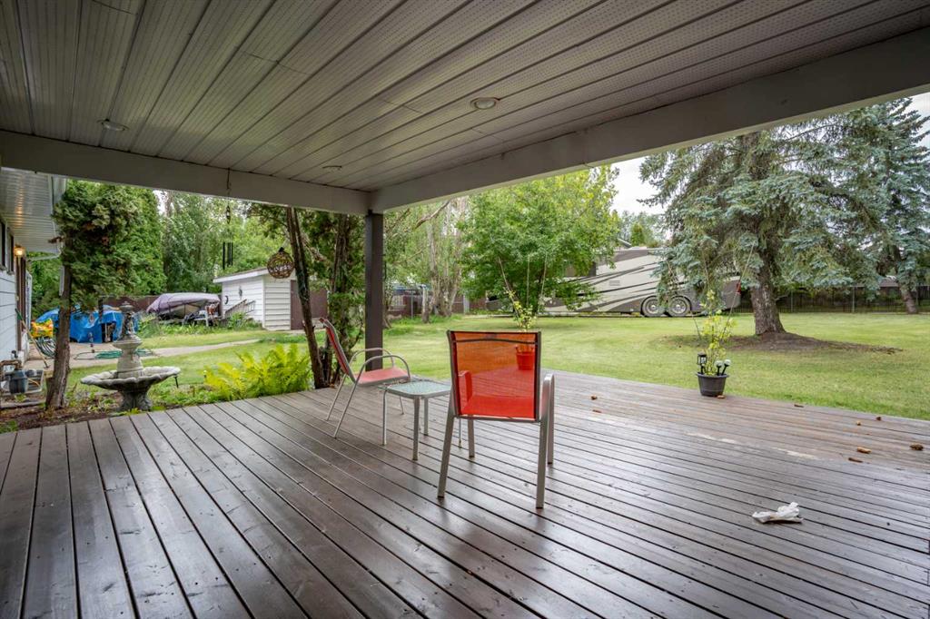 SPACIOUS FAMILY HOME, MASSIVE YARD, FANTASTIC LOCATION! Ideal for large or growing families who love privacy and outdoor living. Classic look and feel, lots to love about the uniqueness of this warm & welcoming home. Lots of space to visit, lounge, relax, etc. Formal dining area off of kitchen - perfect for large dinner parties. Main floor laundry, double attached garage, covered deck. Upstairs offers four bedrooms. Primary comes with en suite. Basement is a comfortable place to enjoy the sauna & bar area. Lots of storage, which is a must. Backyard offers you a covered deck, loads of play space, & all the quiet privacy you could want in town. Property backs green space and is located in a friendly cul-de-sac.