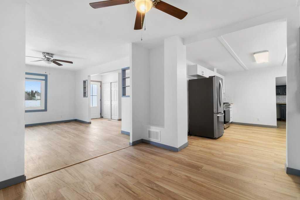 This beautifully updated bungalow offers bright, comfortable living on a large, fenced lot in a welcoming community setting. Painted in crisp white tones, the home feels airy and welcoming, with an open living room that flows nicely into the rest of the space. The kitchen features white cabinetry, stainless steel appliances, a gas stove, and a convenient pantry, creating a functional heart of the home. Vinyl plank flooring, new windows installed in 2025, and updated wiring add modern comfort and peace of mind. The spacious primary bedroom includes a private 4-piece ensuite, with two additional bedrooms located on the main level. The partially developed basement offers added flexibility with one additional bedroom. Major updates include a drilled well completed in 2003 with an iron filtration system, a furnace approximately 10 years old, a roof replaced within the last 5 years, and a tank and field replaced in November 2025. Outside, enjoy the expansive yard with mature fruit trees, full fencing, and a single detached 15 x 24 foot garage. Ideally located close to Wolf Creek Golf Course and the community hall with an outdoor skating rink, this property blends small-town charm with nearby recreation.