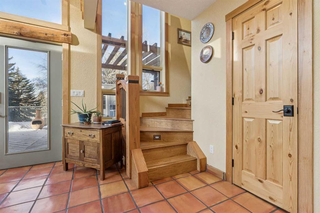 Discover the pinnacle of executive living in this stunning 2,624 sq ft home perched overlooking the serene Varsity Ravine Park. This prime ravine location offers unparalleled tranquility and breathtaking natural views, while being ideally situated on a quiet street in one of Calgary's most sought-after neighborhoods. Step inside to a distinctive floor plan filled with natural light from towering windows adorned with remote-control blinds and custom reflective film—perfect for the west-facing kitchen, dining room, and living room that features a cozy wood-burning fireplace. The heart of the home is the extensively updated kitchen, boasting a large island with a built-in chopping block, gas stove, wine fridge, and newer stainless-steel appliances. Extensive updates include custom built-in cabinetry throughout, enhancing both style and functionality. The upper level welcomes you to a luxurious primary retreat complete with a spacious walk-in closet and a spa-like ensuite featuring a double sink, heated floors, and a no-step walk-in shower with elegant glass block wall. The upper level contains an additional bedroom, and a convenient den overlook the living space below, offering inspiring ravine vistas. The main level provides flexibility with a large recreation room and a bright breakfast nook, ideal for everyday living or entertaining. The lower level features a spacious bedroom with a walk-in closet and built-in storage, plus a 4-piece bathroom. Outdoor living is effortless with a low-maintenance backyard featuring multi-level decks, an outdoor kitchen, and a storage shed backing directly onto the ravine—your private oasis for relaxing and entertaining. The front of the home offers a cozy sitting area and a large driveway leading to an oversized single garage. This exceptional property is perfectly positioned close to the University of Calgary, Market Mall, Foothills Hospital, and just a short walk to the Dalhousie LRT station—combining peaceful ravine seclusion with unbeatable urban convenience. Truly a must see to appreciate the pride of ownership.