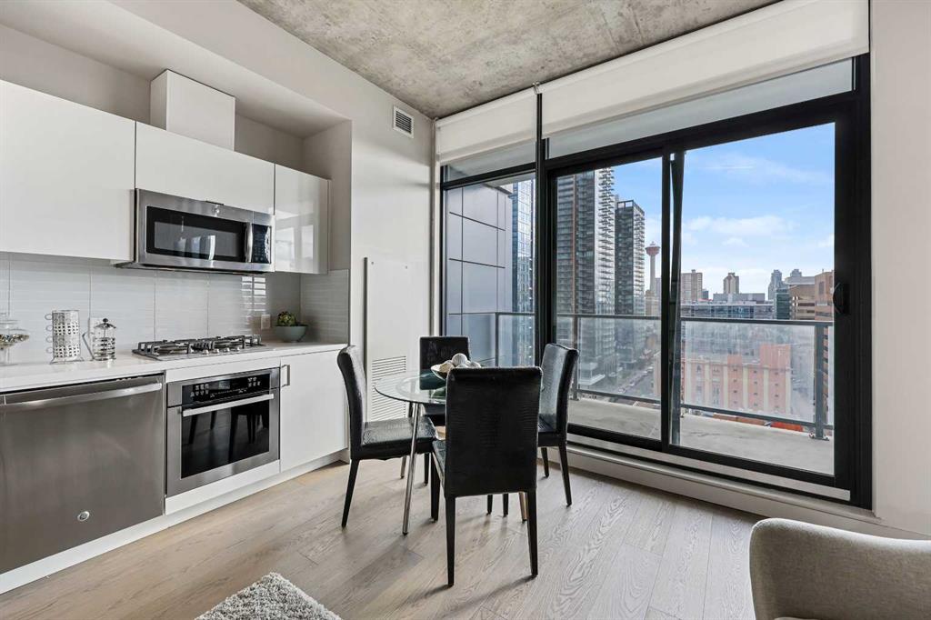 Discover the ultimate in urban living at Calgary's 6th and Tenth, ideally located in the heart of the vibrant Beltline district. This striking high-rise combines sleek, modern design with an unbeatable location, making it an exceptional opportunity for both homeowners and investors. With Calgary’s condo market experiencing an impressive 18% year-over-year growth—and no land transfer tax—this property offers a compelling value proposition. Unit 1207 is a thoughtfully designed 415 sq ft one-bedroom, one-bathroom condo situated on the 9th floor. Its east-facing orientation captures breathtaking views of the iconic Calgary Tower and the downtown skyline. Floor-to-ceiling windows fill the space with natural light, creating a warm and inviting atmosphere throughout the home. The interior showcases a modern-industrial aesthetic, featuring exposed 9-foot concrete ceilings and walls that add a distinctive edge to its contemporary style. Despite its compact size, the unit is remarkably functional, with every square foot optimized for comfort and usability. Central air conditioning ensures year-round climate control, adding to the overall sense of ease and livability. Residents of 6th and Tenth enjoy access to a suite of premium amenities, including a state-of-the-art fitness center, an expansive outdoor terrace with a swimming pool, and a stylish shared kitchen and party room—perfect for entertaining or relaxing with friends. The building also allows short-term rentals such as Airbnb and Vrbo, offering additional flexibility and income potential for investors or part-time residents. Whether you’re searching for a chic urban residence or a smart investment property, Unit 607 delivers exceptional value in one of Calgary’s most desirable neighborhoods. Don’t miss your chance to own a piece of this dynamic and fast-growing urban landscape. Contact your real estate professional today to learn more about this remarkable opportunity.