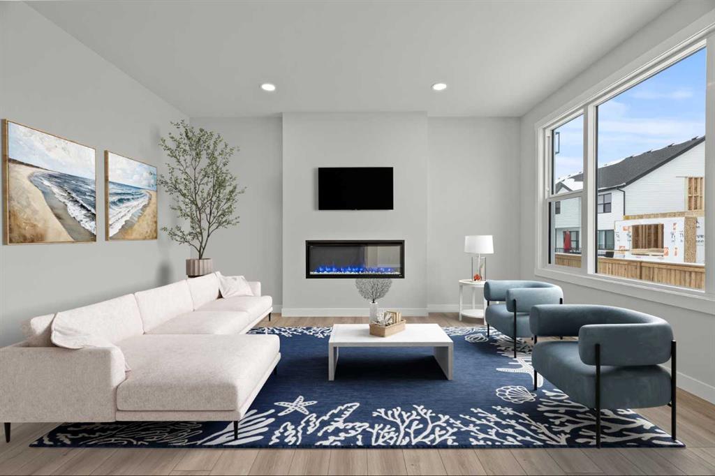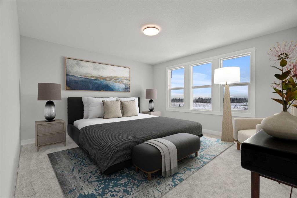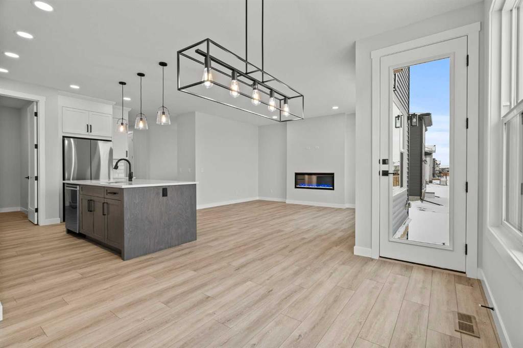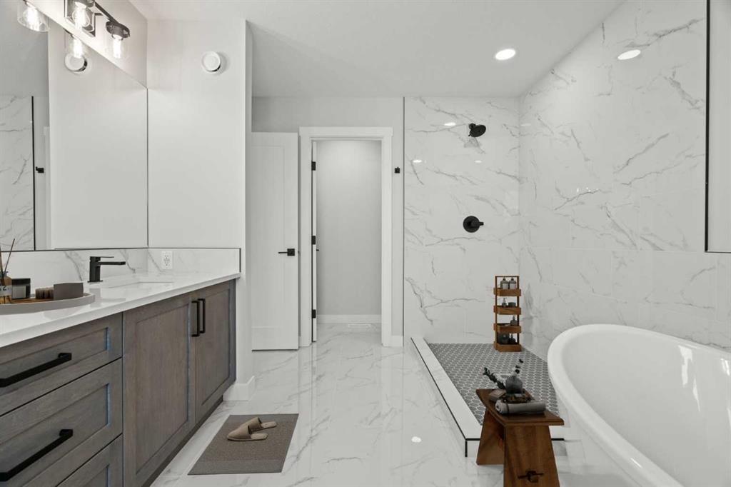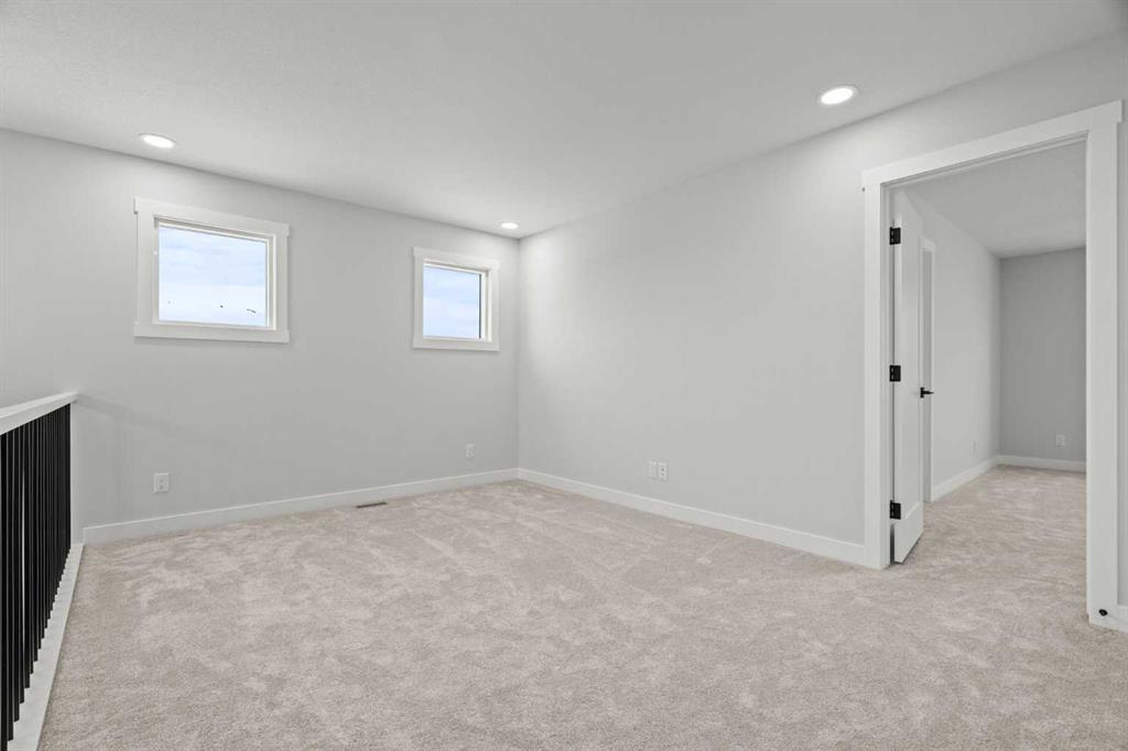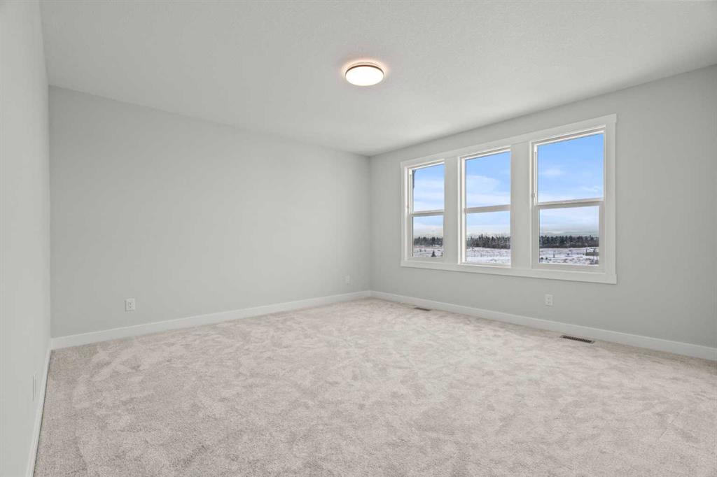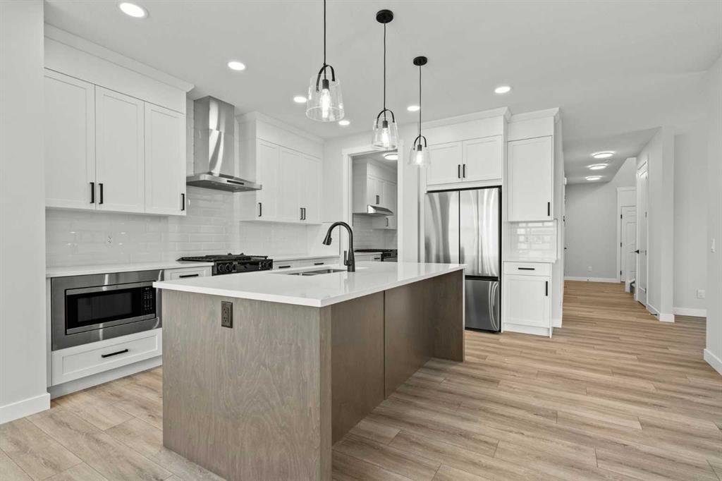 Welcome to 298 Kinniburgh Loop – 3,807 SQFT of living space on a beautiful walkout lot with incredible mountain views. This Golden Homes masterpiece offers 6–7 bedrooms, 5 full bathrooms, double primary, finished basement, wet bar, side entrance, spice kitchen, and exceptional craftsmanship throughout. As you enter, you’re greeted by a grand open-to-below foyer, setting the tone for the luxury and spaciousness found in every corner of this home. The main floor features a full bedroom with direct access to a 3-piece bathroom with a standing shower — perfect for guests or multigenerational living. You’ll also find a office, which can easily serve as another bedroom if needed. At the rear of the home, the layout opens into a bright and inviting living space, featuring a large living room with an electric fireplace and oversized triple-pane windows that flood the space with natural light. The gourmet kitchen is a showstopper, equipped with high-end Samsung stainless steel appliances, quartz countertops, full-height custom cabinets, black hardware, an oversized island, and premium finishes throughout. For everyday convenience, the home also includes a fully equipped spice kitchen. Upstairs, you’ll find two primary bedrooms, each with its own ensuite and walk-in closet. The main primary suite offers a large 5-piece ensuite with an enclosed toilet, full wall tile, and a spacious walk-in closet with upgraded MDF shelving. The second primary bedroom includes a 3-piece ensuite with a standing shower and its own walk-in closet. A third generously sized bedroom also features a walk-in closet and easy access to a nearby 4-piece bathroom. The upper floor is completed with a large bonus room and a full laundry room, finished with quartz countertops, a sink, and tiled flooring. In the fully finished basement, you will find two additional bedrooms, a 3-piece bathroom with a standing shower, a large rec room, and a wet bar with plenty of cabinets, a sink, and a fridge. Walk out of your basement to a concrete patio, with an already built deck above, to enjoy the yard and mountain views. This home backs onto a pond with lots of green space and a wide range of walking and bike paths. As with all Golden Homes builds, this home comes fully loaded with premium standards, including landscaping with full lot grading and loaming, sod to the side entry, and a front-yard tree; true 9' ceilings on both the main floor and basement; tall 8' doors on the main floor; a side entrance; a mosaic tile shower base; oversized triple-pane windows; matte black iron spindle railings and hardware; upgraded MDF shelving; upgraded carpet underlay; tankless hot water heater; smart home features and appliances; oversized quartz kitchen island; gas line to the deck; full-height painted kitchen cabinets; a complete HRV system; an electric fireplace; full-height wall tile in the ensuite shower; metal soft-close drawers; solar panel rough-in; tile flooring in all full bathrooms and laundry room; and gas line to deck.