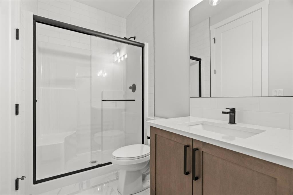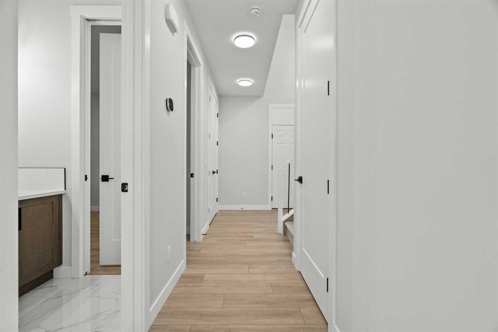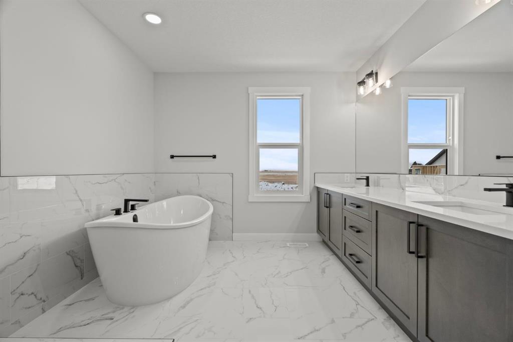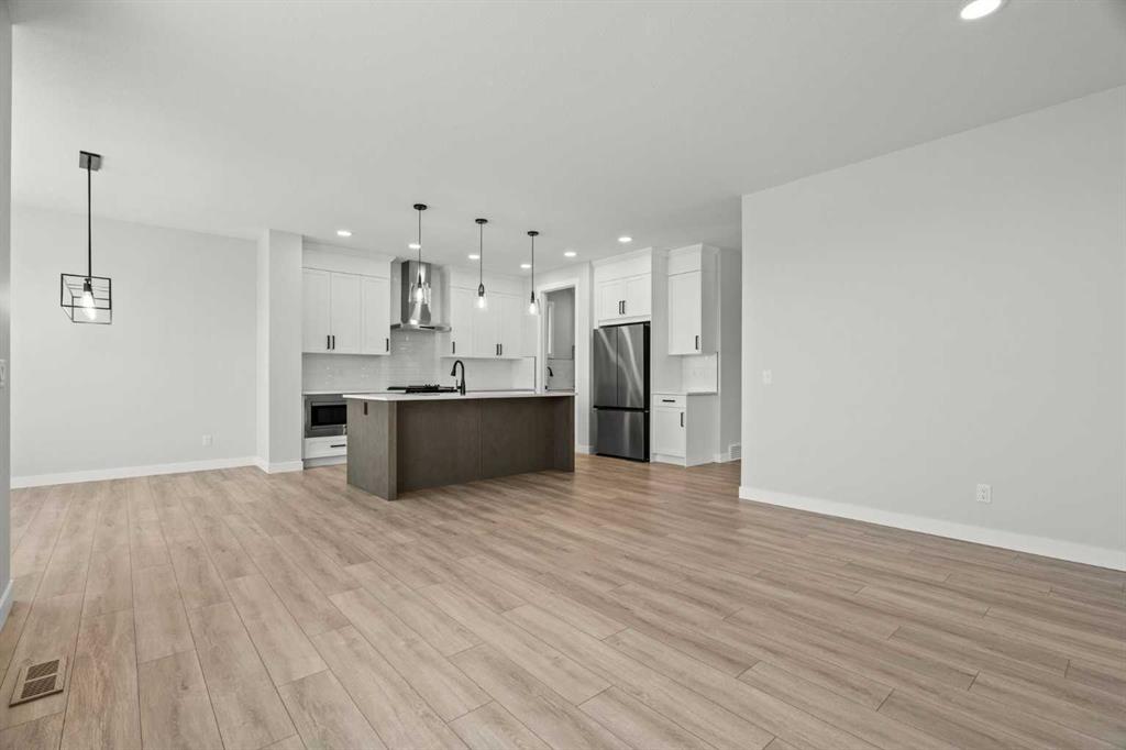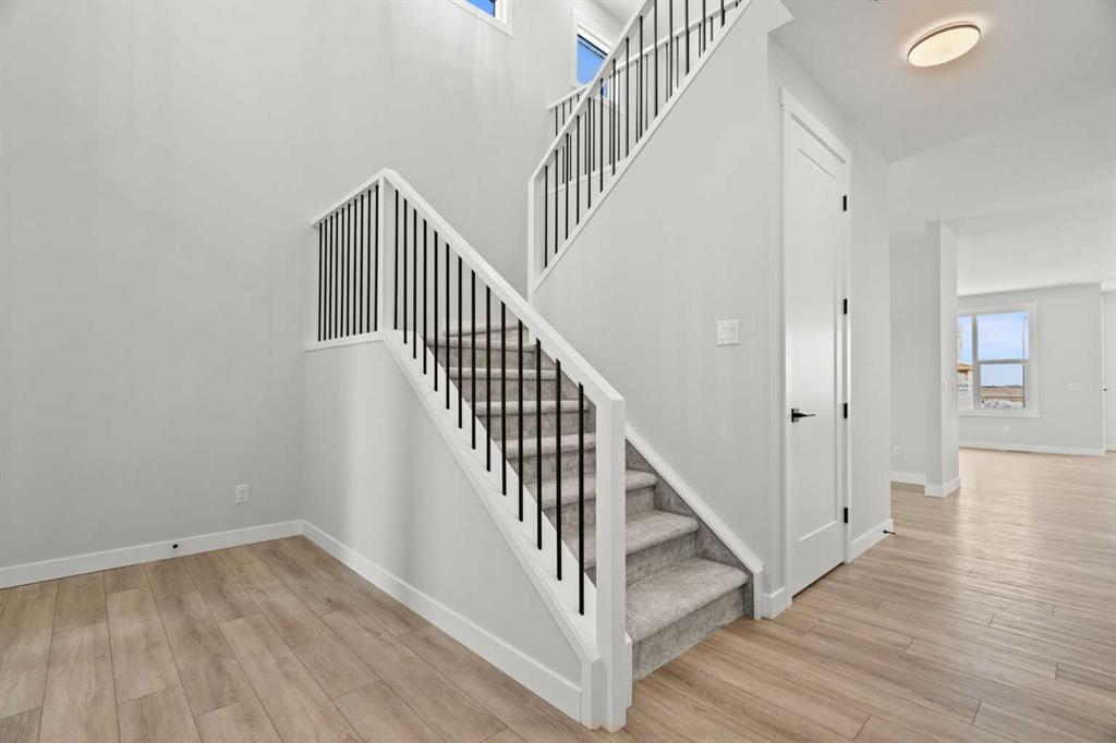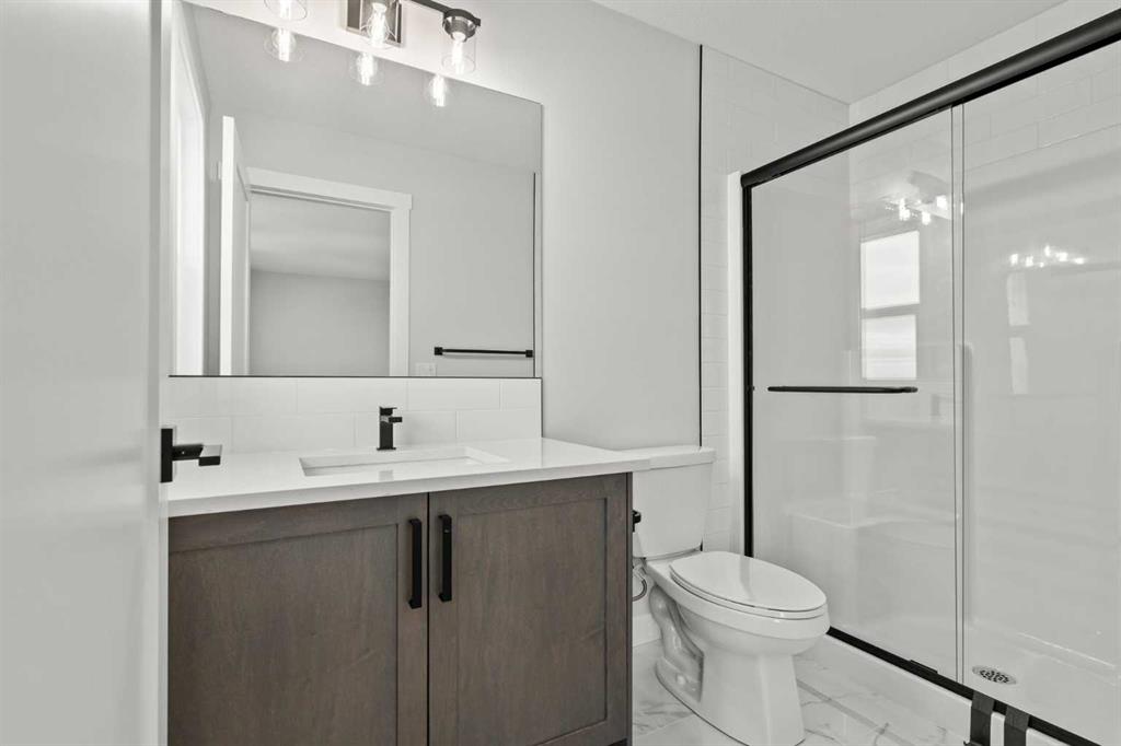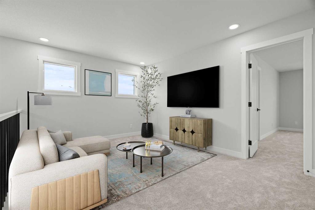Welcome to 298 Kinniburgh Loop – 3,807 SQFT of living space on a beautiful walkout lot with incredible mountain views. This Golden Homes masterpiece offers 6–7 bedrooms, 5 full bathrooms, double primary, finished basement, wet bar, side entrance, spice kitchen, and exceptional craftsmanship throughout. As you enter, you’re greeted by a grand open-to-below foyer, setting the tone for the luxury and spaciousness found in every corner of this home. The main floor features a full bedroom with direct access to a 3-piece bathroom with a standing shower — perfect for guests or multigenerational living. You’ll also find a office, which can easily serve as another bedroom if needed. At the rear of the home, the layout opens into a bright and inviting living space, featuring a large living room with an electric fireplace and oversized triple-pane windows that flood the space with natural light. The gourmet kitchen is a showstopper, equipped with high-end Samsung stainless steel appliances, quartz countertops, full-height custom cabinets, black hardware, an oversized island, and premium finishes throughout. For everyday convenience, the home also includes a fully equipped spice kitchen. Upstairs, you’ll find two primary bedrooms, each with its own ensuite and walk-in closet. The main primary suite offers a large 5-piece ensuite with an enclosed toilet, full wall tile, and a spacious walk-in closet with upgraded MDF shelving. The second primary bedroom includes a 3-piece ensuite with a standing shower and its own walk-in closet. A third generously sized bedroom also features a walk-in closet and easy access to a nearby 4-piece bathroom. The upper floor is completed with a large bonus room and a full laundry room, finished with quartz countertops, a sink, and tiled flooring. In the fully finished basement, you will find two additional bedrooms, a 3-piece bathroom with a standing shower, a large rec room, and a wet bar with plenty of cabinets, a sink, and a fridge. Walk out of your basement to a concrete patio, with an already built deck above, to enjoy the yard and mountain views. This home backs onto a pond with lots of green space and a wide range of walking and bike paths. As with all Golden Homes builds, this home comes fully loaded with premium standards, including landscaping with full lot grading and loaming, sod to the side entry, and a front-yard tree; true 9' ceilings on both the main floor and basement; tall 8' doors on the main floor; a side entrance; a mosaic tile shower base; oversized triple-pane windows; matte black iron spindle railings and hardware; upgraded MDF shelving; upgraded carpet underlay; tankless hot water heater; smart home features and appliances; oversized quartz kitchen island; gas line to the deck; full-height painted kitchen cabinets; a complete HRV system; an electric fireplace; full-height wall tile in the ensuite shower; metal soft-close drawers; solar panel rough-in; tile flooring in all full bathrooms and laundry room; and gas line to deck.
