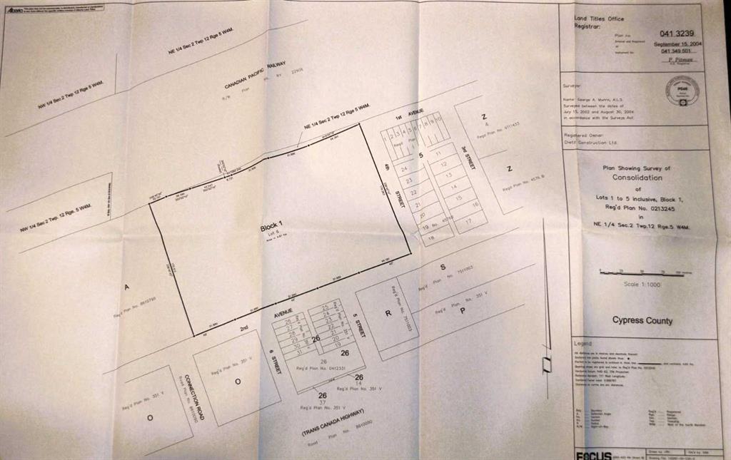 This 11.39-acre property is bare land, zoned HI (Hamlet Industrial) and located behind the MD of Cypress County main office and beside Cypress County storage yard in the Hamlet of Dunmore. It has a great location on 2 Ave with three roads to access the TransCanada Highway. The zoning allows for a multitude of permitted uses as well as discretionary uses for this property.