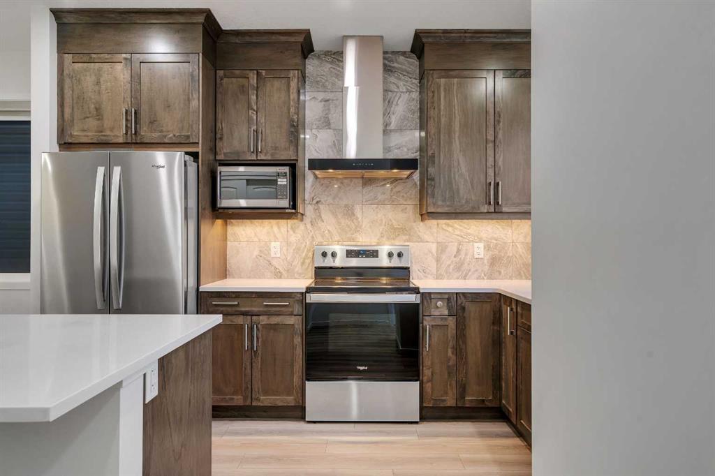 Shows like new! This spacious two-storey property offers over 1844 sq. ft above grade and includes a LEGAL 730 sq. ft, 2-bedroom basement suite, making it ideal for multi-generational living or added income potential. The main level features a bright, open-concept layout with a living room and a well-appointed kitchen complete with central island with seating, quartz counter tops, and pantry. A versatile front flex room provides the option for a home office or main-floor bedroom, and a 3-piece bathroom with walk-in shower completes this level. Upstairs, you’ll find a spacious bonus room, laundry, primary bedroom with walk in closet and ensuite, 2 additional bedrooms and a 4-piece bathroom. The builder-developed basement has a separate entrance and hosts the legal suite, featuring a full kitchen, two bedrooms, a 4-piece bathroom, and in-suite laundry—perfect for extended family or tenants. There is a large deck in the back and off-street parking. Located on a quiet street, this home is close to parks, schools, transit, and shopping, with convenient access to major thoroughfares for easy commuting.