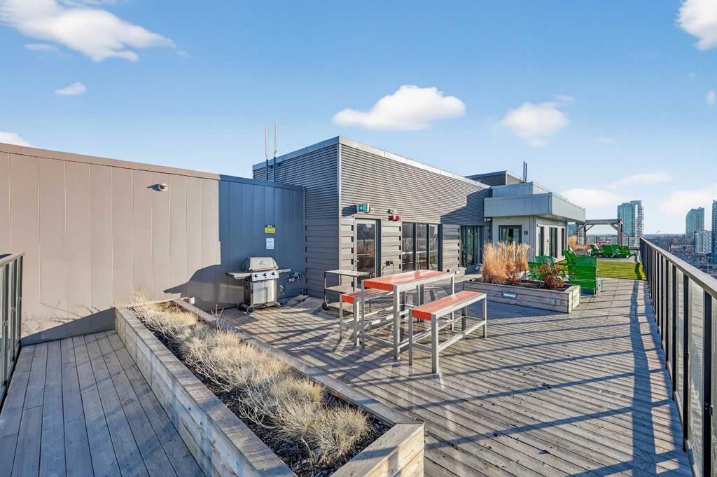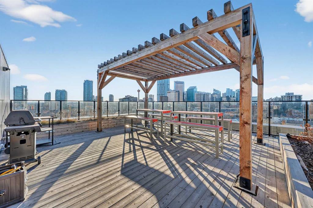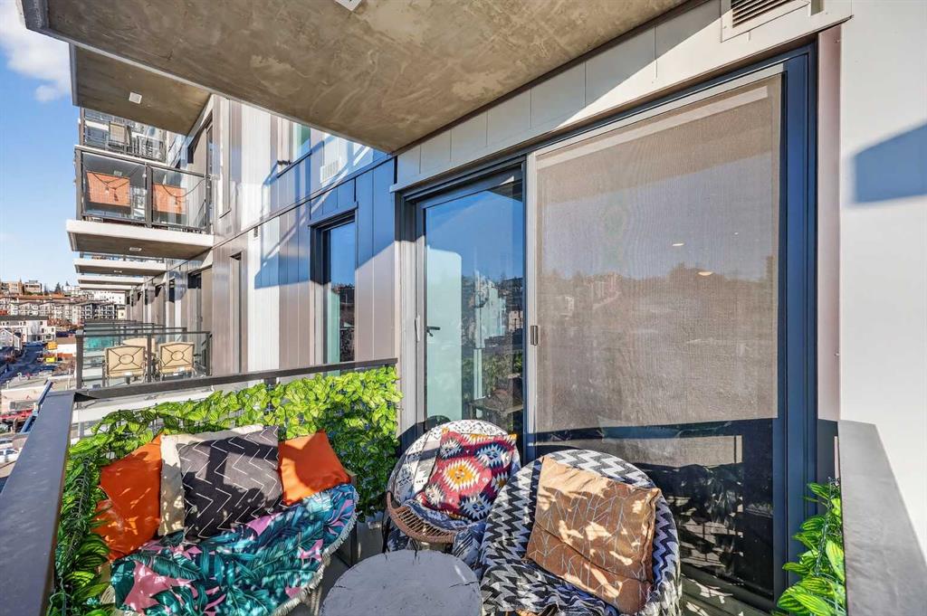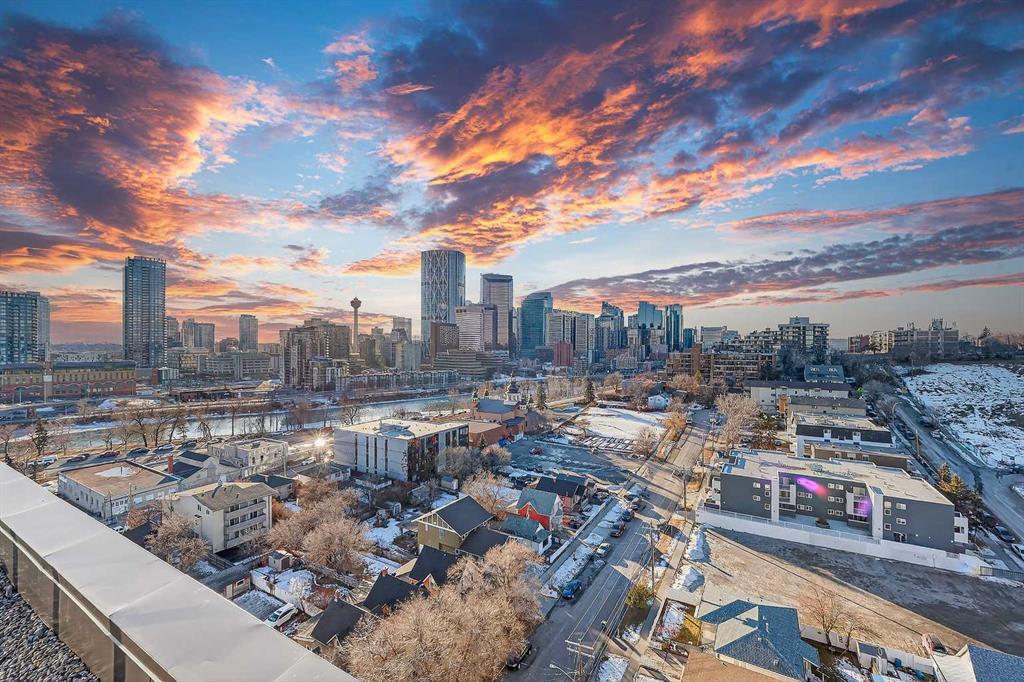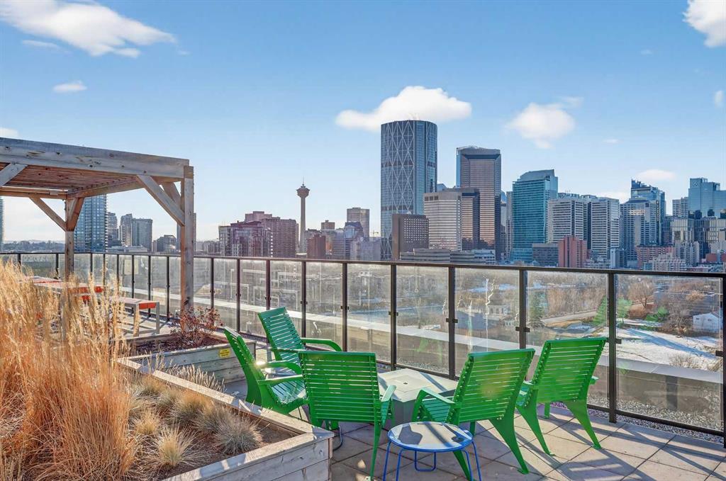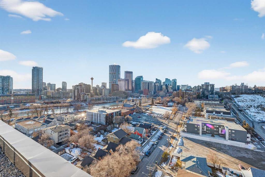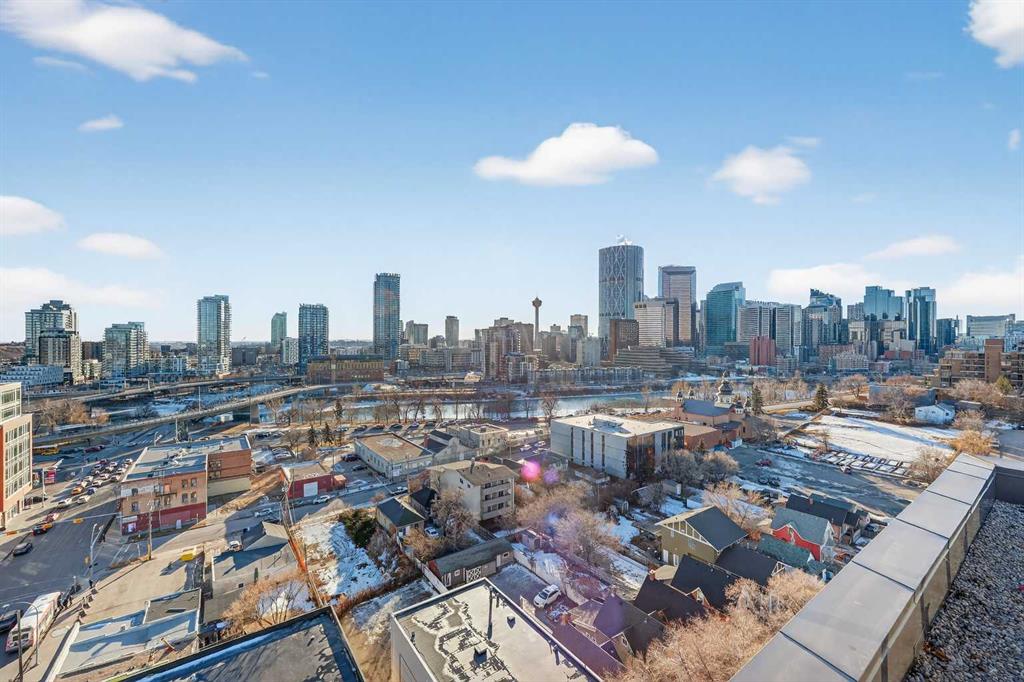 Welcome to ERA by Minto, a modern and AirBnB-friendly building ideally situated between Bridgeland and Crescent Heights. Flooded with natural light, the open-concept design effortlessly unites the sleek kitchen, dining, and living areas and flows onto your private balcony—perfect for morning coffee or evening unwinding. The gourmet kitchen shines with quartz countertops, stainless-steel appliances, a large central island, and designer cabinetry—ready for both daily living and entertaining. Durable vinyl plank flooring, in-suite laundry, and air conditioning ensure year-round comfort, while a titled underground parking stall and dedicated storage locker offer added convenience. Era’s LEED-inspired construction and cutting-edge smart technology elevate your lifestyle with facial-recognition access, one-way video calling, integrated package lockers, community messaging, and a virtual concierge system. Step up to the rooftop patio to enjoy panoramic skyline views, cozy fire pits, BBQ stations, and indoor workspaces—ideal for gatherings or remote work. View of the Bow River, Bridgeland LRT station, river pathways, parks, upbeat restaurants, boutique shops, Calgary Tower and downtown Calgary, this exceptional residence embodies the best of inner-city living. This is your your chance to call Era home—schedule your private tour today!