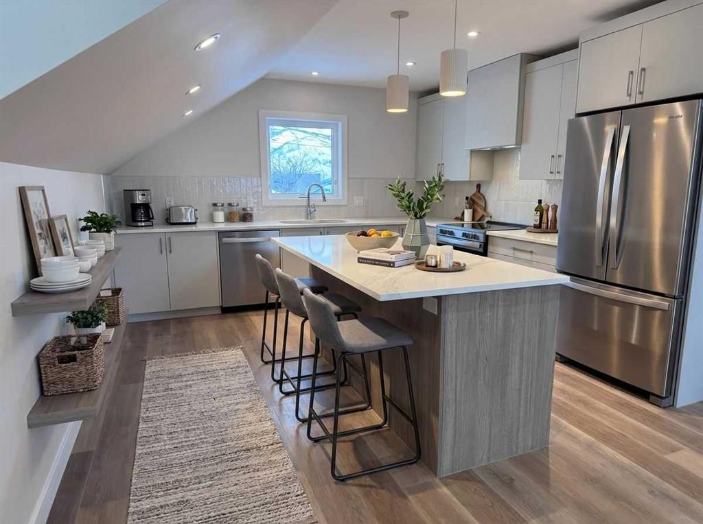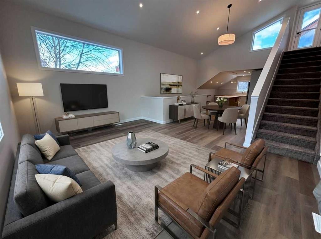 Click brochure link for more details. Built in 2025, this newly completed five bedroom duplex features a beautiful open concept living space with vaulted ceilings and an abundance of natural light. The many windows offer excellent views of the surrounding mountains. In addition, this modern home has a south facing rooftop deck with stellar views down the south valley. This space is excellent for morning coffee, afternoon barbecue and entertaining friends. The primary unit of this duplex has three bedrooms, two full bathrooms and laundry on the main floor. The second floor has a large kitchen, dining room and living room as well as a powder room. The home has a fully developed secondary legal suite with a full kitchen, two bedrooms, one bathroom, living room, laundry and separate entrance. This fully contained legal suite is perfect for additional revenue, either as a short term or long term rental. The property offers two large parking stalls and has the potential for a garage or garage suite (pending approval of permits). Some photos have been virtually staged.
