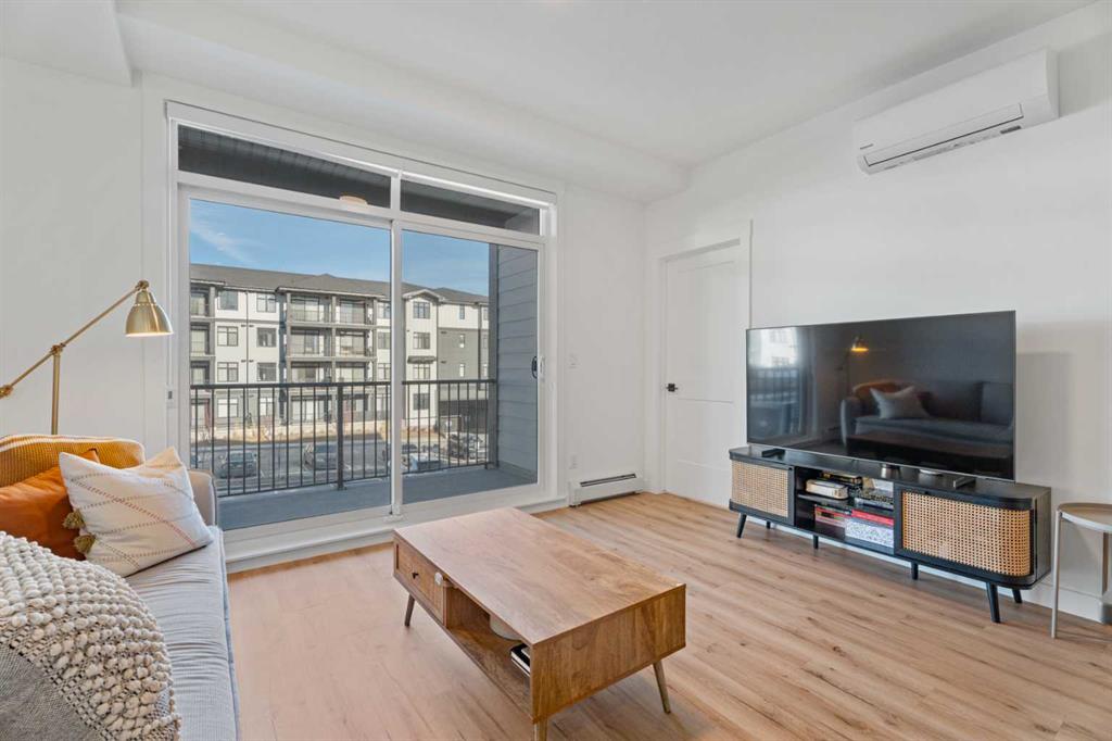 MOVE-IN READY! Discover the perfect balance of style and functionality in this impeccable condo built by award-winning Logel Homes. The unit remains under the first-year coverage period, providing 100% coverage and peace of mind. Located in the Sage Walk development, this unit offers over 700 sq. ft. of well-planned living space with two bedrooms, including a spacious primary suite, and two full bathrooms, plus a private patio for outdoor relaxation. The 9-foot ceilings create an open, airy feel throughout. Over $24,000 in upgrades enhance both style and comfort, including: Luxury Vinyl Plank (LVP) flooring throughout the unit, oversized kitchen sink, cabinets extended all the way to the ceiling with upgraded hardware, air conditioning, taller bathroom countertops, an extra closet in the primary suite, tiled shower in the ensuite bathroom, full-height tile in the secondary bathroom, and blinds added throughout the home. The gourmet kitchen features quartz countertops, stainless steel appliances, including a French door fridge and smooth-top range, and a tile backsplash extending under the cabinets. Designed for quiet living, the building features superior soundproofing, with a lightweight concrete topping separating the floors. Additional highlights include in-unit laundry and a titled, underground parking stall. Conveniently located near Shaganappi Trail and Sage Hill Blvd, this condo combines thoughtful upgrades, modern finishes, and a prime location with competitive condo fees, making it a rare opportunity in a highly sought-after community.