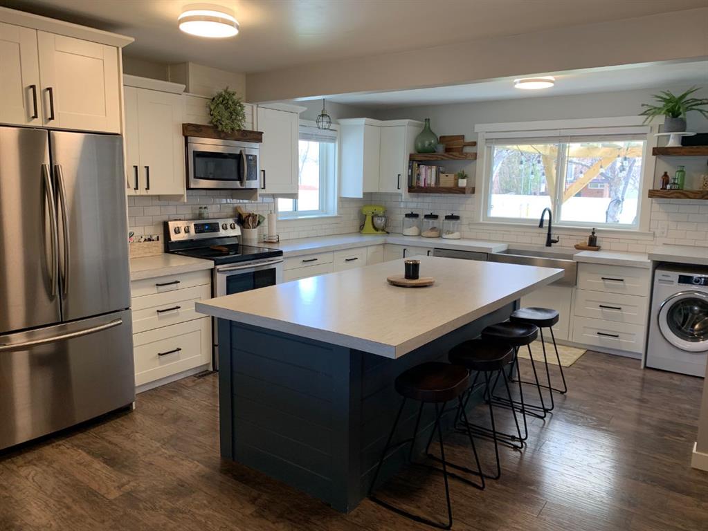 Do not miss this opportunity to own a revenue property on the south side of Lethbridge featuring an illegal suite. The main level offers 3 bedrooms and 1 bathroom, a spacious living room, and a large kitchen with a beautiful dining area, kitchen island, pantry, and its own laundry conveniently located in the kitchen. The lower level was completely renovated in 2018 into an illegal suite, with permits pulled for electrical, plumbing, and framing. The suite offers two bedrooms and one bathroom, along with a kitchen and dining area, a spacious family room, and its own laundry located in the utility room. It also features a separate entrance at the back of the home. Numerous upgrades have been completed to the property, including new windows in 2018 and a new fence and pergola added in 2020. The property features a fully fenced yard with a garden and pergola, creating an ideal space for entertaining. A single car garage is also included and is currently being used as a storage shed, but with upgrades to the garage door it could be functional as a garage again. There is lots of parking, with three parking stalls at the rear of the property, room for two vehicles on the front driveway, and additional off street parking.