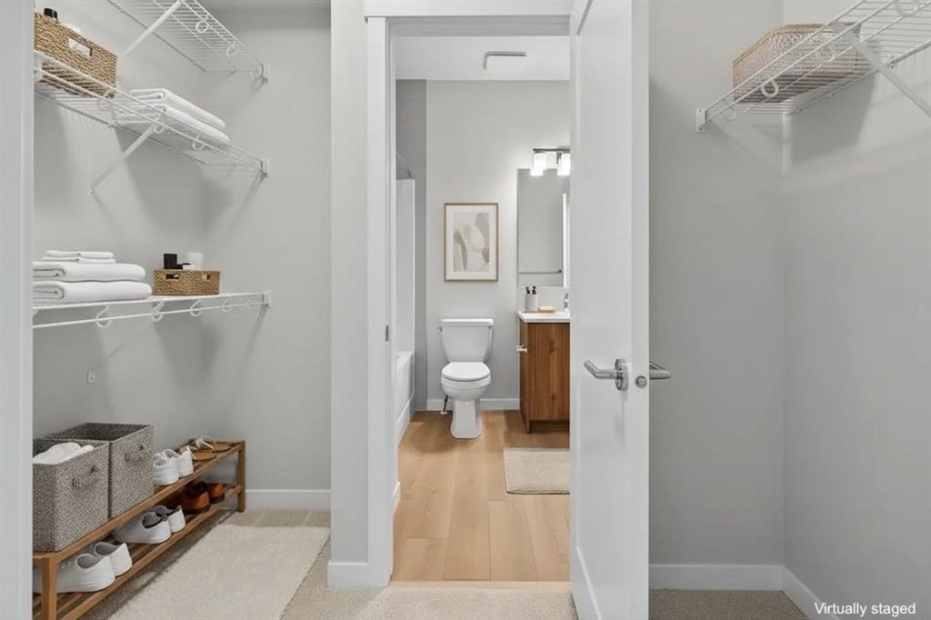 WELCOME TO SONOMA IN BELMONT! This BRAND NEW/ NEVER OCCUPIED 2-bedroom, 2-bathroom townhome showcases a California-inspired design that perfectly balances modern style with timeless elegance. Bathed in natural light, this bright and spacious south-facing home offers approximately 1,150 sq. ft. of thoughtfully designed living space. The main level features a generous living room with large windows overlooking your sunny private patio—ideal for relaxing or entertaining. The adjacent dining area seamlessly connects to the chef-inspired kitchen, complete with quartz countertops, modern cabinetry, ample storage with dual pantries, energy-efficient stainless steel appliances, and wide-plank LVP flooring throughout. Upstairs, you’ll find two well-sized bedrooms, including a primary retreat with a walk-through walk-in closet and a stylish cheater ensuite. Convenient upper-level laundry adds to everyday ease. Enjoy year-round covered parking with direct access to the unit for ultimate convenience. Across your front door, your guests will find many visitor stalls. Located in the vibrant community of Belmont and built by 16-time Builder of the Year, Morrison Homes, this neighbourhood offers connected pathways, parks, playgrounds, and nearby shopping. With quick access to Stoney Trail and Macleod Trail, commuting is effortless. Spend weekends enjoying local attractions such as Spruce Meadows, or cheering on Cavalry FC at ATCO Field, just minutes away.