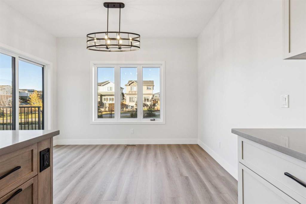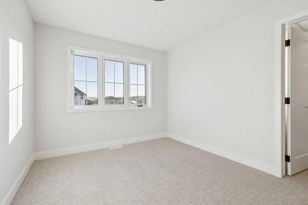 AMAZING NEW PRICE = UNBEATABLE VALUE! On an Premium Green Space Lot!!! BRAND NEW AND MOVE IN READY! Discover exceptional craftsmanship and modern living in this stunning 1,820 sq. ft. two-storey home located in the sought-after community of Greystone, Cochrane. Built by R Space, a trusted local builder known for superior quality and attention to detail, this home offers timeless design and enduring value. West Facing Back Yard! Located on a quiet street and backing onto a lovely greenspace/ walking path this property is truly one that cant be missed. The striking monotone exterior is fresh and modern sure to set this this home apart from all the neighbors. Step inside to find an open-concept main floor filled with natural light, featuring 9-foot ceilings, solid wood cabinetry, and beautiful, high-end appliances. Every detail has been thoughtfully selected — from the solid wood railings and built-in closets to the 200-amp electrical service and solar power rough-in for future efficiency. Upstairs, enjoy a spacious central bonus room with warm wood accents and elegant pass-through natural light. The primary suite is a true retreat, complete with a large walk-in closet and a luxurious tiled shower. Two additional bedrooms provide generous space for family or guests. The OVERSIZED GARAGE, is fully insulated and drywalled offering extra height and storage potential — perfect for all your vehicles and gear. Located just steps from the Bow River, walking paths, parks, playgrounds, pickleball courts, shopping, and the recreation center, Greystone offers the best of community living right at your doorstep. This brand-new home comes with a Certified New Home Warranty for your peace of mind and is ready for immediate possession. Come experience this exceptional home and vibrant community for yourself — book your private tour today!