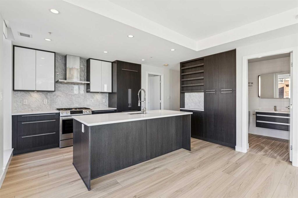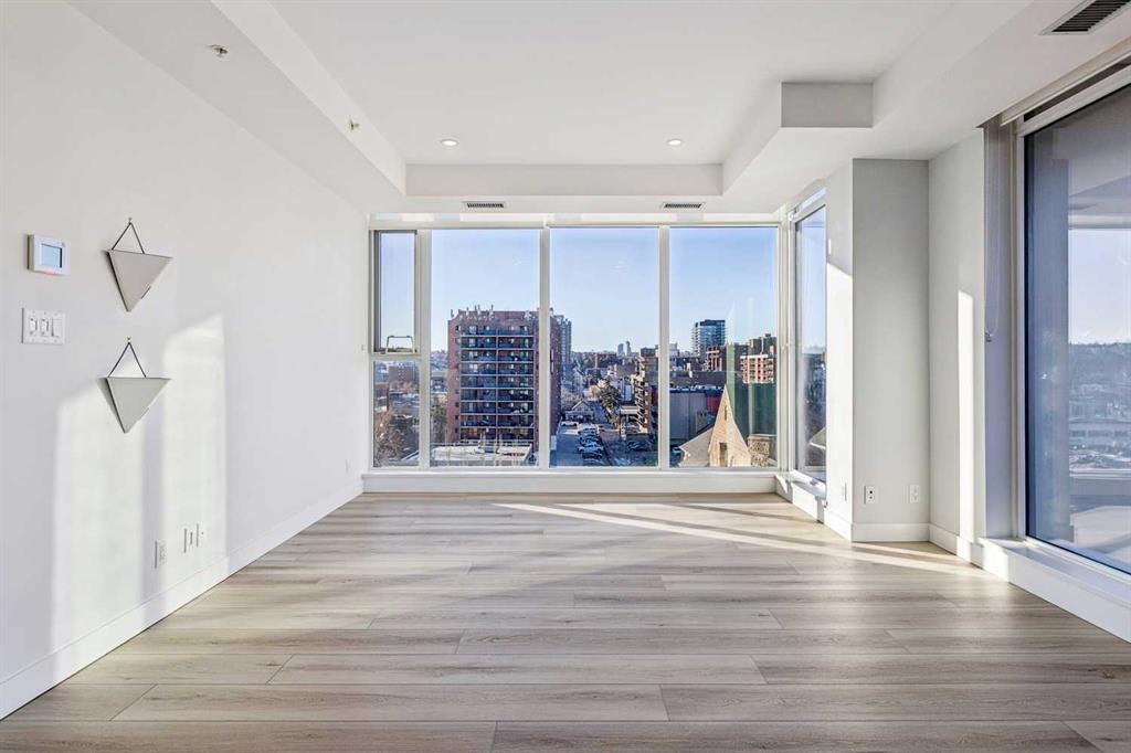 Flooded with natural light, this exceptional corner unit features two walls of floor-to-ceiling windows with beautiful views of the historic Grace Presbyterian Church. Recently updated with brand new flooring in the living areas and bedrooms, the home showcases 9’ ceilings in the living room, high-end finishes throughout, and a sleek, contemporary feel. The chef-inspired kitchen offers a sophisticated blend of dark wood and white cabinetry, quartz countertops, gas range, marble backsplash, and a large central island with breakfast bar. Thoughtful details include a pantry, coffee station, and integrated fridge and dishwasher, making the space as functional as it is stylish. The primary bedroom is a serene retreat with a crisp white ensuite featuring dual vanities, ample storage, a spacious shower, and a walk-in closet with built-in organizers. A second bedroom and full bathroom provide flexibility for guests, a home office, or shared living. In-suite laundry adds everyday convenience. Located in The Royal, a highly desirable building, residents enjoy outstanding amenities including a concierge desk, fitness centre, squash courts, sauna and steam room, a rooftop patio and garden, and a party room with fireplace and pool table. One assigned underground parking stall and a storage locker are included with this unit. Pets welcome with board approval. Set in the heart of vibrant 17th Avenue, this is a true walkable lifestyle surrounded by award-winning restaurants, cafés, boutiques, groceries, and everyday conveniences, with easy access to the downtown core. Perfect for a young professional, stylish couple, or empty nester seeking an active, urban lifestyle in one of the area’s most sought-after buildings.