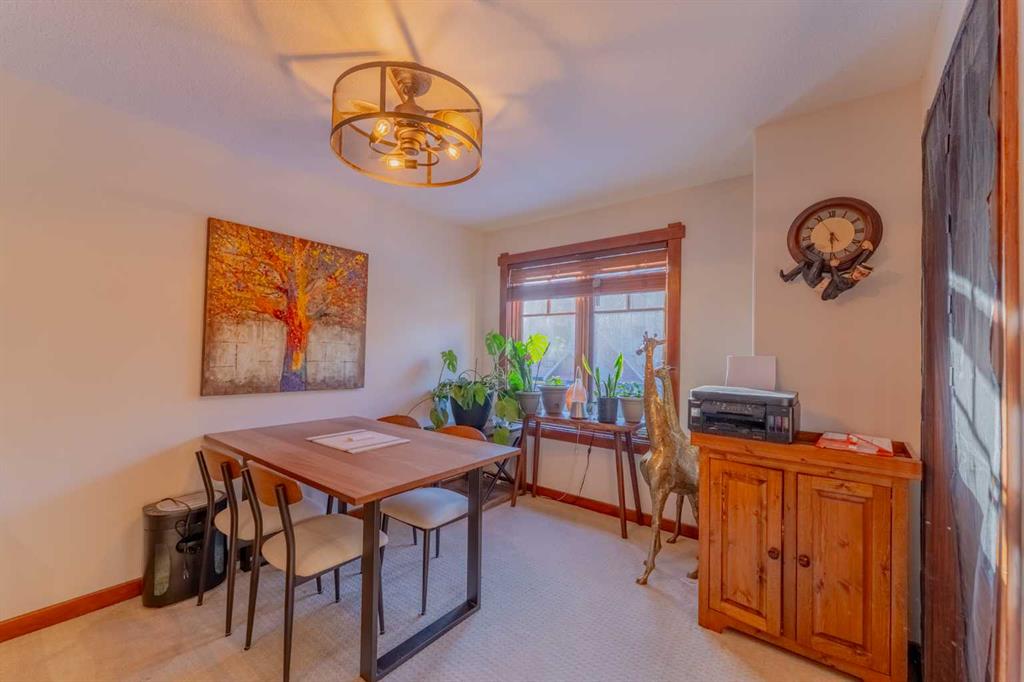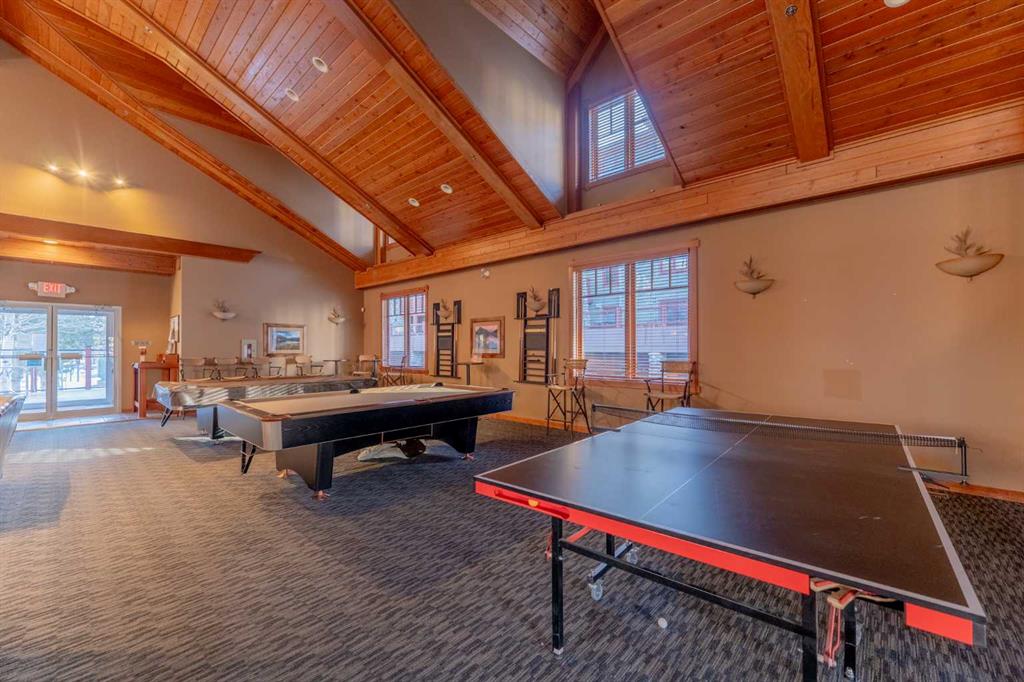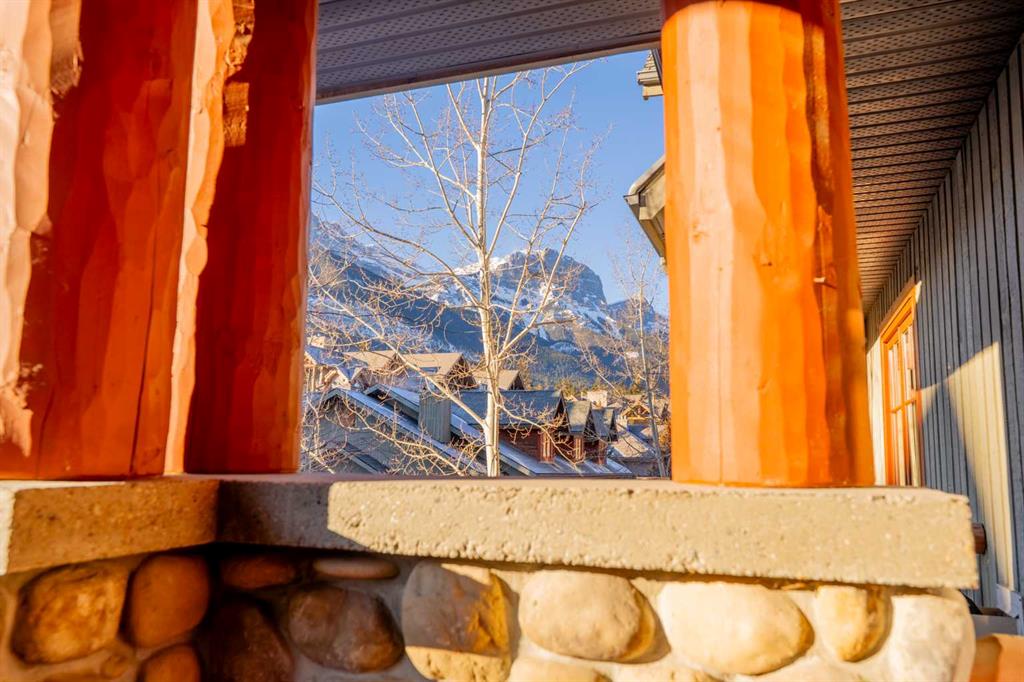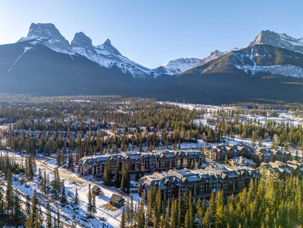 A bright, two-level top-floor home with mountain views, a functional layout, and excellent on-site amenities. This south-facing 2-bedroom plus den residence spans 1364 square feet on two levels, offering strong natural light throughout the day and mountain views from every window. The layout provides clear separation between living and sleeping areas, giving the home a townhouse-style feel that’s rarely found in condominium living. The main level is dedicated to daily living and includes a spacious kitchen with breakfast bar, a defined dining area, and a comfortable living room with a river stone gas fireplace, and access to the balcony. A dedicated laundry room and a large den on this level add practical flexibility for a home office, guest space, or additional storage. The upper level is reserved for the sleeping quarters. The primary bedroom is notably large and includes a full ensuite bathroom, creating a private retreat. A second well-sized bedroom, an additional full bathroom, generous closet space, and a secondary entrance complete this level, enhancing both functionality and convenience. Owners enjoy access to a well-appointed amenity lodge featuring a fully equipped fitness centre, steam room, and multiple hot tubs—valuable amenities that support an active lifestyle and reduce ongoing costs. A well-maintained, two-level unit in a solid condominium complex, offering space, privacy, and long-term livability in an established Canmore location.