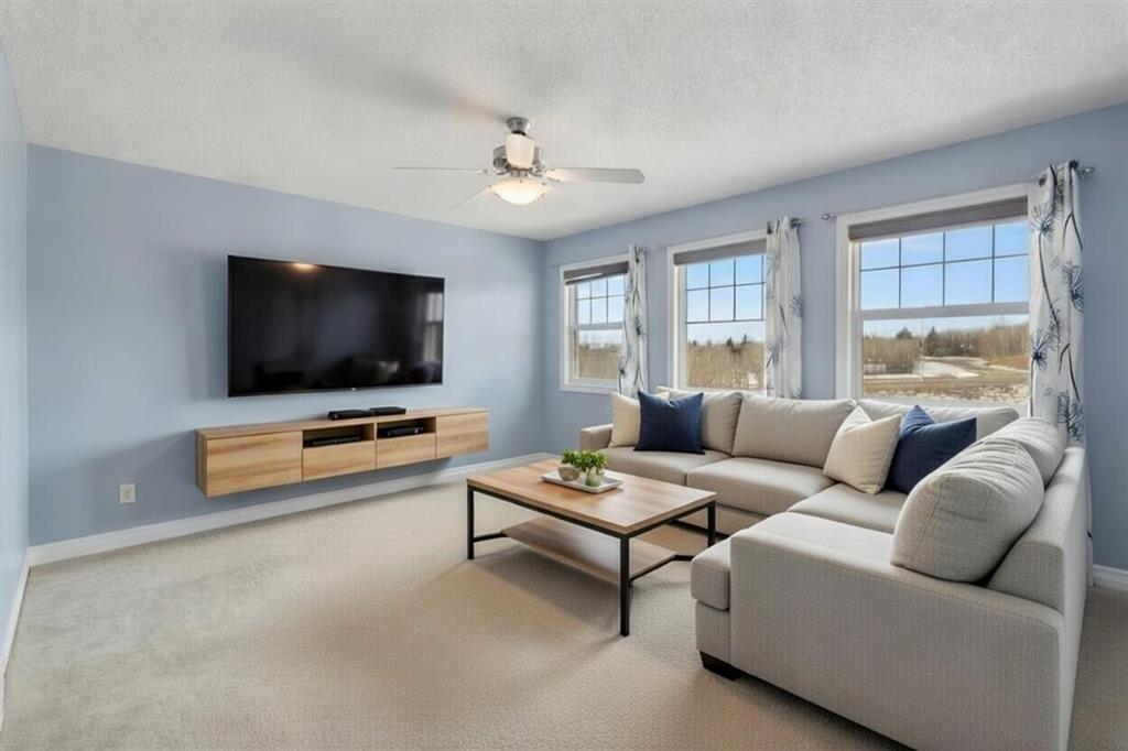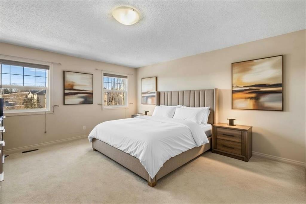 Impressive two-storey walkout home offering ~2,480 sq ft, backing west onto natural green space with stunning mountain views. The upper level features 4x spacious bedrooms, including a generous primary retreat with walk-in closet and a large ensuite complete with double sinks, a jetted soaker tub, and a separate shower, along with a bright BONUS ROOM ideal for family living. The main floor is thoughtfully laid out with a den/home office, a welcoming great room, and a large open-concept kitchen with dedicated dining area—perfect for both everyday living and entertaining. Upgrades include hardwood flooring, tile in bathrooms, granite countertops, and stainless steel appliances. The full walkout basement remains undeveloped, offering excellent future potential. This home has been exceptionally well maintained inside and out, making it truly move-in ready. Enjoy breathtaking mountain views from the kitchen, great room, bonus room, primary bedroom, and even the walkout level. Ideally located within walking distance to the neighbourhood CO-OP and Bearspaw Golf Course, with quick access to shopping and amenities by car. Residents also enjoy a fantastic community centre featuring tennis courts, a water park, and more—an outstanding setting for family living.