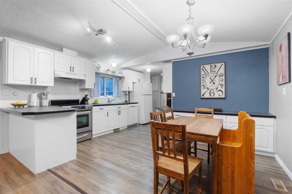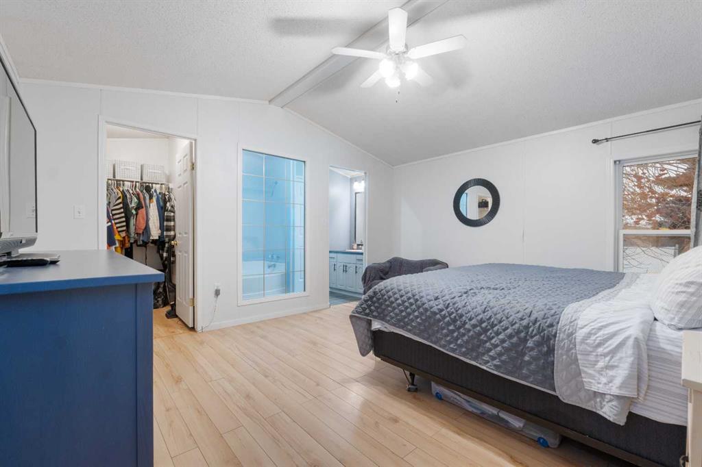 Bright and Open. This family has been updating this home. In the summer of 2025, the roof was redone professionally, and a new living room glass was installed in January. The kitchen cabinets were repainted, floors replaced, and some appliances are also recent. The living room includes a cozy electric fireplace with a mantel. Calm and relaxing colours. The primary bedroom features a walk-in closet and an en-suite bathroom with a large soaker tub adjacent to the separate water closet. Total of 3 bedrooms and 2 full baths. A fully fenced yard, located at the back of the cul-de-sac, is chain-link and is pie-shaped for a large backyard.