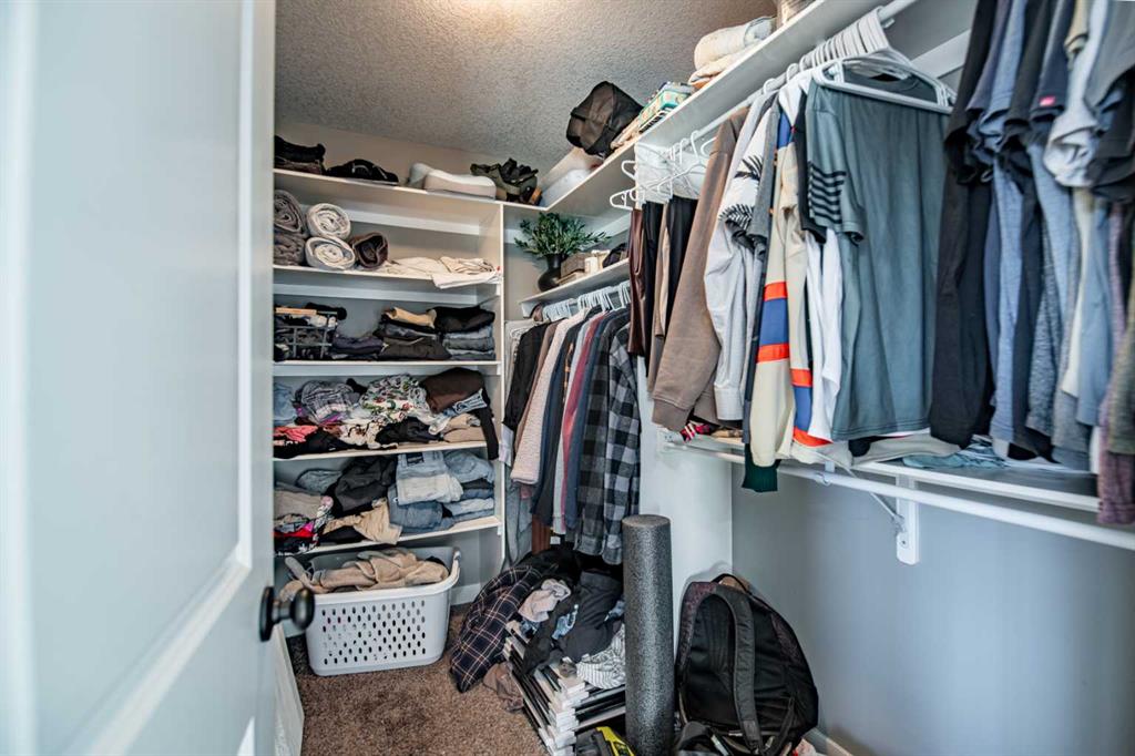 Welcome to this fully finished modified bi-level home in Blackfalds, ideally located on a pie-shaped lot and built for turnkey living. The maintenance-free front yard, stained concrete driveway, and permanent outdoor lighting offer standout curb appeal. Inside, enjoy a bright open-concept main floor with vaulted ceilings, large windows, a gas fireplace with black rock finish, and a stylish kitchen featuring quartz countertops, stainless steel appliances, a pantry, and island seating. A rear deck (with gas hook up) overlooking the entire backyard, Two bedrooms and a full bath complete the main level, while the private upper-level primary suite includes a walk-in closet and ensuite. The walkout basement is warm and inviting with 9’ ceilings, in-floor heat, large windows, a wet bar, an additional bedroom, and full bathroom—perfect for entertaining and summer living. Upgrades include a 3-stage whole-home water filtration system, water softener, two hot water tanks, central A/C, central vacuum, and solid core doors. Step outside to the massive lower 29’ x 14’ deck, fully fenced yard, and garden shed. The oversized 22’ x 25’ heated garage features hot and cold water with a sink. A rare walkout bi-level with this level of finish—move-in ready and built for comfort.
