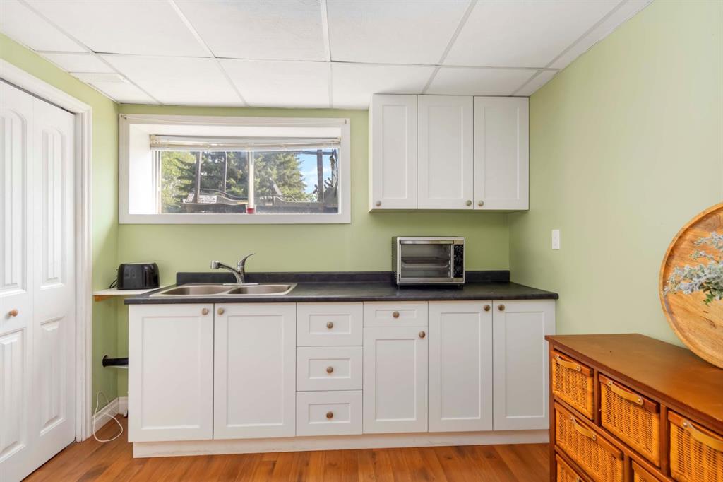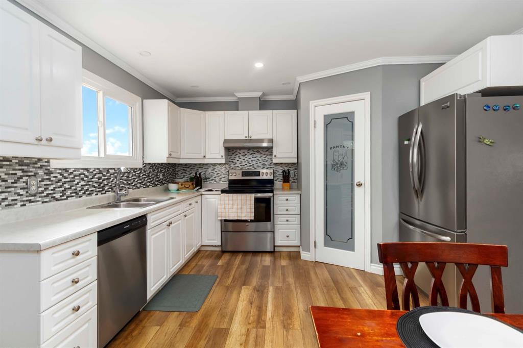 4 BEDROOM | 2 BATH | CORNER LOT | HEATED GARAGE | RV PARKING | BACKING GREENSPACE & THICKWOOD TRAILS Nestled on a spacious corner lot and surrounded by lush greenspace and the beloved Thickwood trails, this 4-bedroom, 2-bathroom home offers the perfect balance of convenience and outdoor living for the whole family! The fully fenced backyard is huge, with double gate access—ideal for storing all your toys and gear. The long driveway provides ample parking for 6–8 vehicles, including RV parking, and the detached heated garage is the ultimate space for projects, hobbies, or secure storage. There’s even an additional shed room for extra storage needs. Inside, the home has been freshly painted, with updated flooring on the upper level and a refreshed main bathroom. The shingles on the shed were replaced in July 2025. The basement is partially suited with a kitchenette, a 3-piece bath, laundry area, and a spacious rec room that includes a closet—perfect for converting into an additional bedroom. You’ll also find a large fourth bedroom and a flex/storage room for added versatility. A solid family home in a prime location—this one is ready for its next chapter