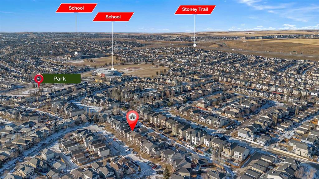 Perfect for first-time buyers or investors, this exceptionally well-maintained 2-storey home is located in one of the most desirable central pockets of Coventry Hills. The upper level features three bedrooms and a full bathroom with a newer bathtub/shower. The spacious primary bedroom easily accommodates a king-size bed and includes a large walk-in closet. The main floor welcomes you with a bright front living room showcasing beautiful hardwood floors, a convenient 2-piece bathroom, and a thoughtfully designed kitchen you’ll truly love. Offering an abundance of counter space and cabinetry, an island, pantry, and a charming nook—perfect for keys, a phone station, or your coffee setup—this kitchen is as functional as it is inviting. The basement is ready for your finishing touches and makes the process easy with roughed-in plumbing, two large windows, and one wall already completed—ideal for adding value exactly the way you want. This home is immaculately clean and pride of ownership is evident throughout. Recent updates include fresh interior paint (2023), a newly painted large back deck (July 2025), newer hot water tank, PEX plumbing, durable faux-wood blinds throughout, and new Class 4 shingles, siding, and eavestroughs (August 2025). The paved back alley adds extra convenience. Situated in one of the best locations in Coventry Hills, this home is centrally located and within walking distance to six schools, making it an excellent long-term investment and a fantastic place to call home. Must be viewed to be fully appreciated. Furnace was just cleaned & serviced Jan. 2026. *** OPEN HOUSE- SAT. Jan. 24 (1:30-2:30pm)***