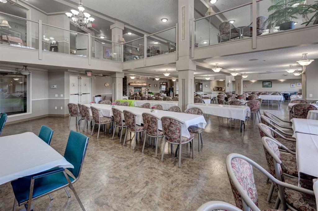 Premium location for this bright, spacious 3rd-floor end unit with no neighbours above! One of the largest units in this well-managed Adult 60+ community, this 2-bedroom, 2-bathroom home offers an excellent open-concept layout with extra South and West facing windows flooding the home with an abundance of natural light. The U-shaped kitchen is generous in size with granite countertops, a large peninsula, white cabinets and pull-outs, and newer stainless-steel appliances. The living and dining areas feature a large open space for added comfort and ambiance, along with electronic blinds and laminate flooring running throughout most of the unit. The primary bedroom includes a private 4-piece ensuite with walk thru closet, while a 3-piece main bath is perfect for guests off the second bedroom. Additional highlights include a large covered balcony, tiled entry, in-suite storage with newer stand-up washer and dryer, jacuzzi tub, towel warmer, quartz bathroom countertops, and a titled heated underground parking stall. Enjoy an exceptionally active and welcoming community or simply relax in the comfort of your own home. Building amenities span multiple floors and include a dining room, Café Bistro, lounge, craft room, exercise room, hair salon, library, guest suite, rooftop, and a carwash. Did I mention a chef Mon-Fri for dinner? Condo fees include heat, water, and electricity. A mandatory $75/month dining fee applies for weekday meals. Public transit is conveniently located , with shopping, restaurants, and health services just steps away. The LRT station is adjacent to the complex, making commuting effortless. This impressive unit truly offers comfort, convenience, and community…a must-see!