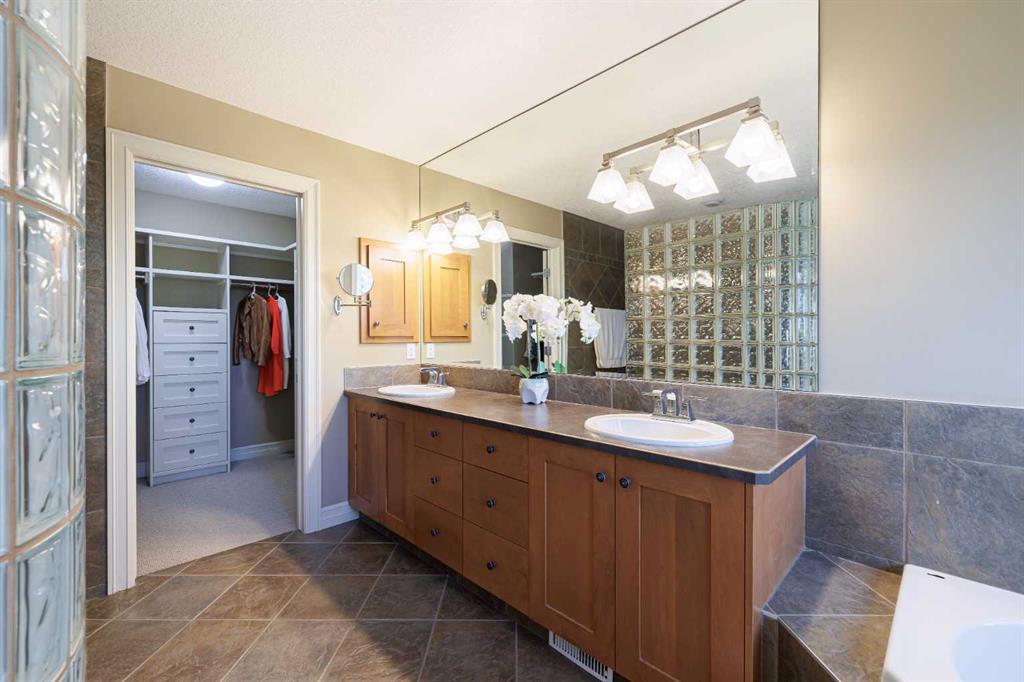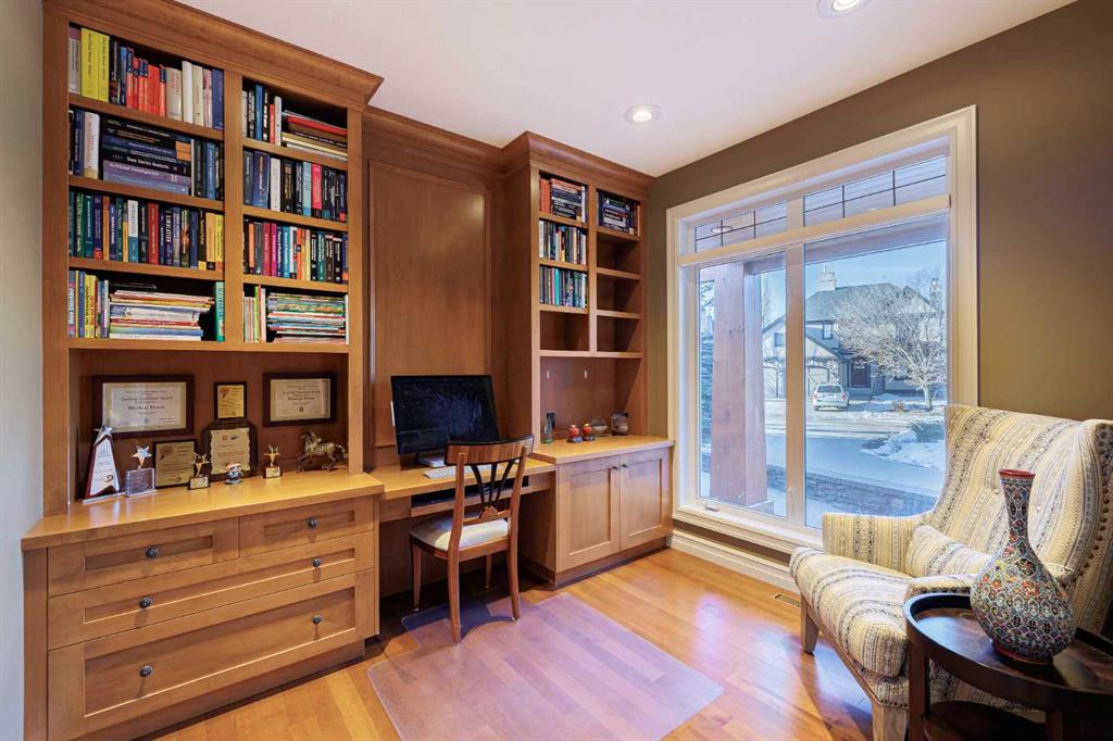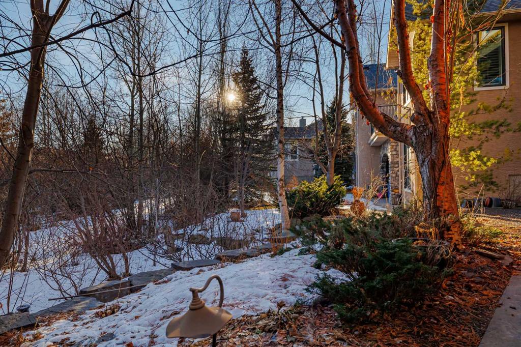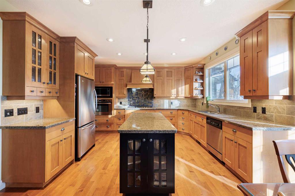 Nestled on a quiet, tree-lined street in the heart of prestigious Tanglewood, this stunning quality-built estate home offers timeless elegance, thoughtful design, and exceptional functionality for modern family living. From the moment you arrive, the home impresses with its welcoming presence, oversized double attached garage with ample storage, and comfort-enhancing features such as central air conditioning. Step inside to a bright and inviting main floor highlighted by a formal dining room just off the front entrance, complete with a beautiful built-in hutch—perfect for hosting elegant dinners or holiday gatherings. A dedicated main floor office with custom built-ins provides an ideal work-from-home space, while a convenient 2-piece powder room and main level laundry add everyday practicality. The heart of the home is the open-concept kitchen, living room, and eating nook. The kitchen is a chef’s dream, featuring stainless steel appliances, a gas range stove, granite countertops, a large central island, and a walk-in pantry. The adjoining eating nook is open and sun-filled, offering direct access to a sprawling back deck—perfect for morning coffee or summer entertaining. The living room is equally impressive with its spacious layout, abundant natural light, and a striking fireplace with stone surround and wooden mantle that anchors the space beautifully. Upstairs, a generous bonus room with custom built-ins offers incredible flexibility and can easily serve as a playroom, secondary office, or even an additional bedroom. The primary retreat is open, bright, and serene, complete with a walk-in closet featuring custom built-ins and a luxurious 5-piece ensuite. This spa-like bathroom includes a private water closet, jetted soaking tub, dual vanities, and a stand-alone shower. Two additional well-sized bedrooms share a 4-piece bathroom, creating a comfortable and functional upper level for family living. The fully developed walkout basement elevates this home even further. With high ceilings, in-floor heating throughout, and gorgeous custom built-ins, the expansive family room is perfect for relaxing or entertaining. A large games area, generous storage, and a guest bedroom with its own 4-piece ensuite provide exceptional versatility. Direct access to the lower-level patio leads to a private, treed backyard that is both sunny and serene—an ideal outdoor retreat. Close to schools, walking paths, the train station and all amenities this home is in the perfect location to meet all your needs! Surrounded by mature trees and offering outstanding privacy, this exceptional Tanglewood estate seamlessly blends luxury, comfort, and thoughtful design in one truly remarkable home.